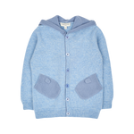 A stylish boy cardigan hoodie made from 100% cashmere featuring cute mitten style pockets. In warmer months this is a good substitution for a jacket and is also great worn under jackets on very cold days.