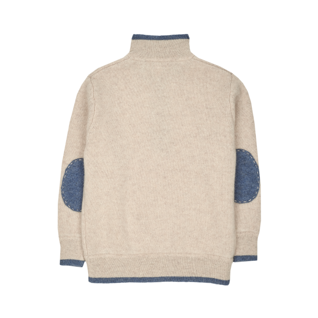 Crafted from luxuriously soft 100% Mongolian cashmere, this versatile zip-neck jumper is a true favourite. Naturally breathable and gentle on the skin, it’s designed with contrasting elbow patches and subtle colour tipping trims at the collar, cuffs, zip, and waist. A neatly stitched zip pull adds the perfect finishing touch.