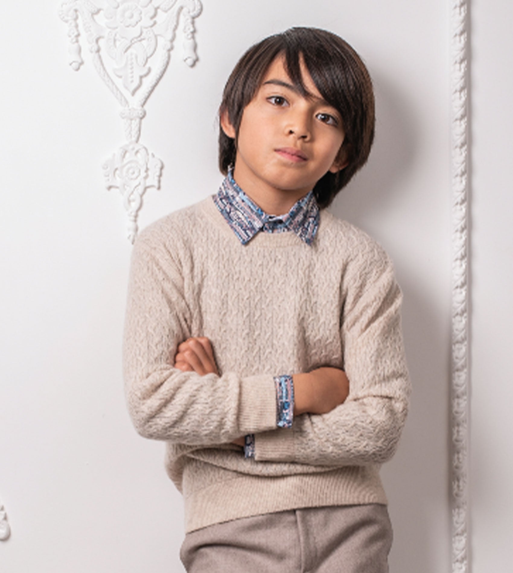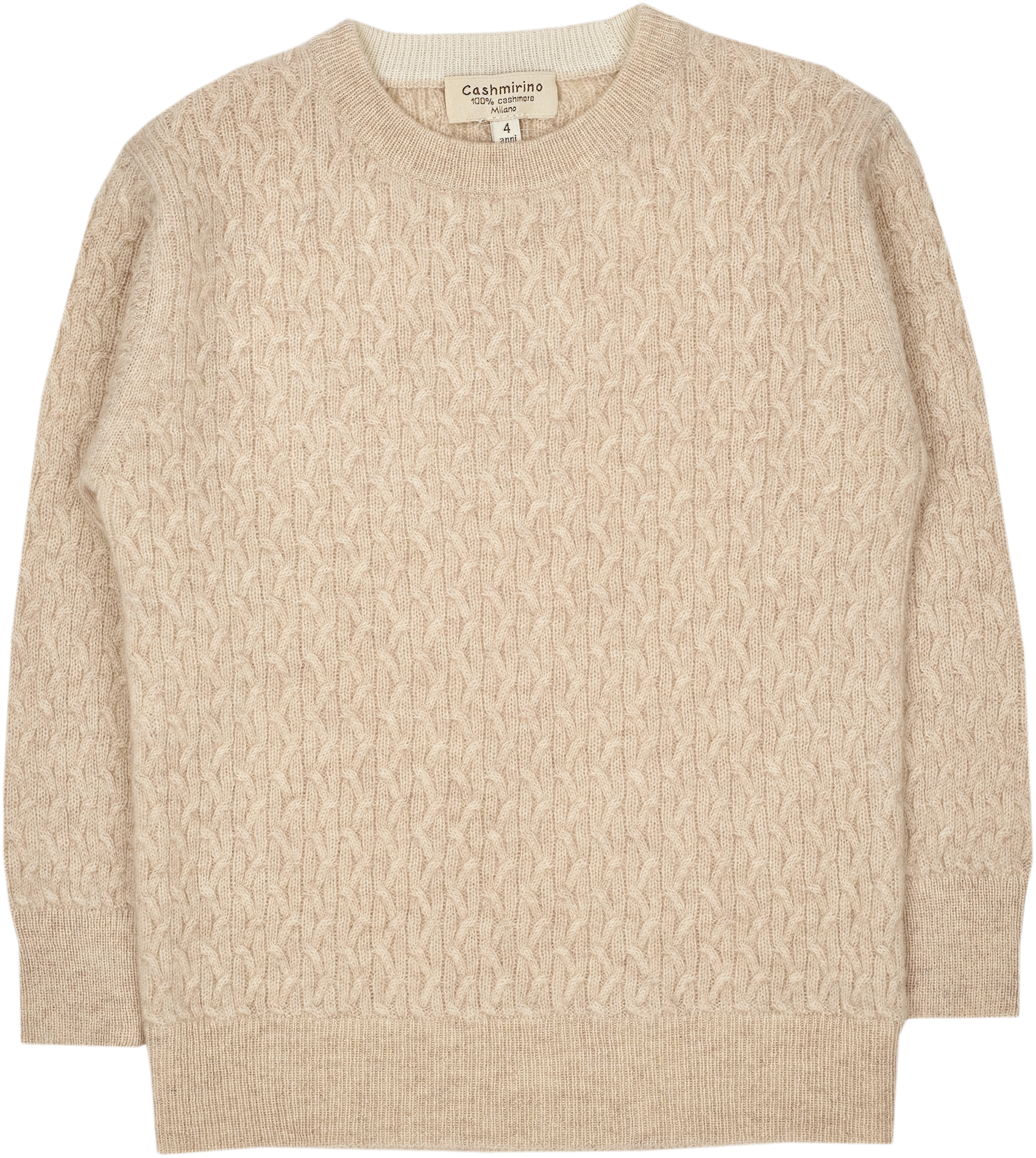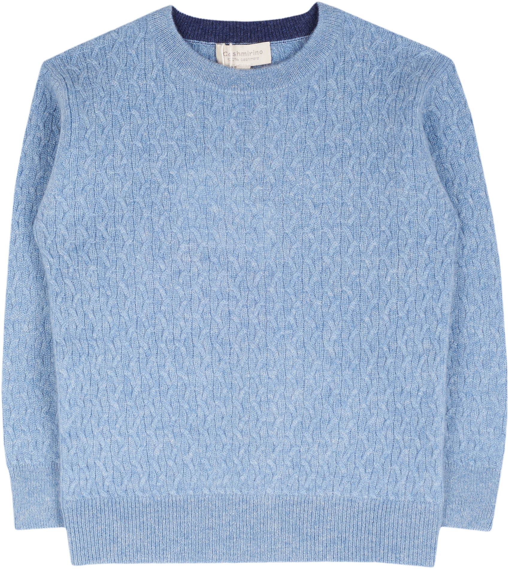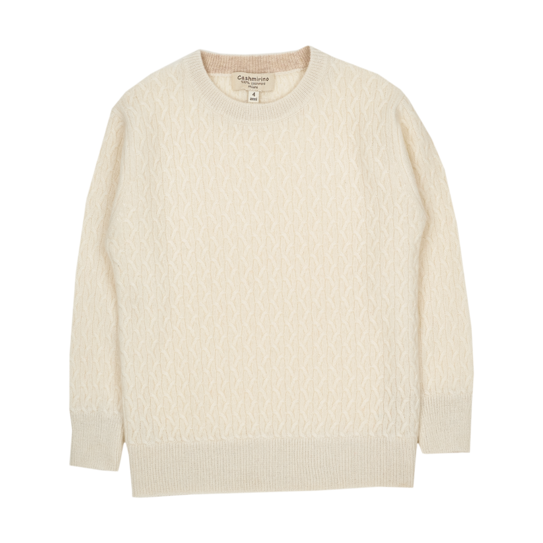 A classic boy crew neck cable knit boy jumper, made from 100% cashmere featuring long sleeves, a ribbed hem with contrasting inside detail. This smart jumper is a winter wardrobe essential.