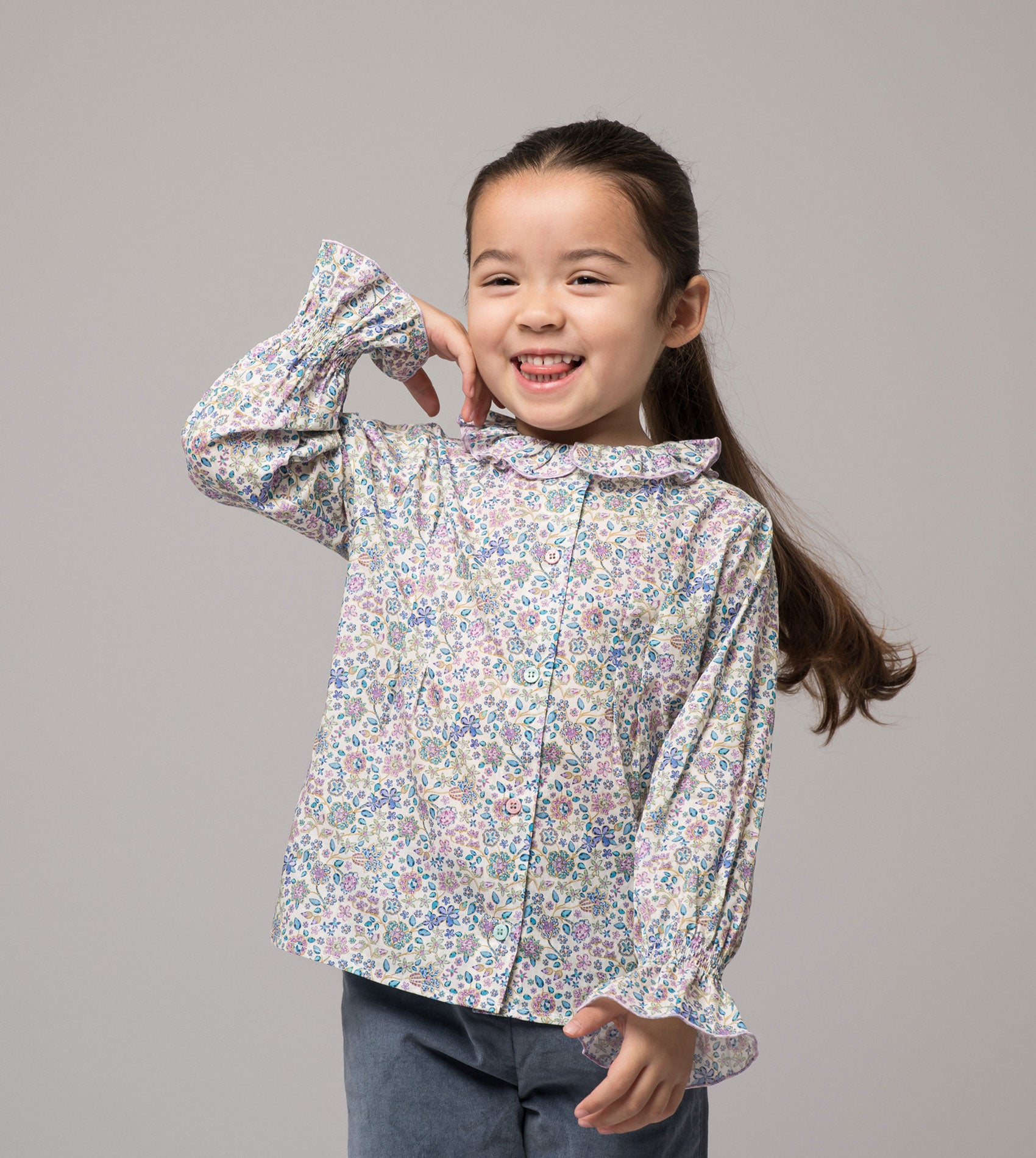 Girl - Callie 100% Cotton Blouse with Pleats in Floral Prints