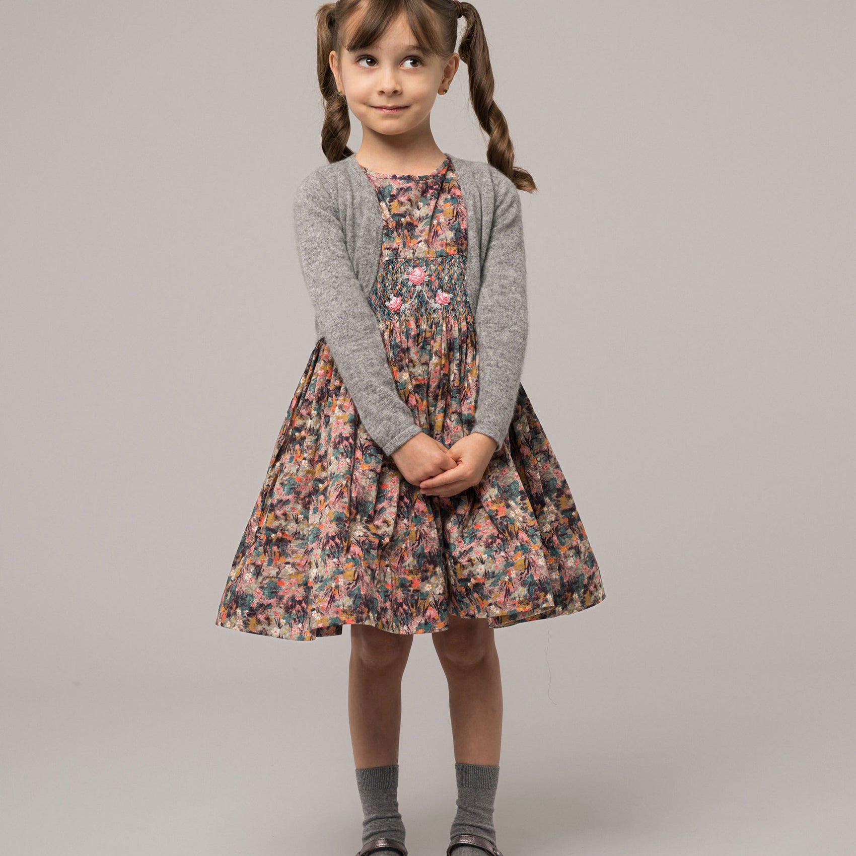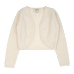 This elegant open V-neck shrug is beautifully crafted from 100% lightweight cashmere, offering the ultimate in softness and comfort. Designed with a cropped cut to complement our signature dresses, it adds just the right amount of warmth without hiding the details beneath.