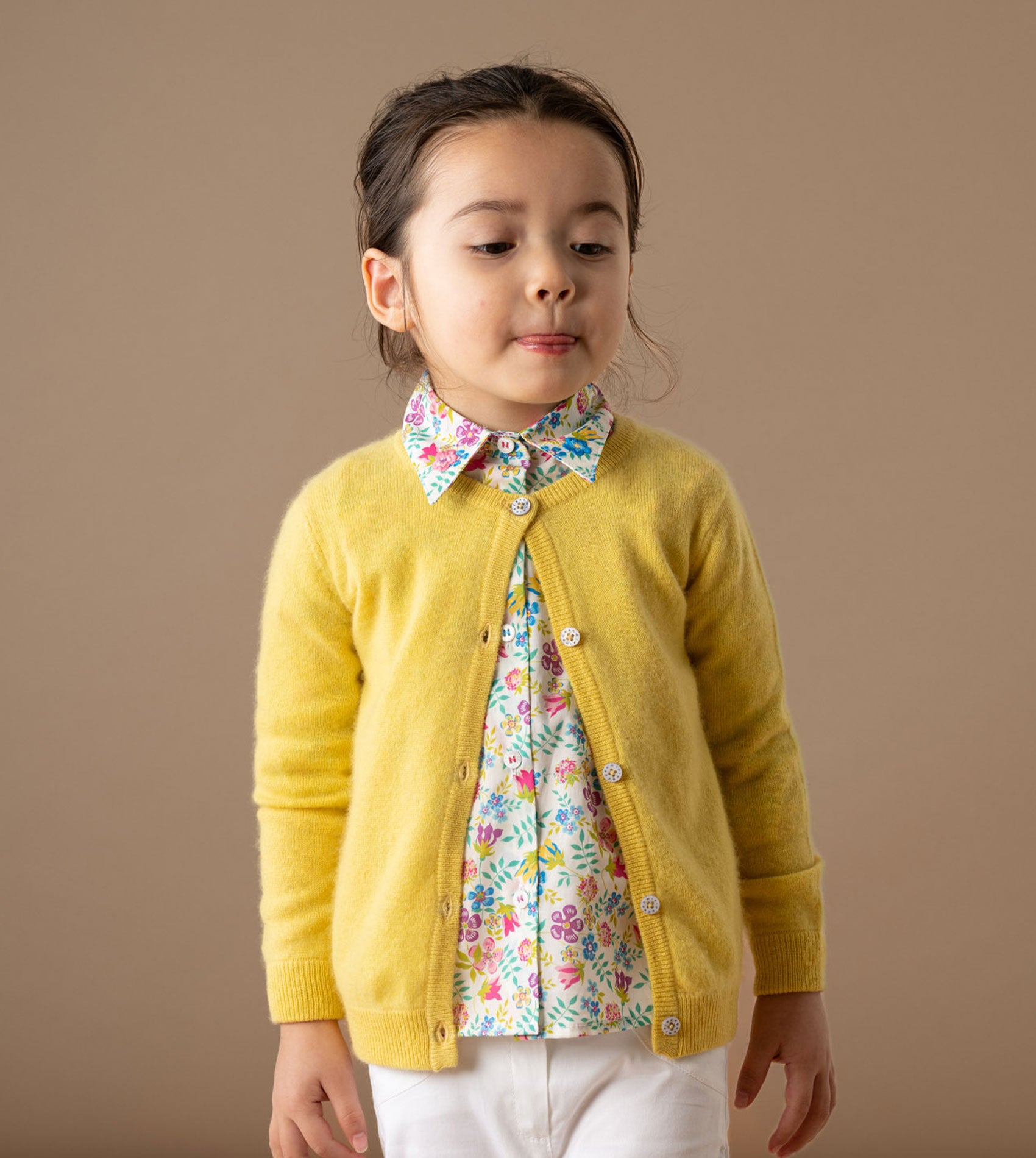 Finished with Cashmirino’s signature buttons, the simple front fastening adds both charm and practicality—making it an easy-to-wear staple for any girl’s wardrobe.
