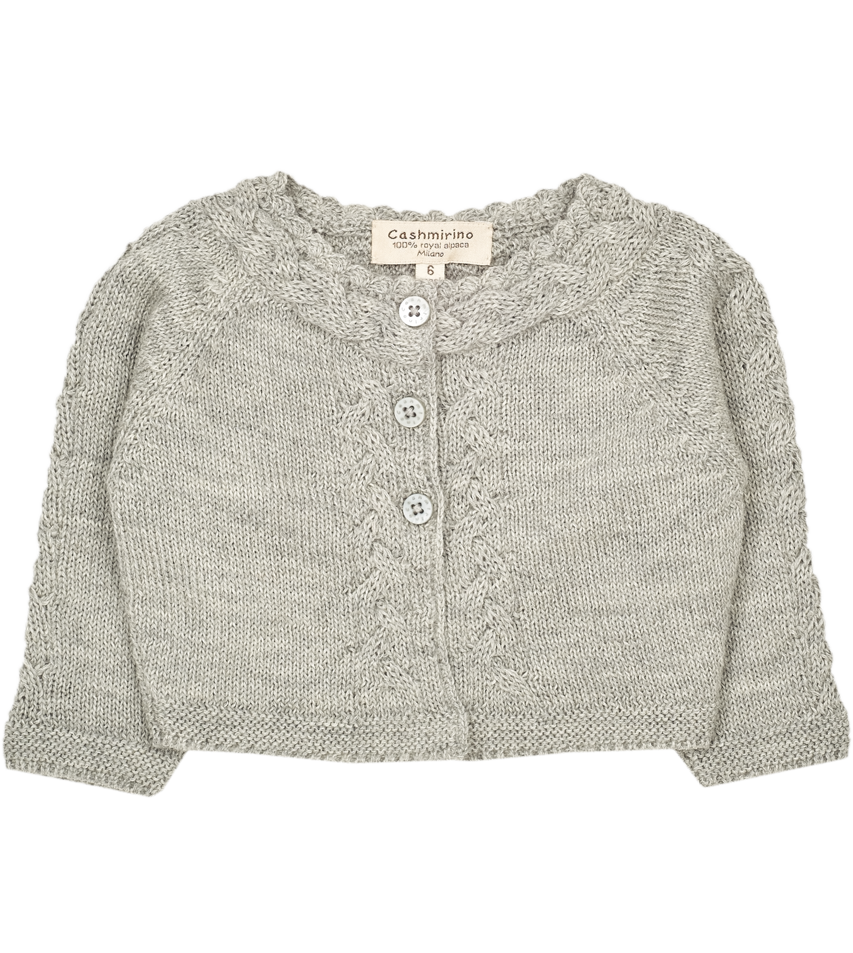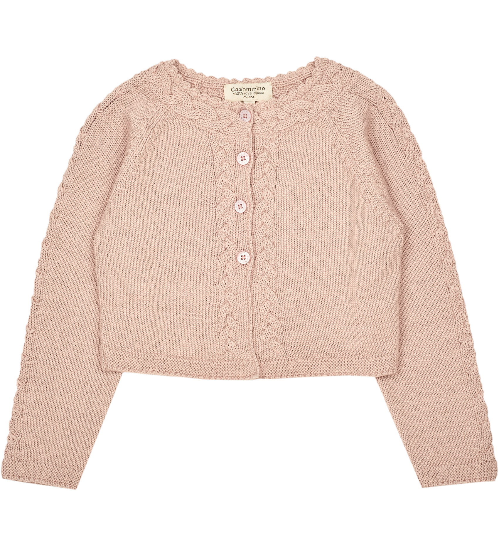 Crafted from luxuriously soft 100% Peruvian Royal Alpaca. Beautifully simple in it's detailing, this smart little girl cardigan is topped off with Cashmirino signature buttons.