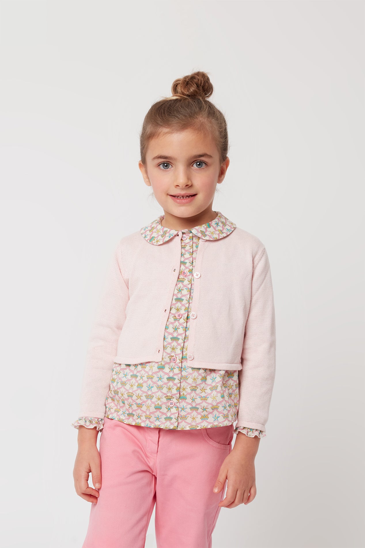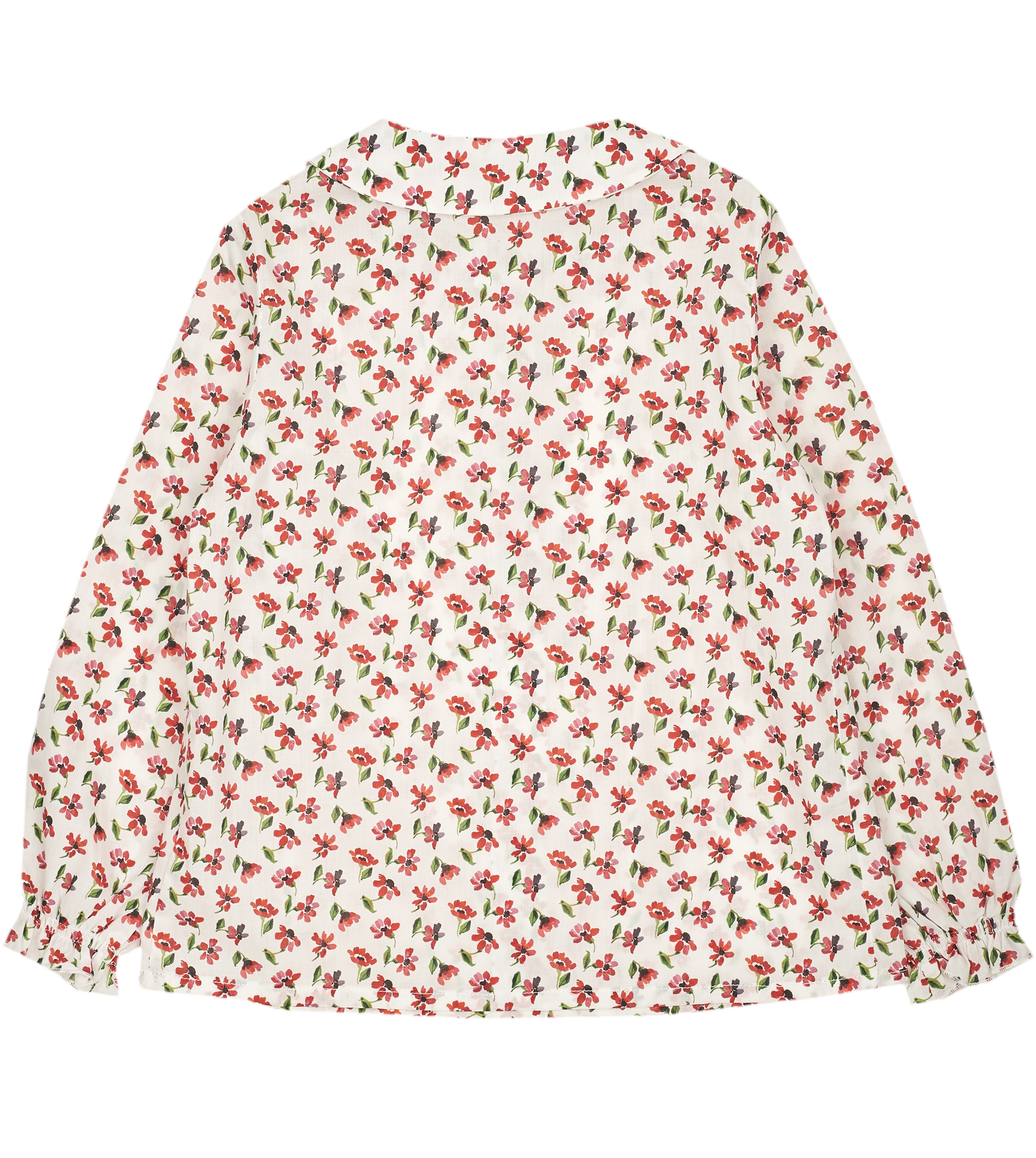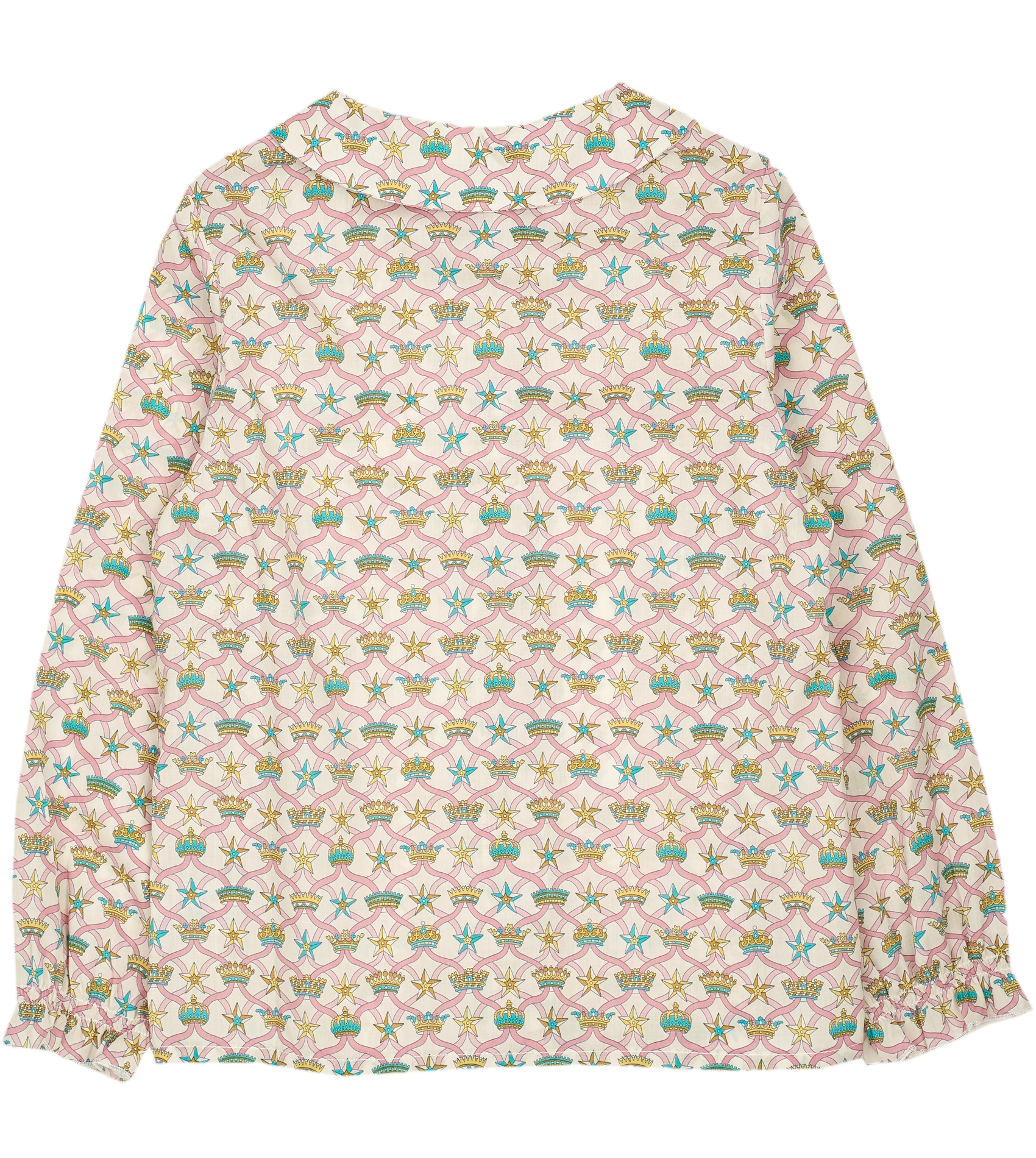 An elegant girl blouse made of 100% cotton, featuring a Peter Pan collar, made with Liberty fabrics, Cashmirino buttons and frilled sleeves.