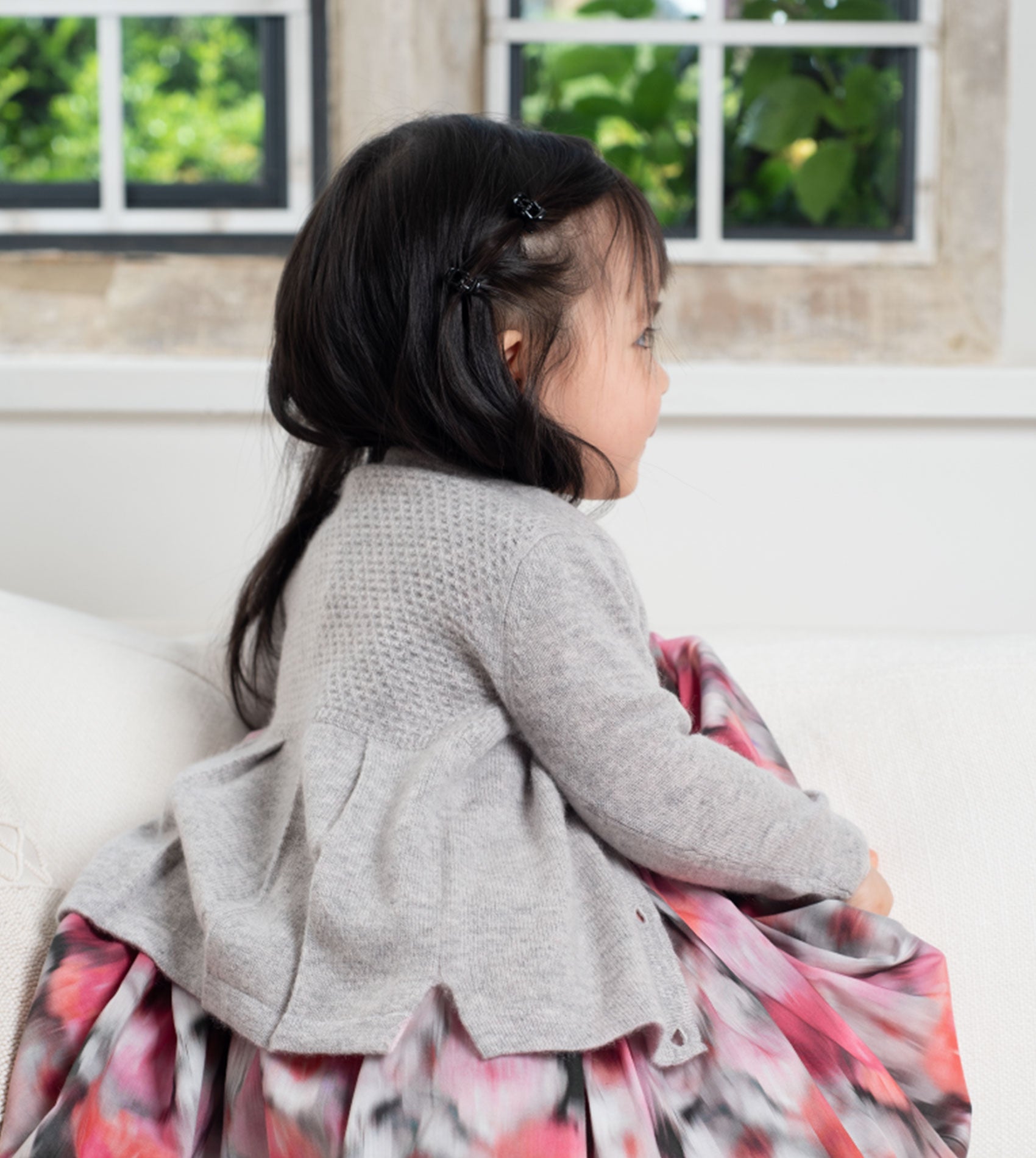 The Girls’ Cashmere Cardigan is a beautifully refined piece, designed to keep your little one cosy in every season. Knitted from 100% lightweight cashmere, it offers the perfect balance of warmth and breathability, making it ideal for layering in winter or wearing on its own in autumn and spring.