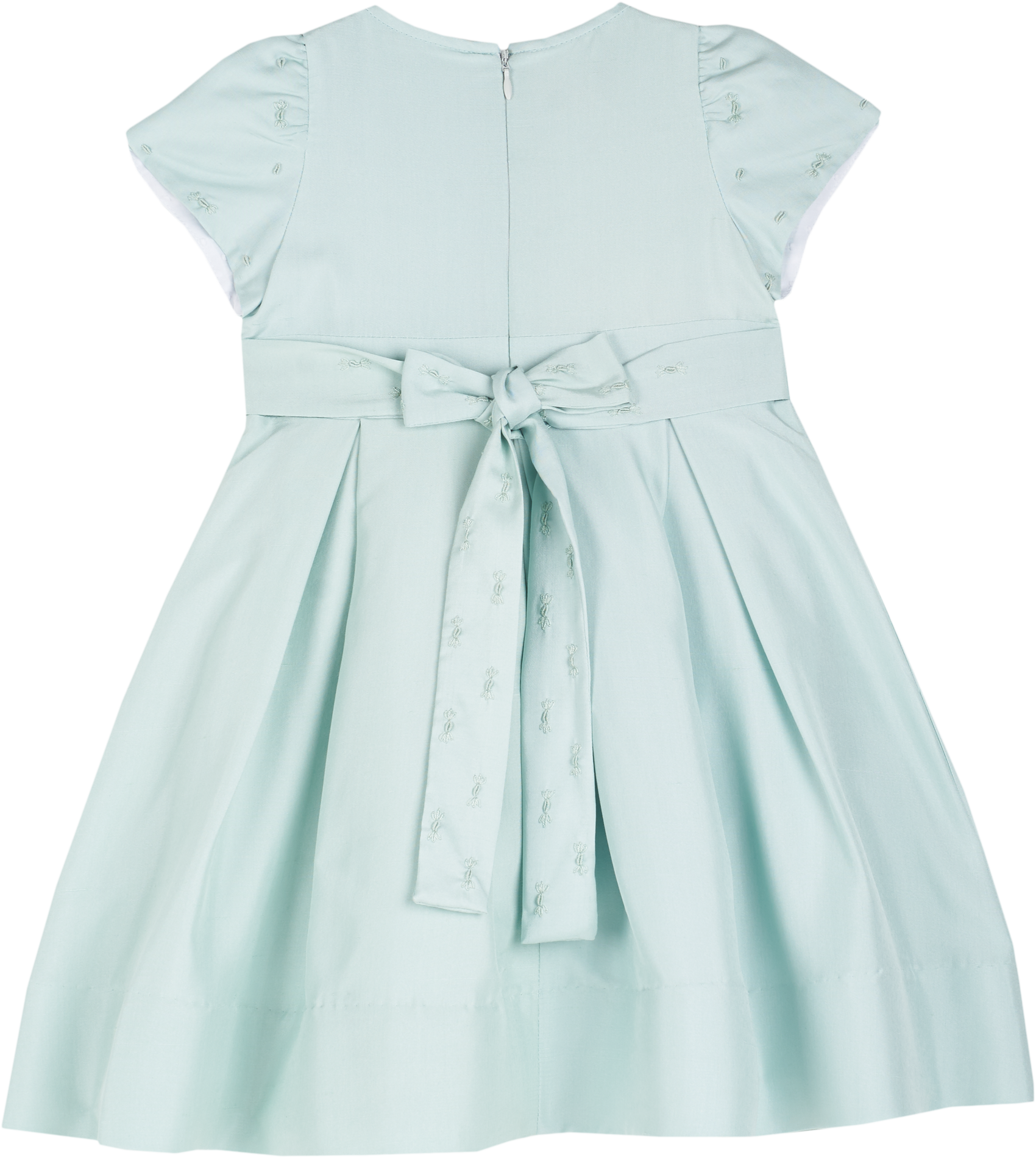 The Jolie Dress is a timeless expression of elegance, crafted in pure Silk Shantung and finished with the finest artisanal details. The hand-smocked, embroidered bodice and A-line pleated skirt create a graceful silhouette, while delicate petal sleeves and an embroidered back tie add refined charm.