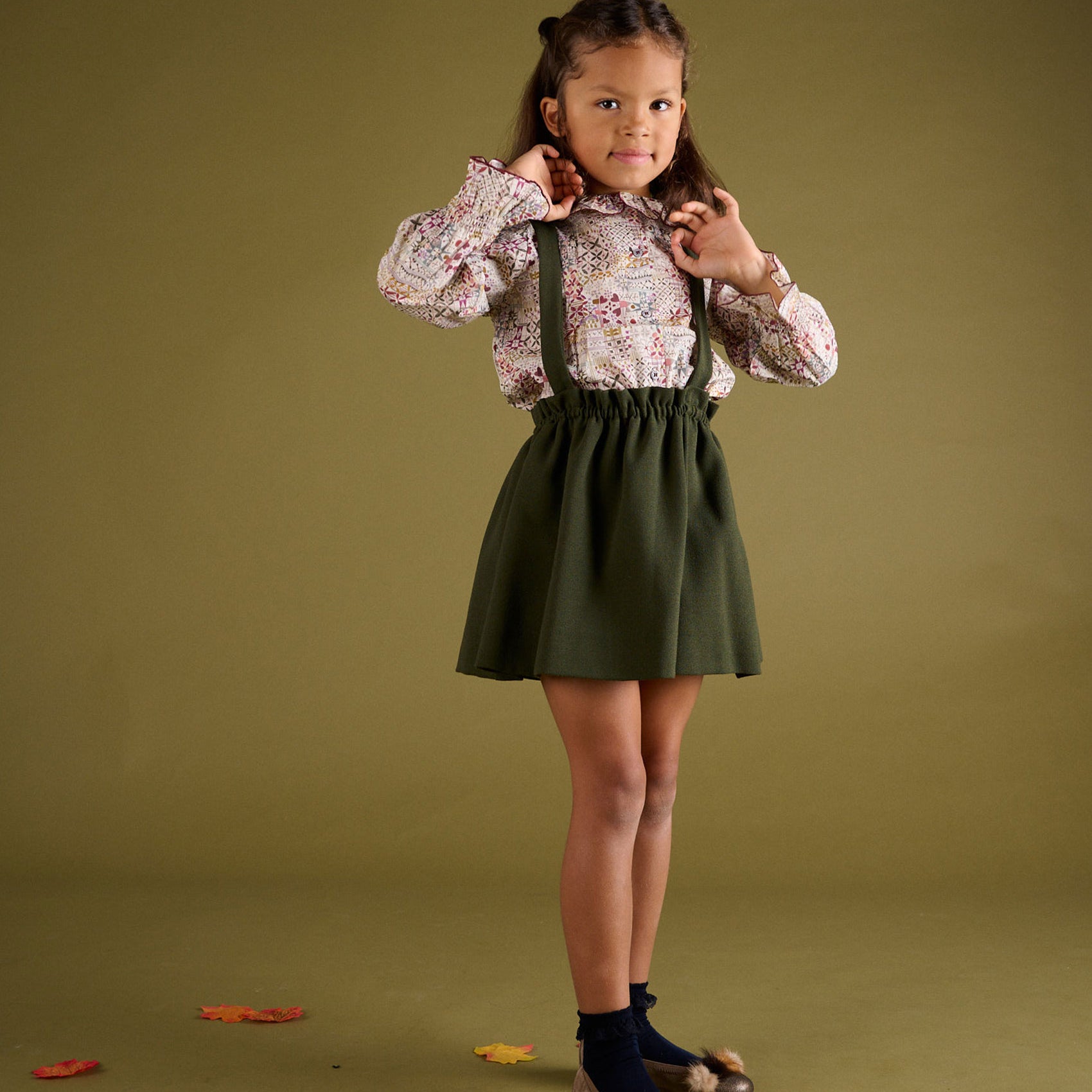 Girl - Sabrina 100% Wool Skirt with Braces