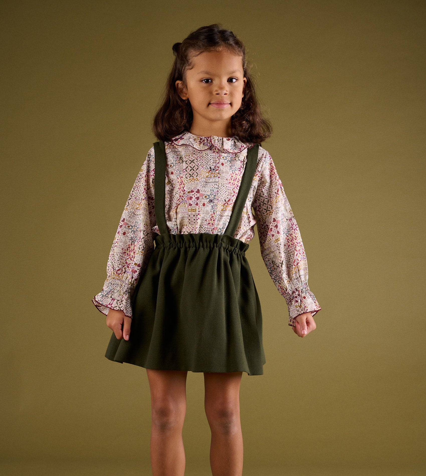 This charming girls’ skirt is beautifully crafted from 100% pure wool, offering warmth, comfort, and elegance.