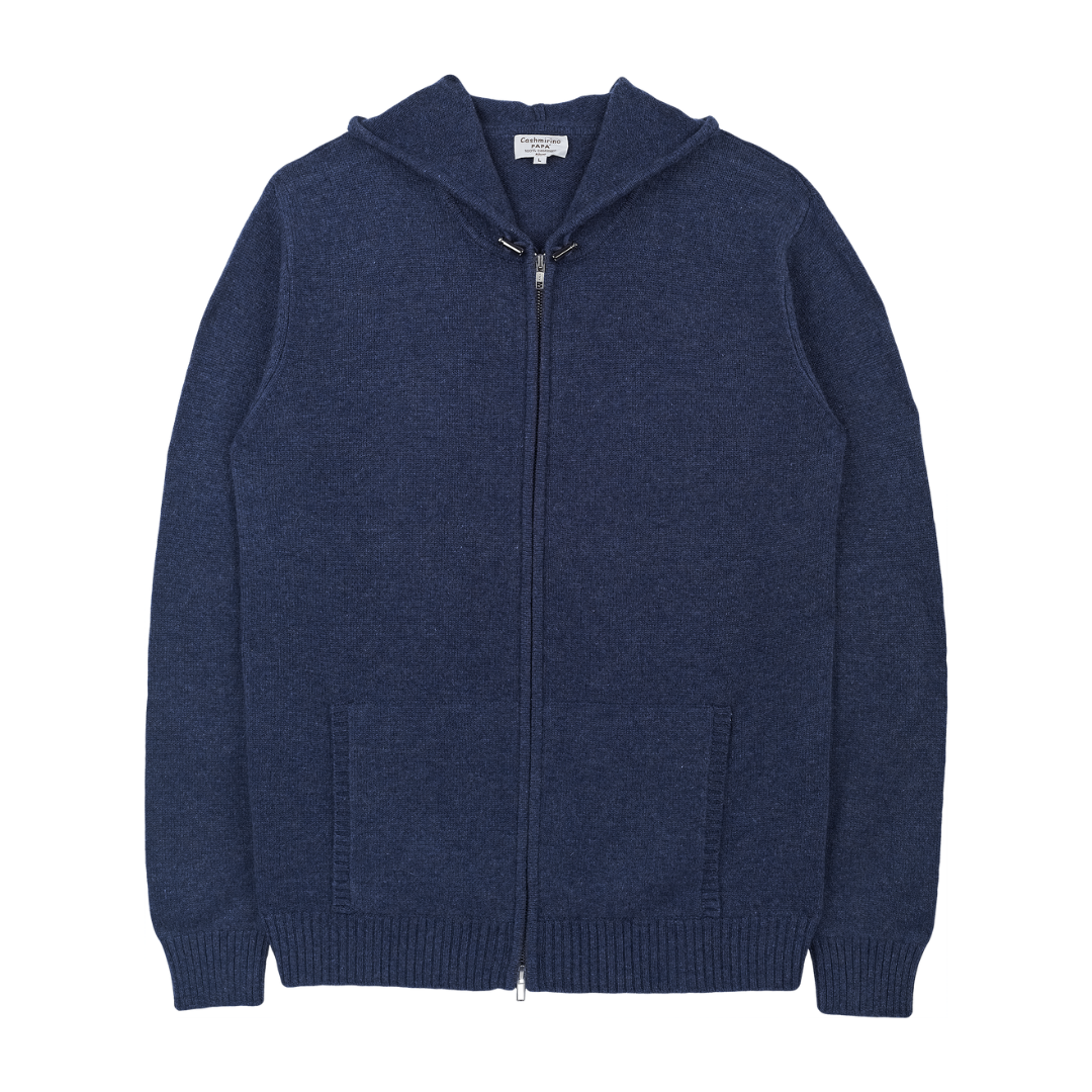 A versatile wardrobe essential, this 100% cashmere men’s cardigan hoodie combines everyday comfort with refined style. Designed with a zip fastening, two front pockets, and a cosy hood, it offers a relaxed, sporty look with a preppy edge. Finishing touches such as elbow patches, a ribbed hem, and long straight sleeves bring both practicality and understated elegance.
