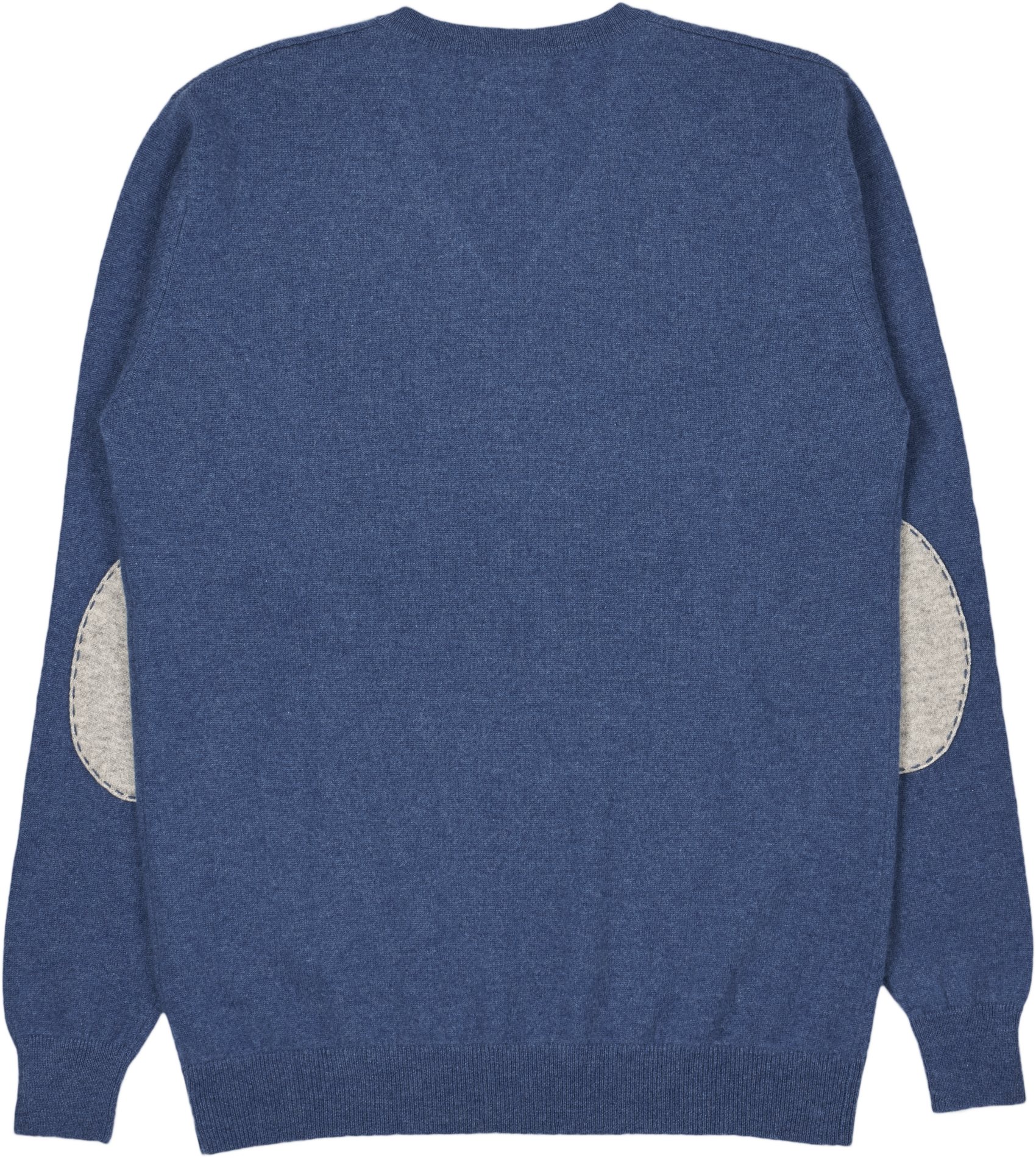 A classic v-neck jumper made from 100% cashmere featuring long sleeves, a ribbed hem with contrasting inside detail and stylish elbow patches.