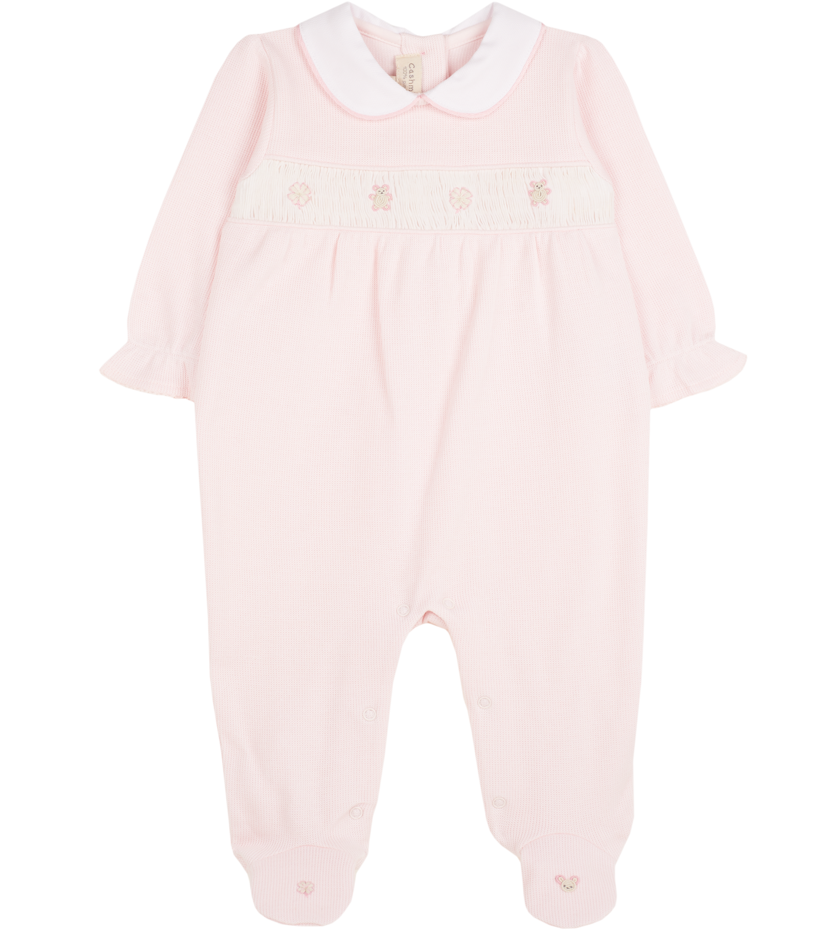 A charming and elegant keepsake for your little one, the Marli Baby Grow is crafted from the softest Pima cotton for gentle all-day comfort. It features a classic Peter Pan collar and beautifully smocked embroidery on the front and feet. Designed with practical popper fastenings on the legs and back, it’s easy to dress while keeping your baby cosy and comfortable.
