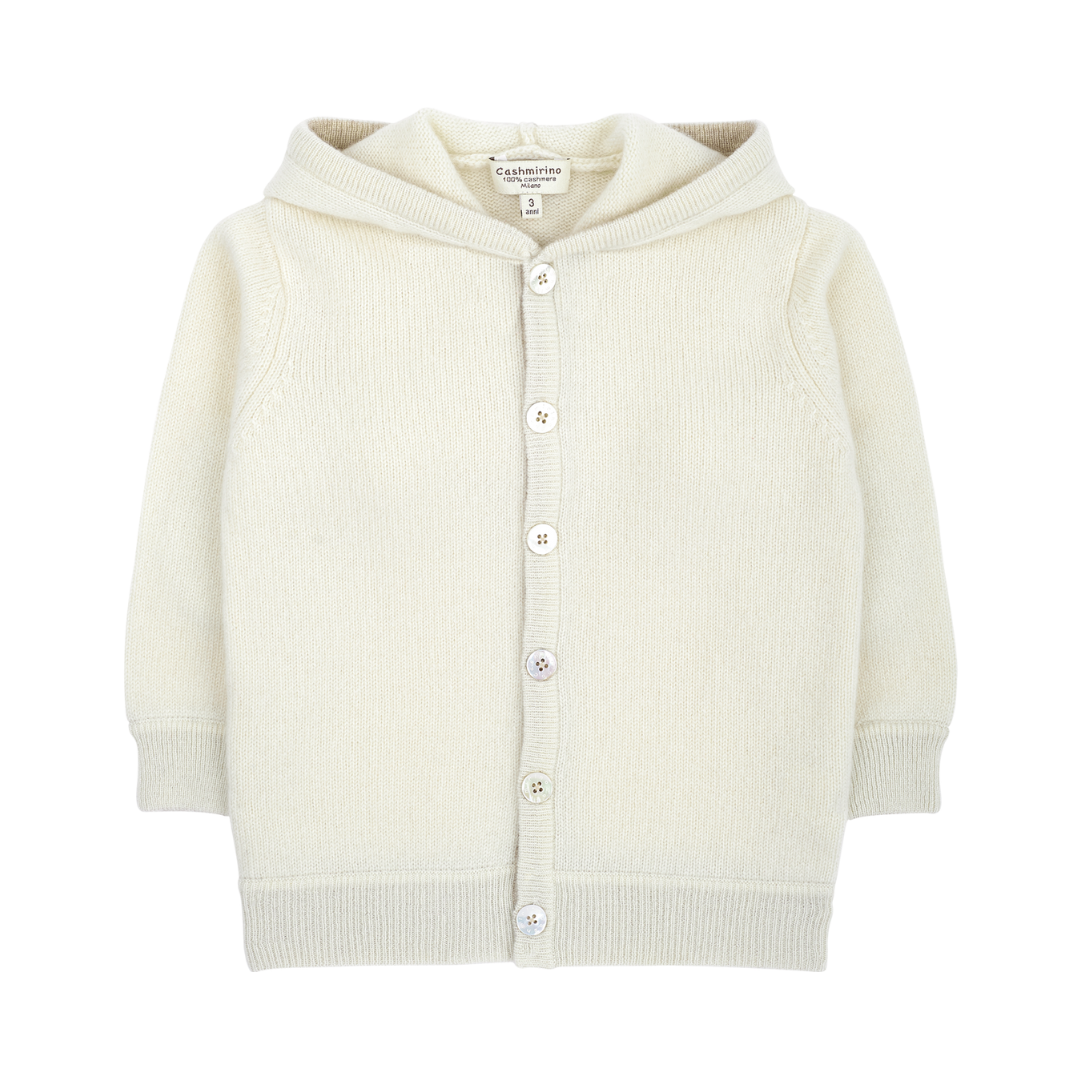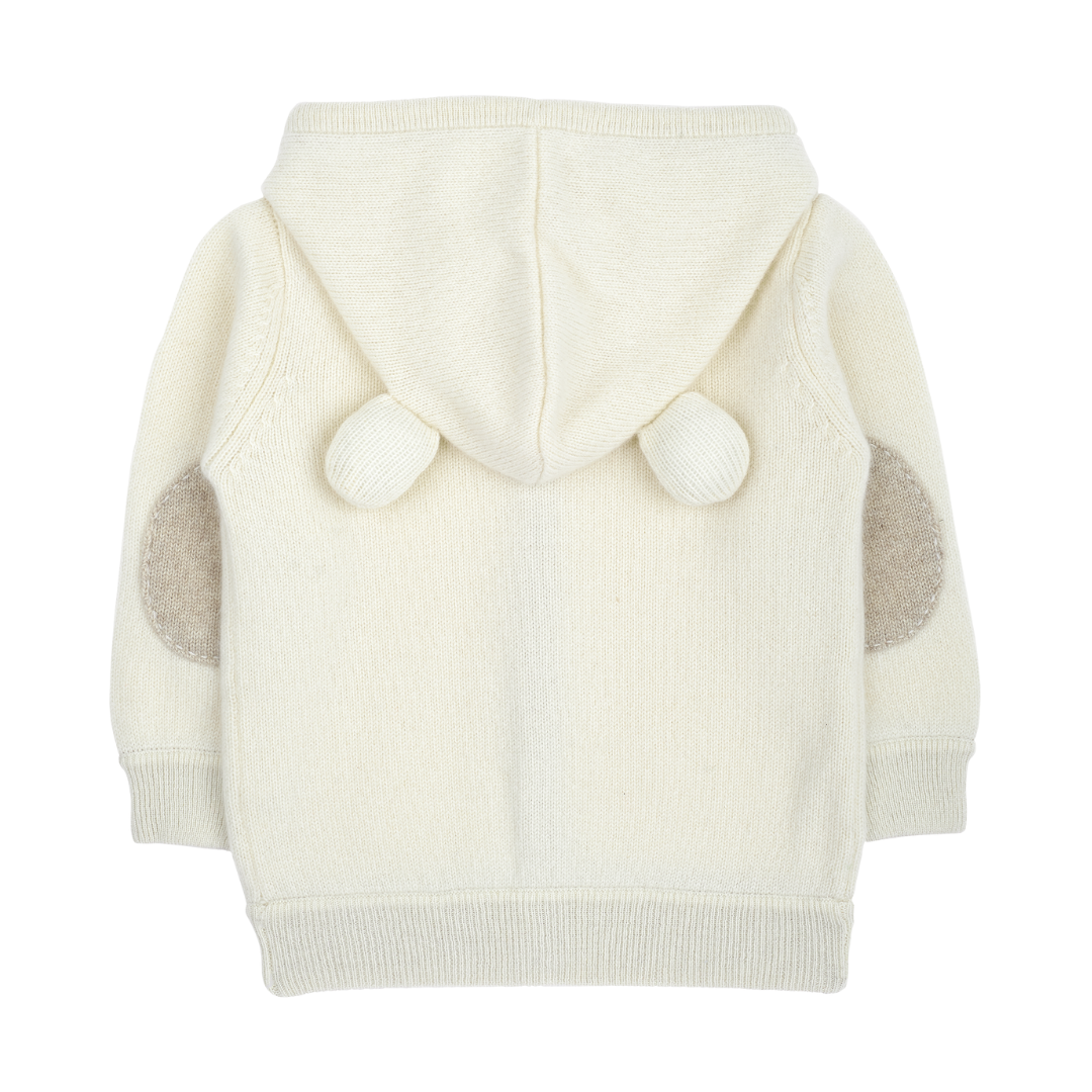 Our teddy bear cardigan hoodie is a casual wardrobe staple. Made from 100% cashmere, this cardigan hoodie is comfortable and soft. Featuring long sleeves, a hood, a ribbed hem, contrasting elbow patches, and a button fastening.