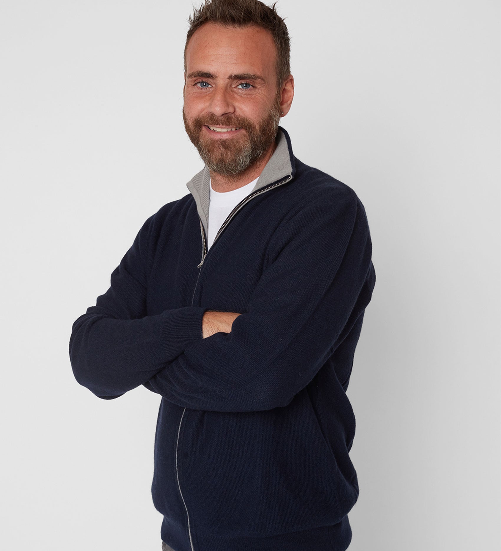 Men - Malaga 100% Premium Cashmere Reversible High Neck Cardigan