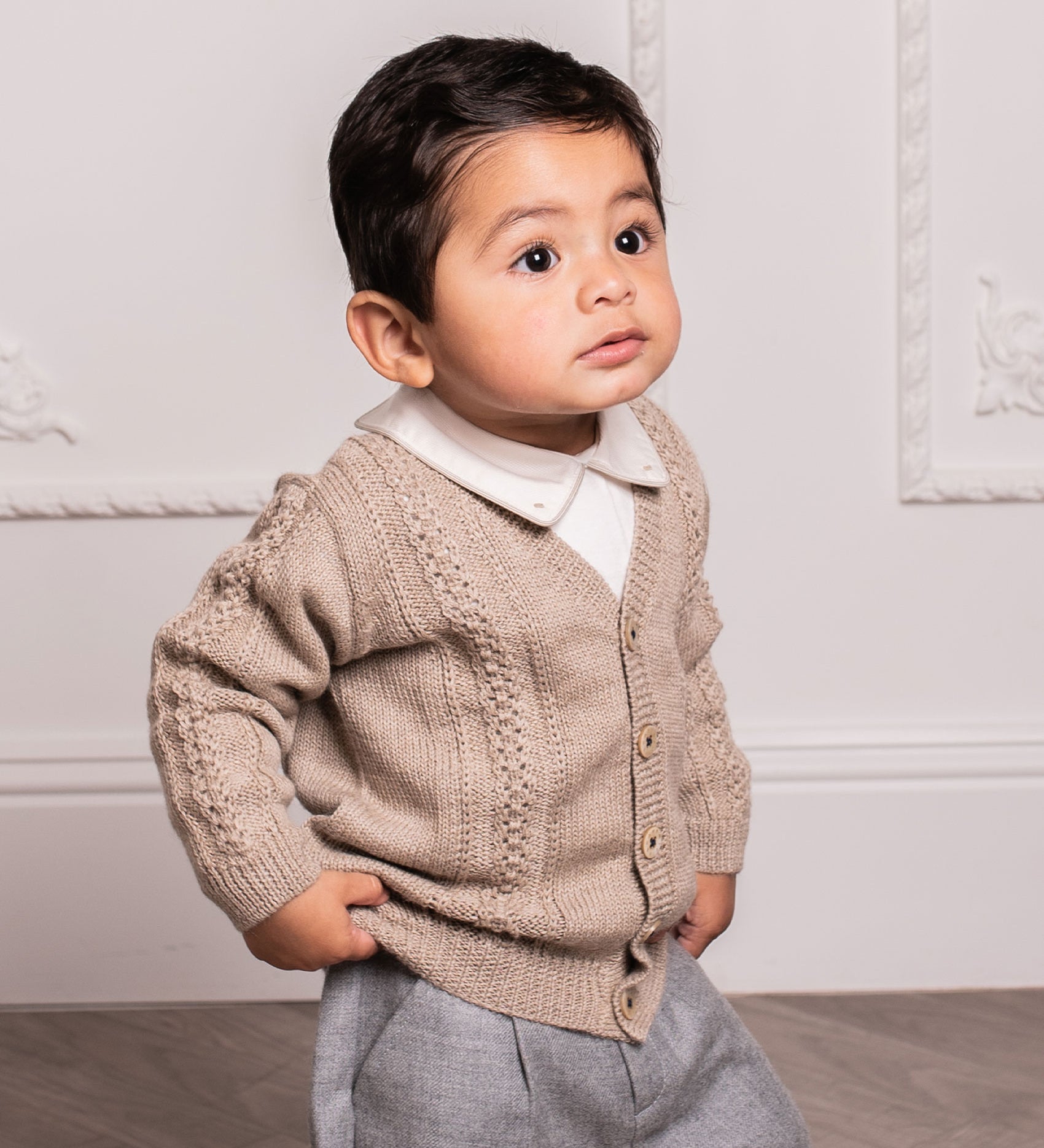 A superb collection of ultra-soft luxury cardigans for baby boys aged 1–18 months.
