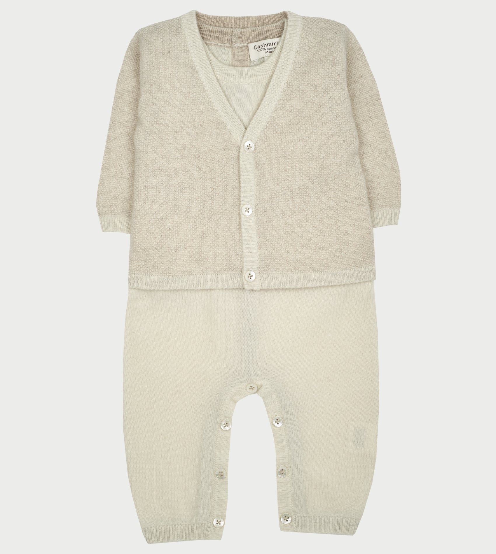 Baby Boy - 100% Cashmere Set with Romper and V-Neck Cardigan