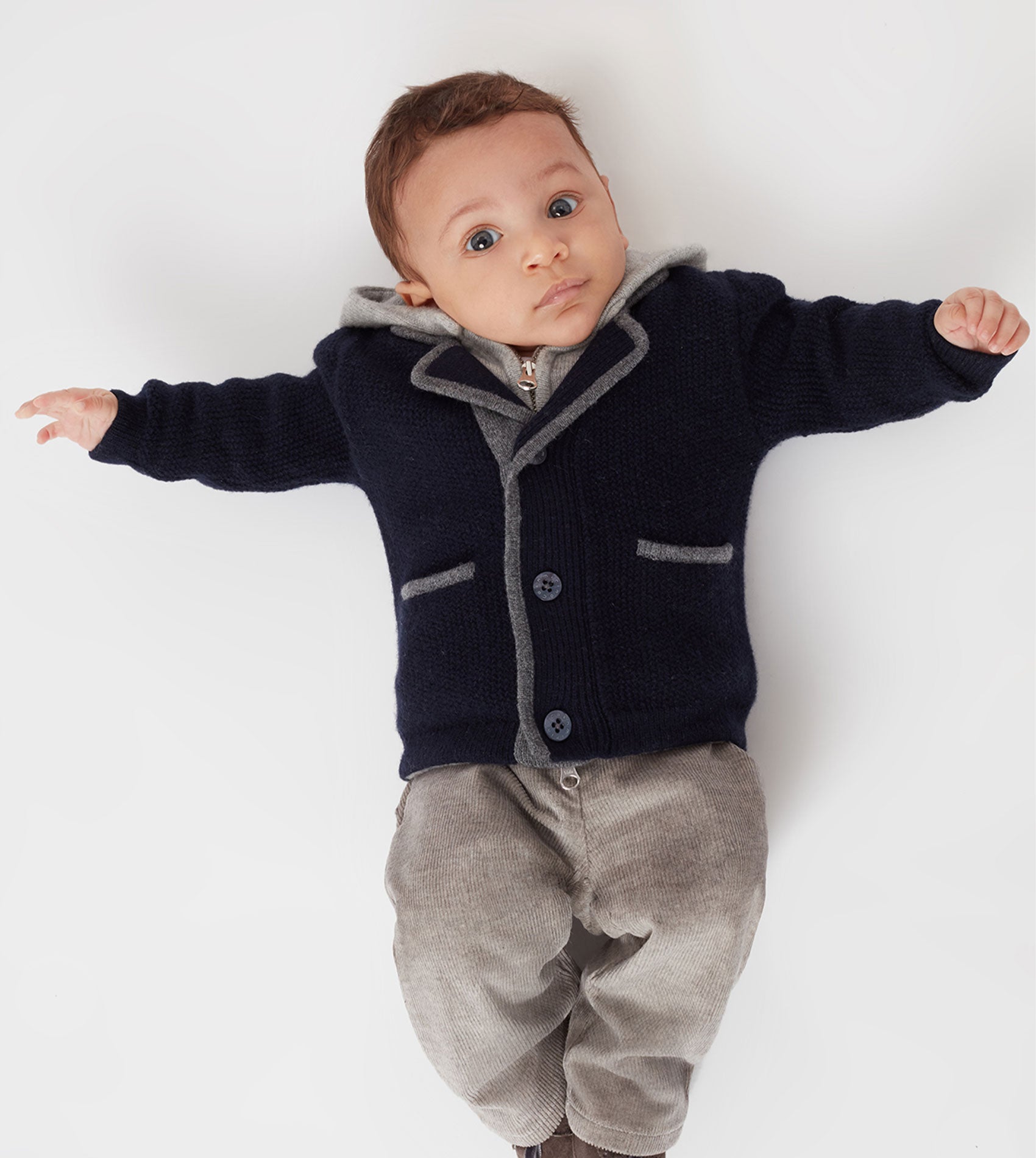 Baby Boy - Filippo Cashmere Coat Cardigan with Contrast Trim and Hoodie – 100% Mongolian Cashmere