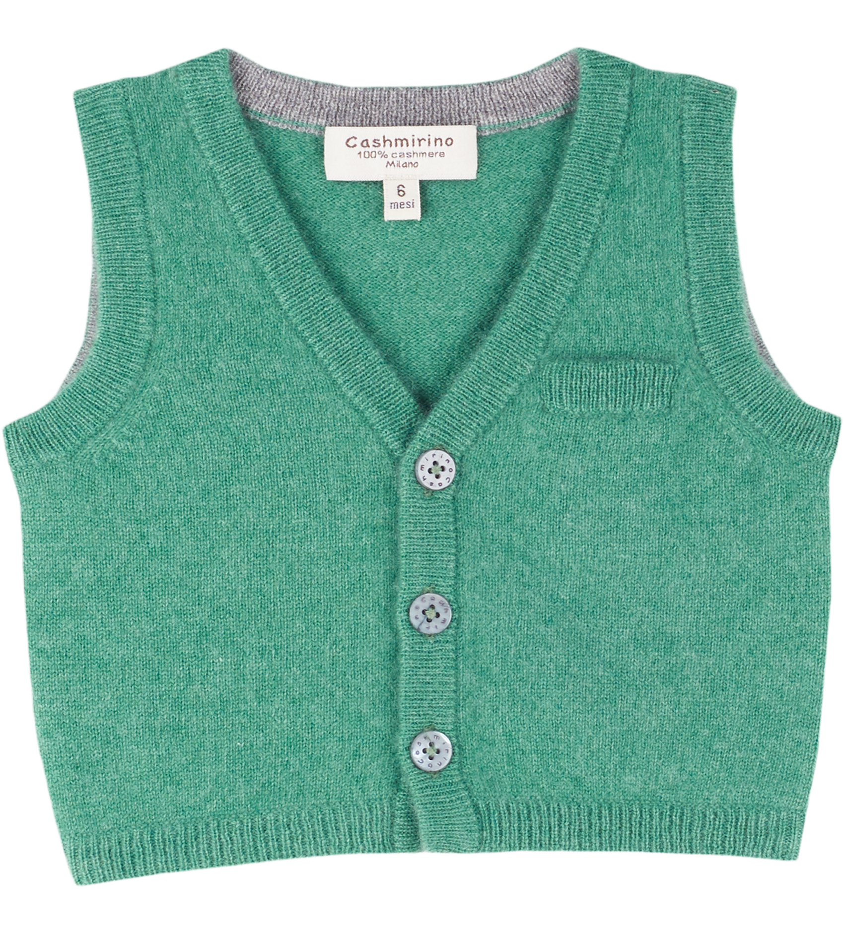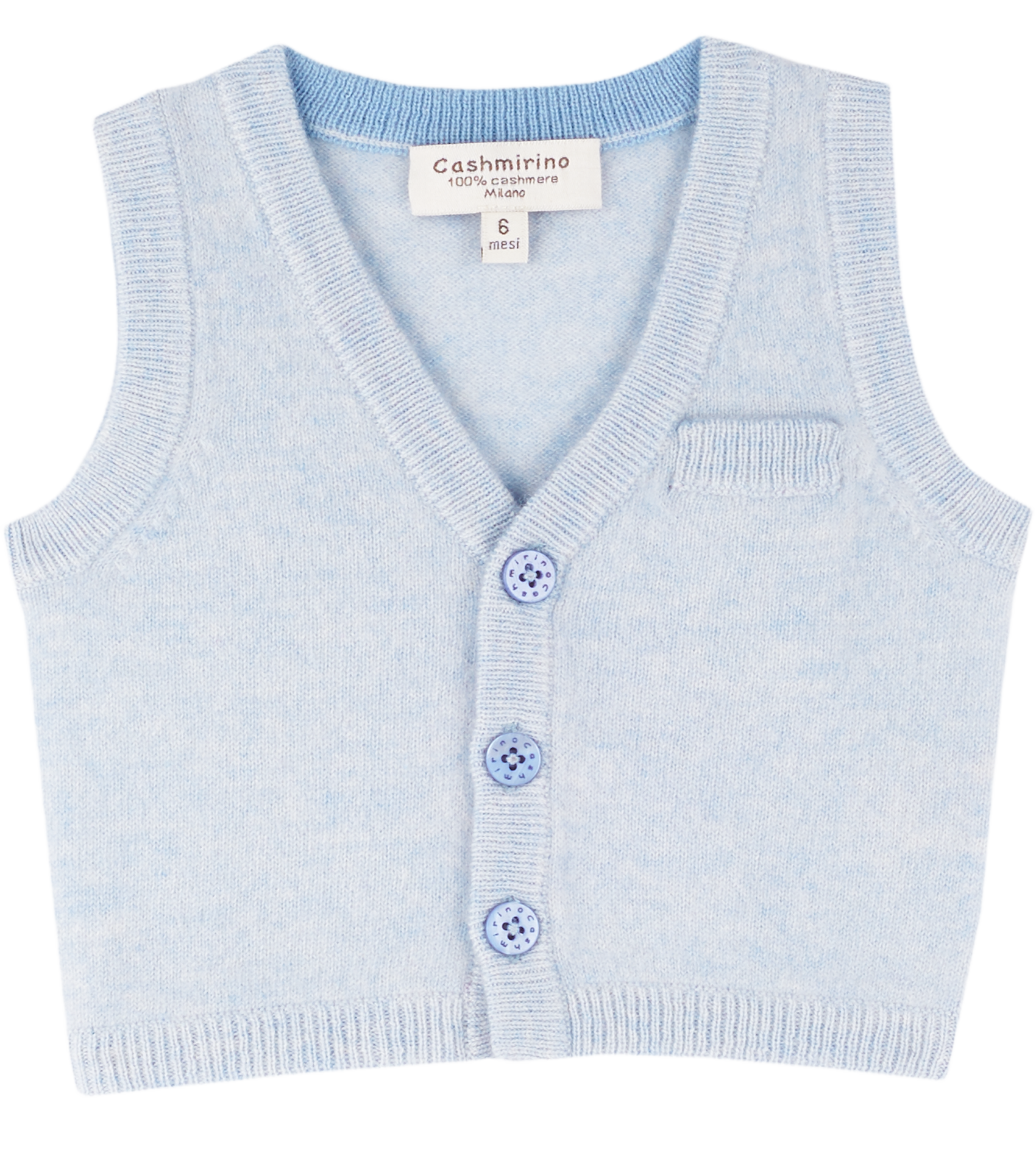 This sleeveless baby boy cardigan is crafted from 100% lightweight cashmere, combining softness and breathable warmth. Designed with a charming V-neck collar, a handy small front pocket, and classic button fastening, it’s perfect for layering over shirts or rompers.