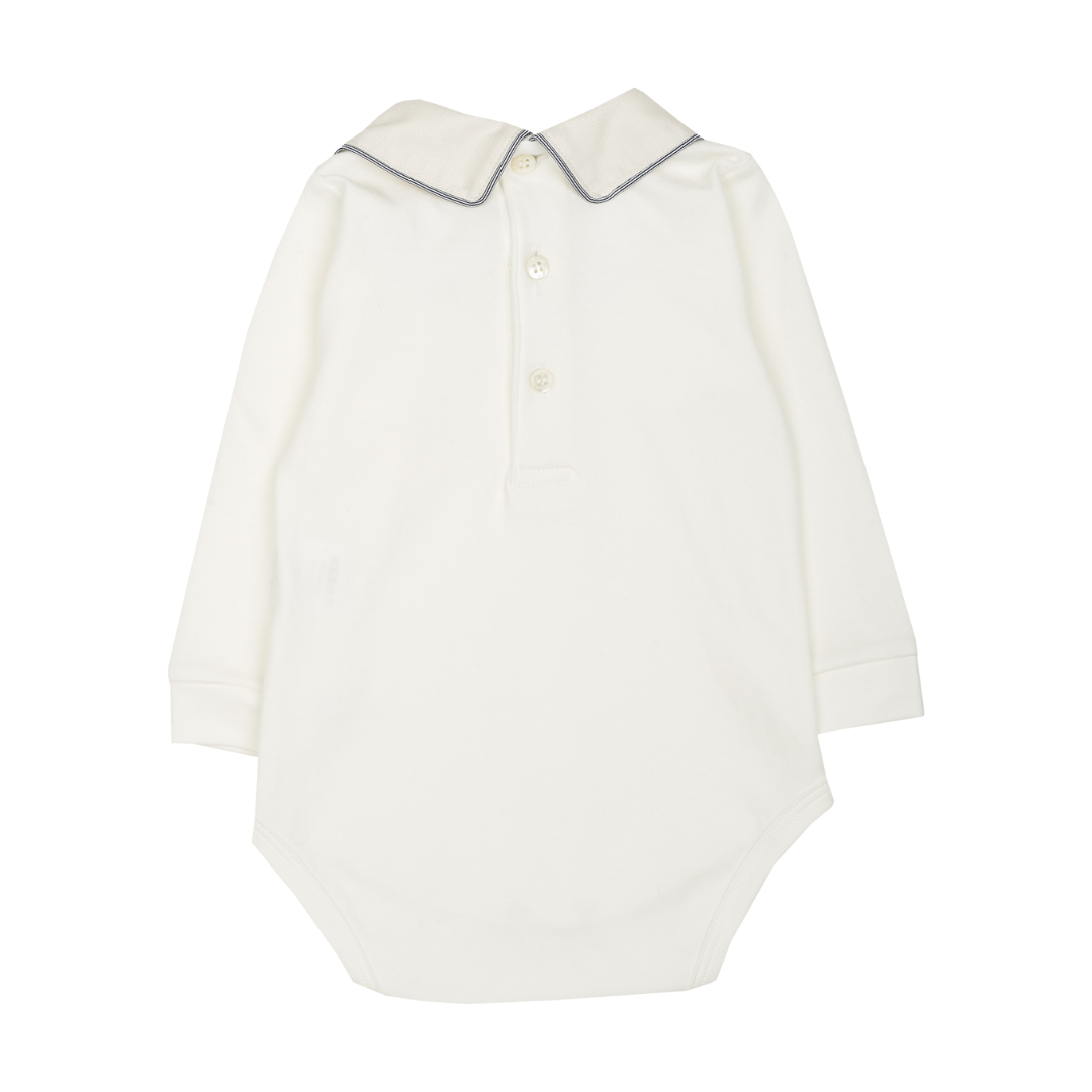 Baby Boy - Micky Pima Cotton Bodysuit with Classic Collar and Hand-Embroidered Car Detail