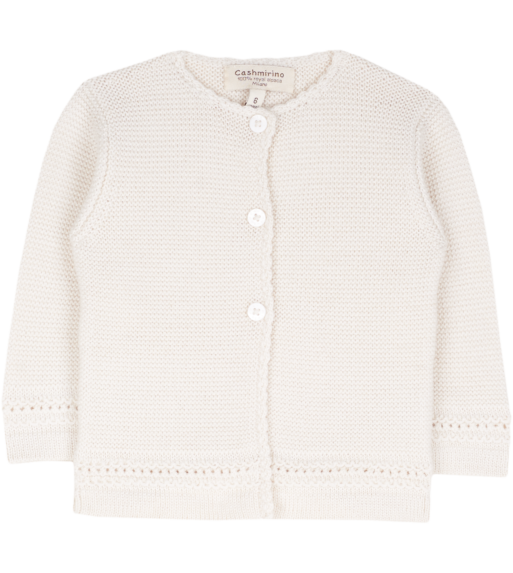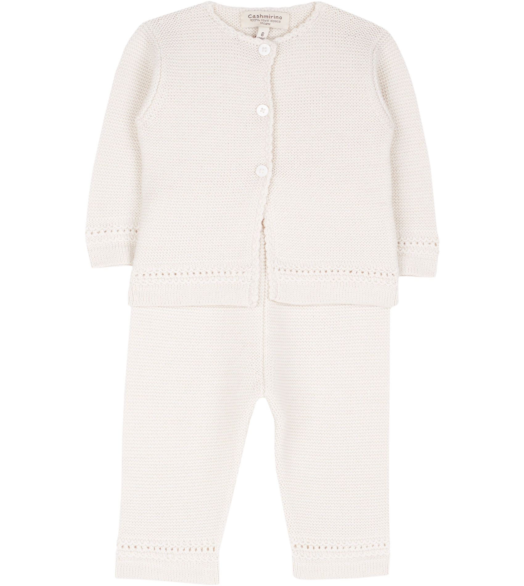 This exquisitely crafted set includes a delicately detailed cardigan and matching bottoms, both made from 100% Royal Alpaca—renowned for its exceptional softness, warmth, and durability.