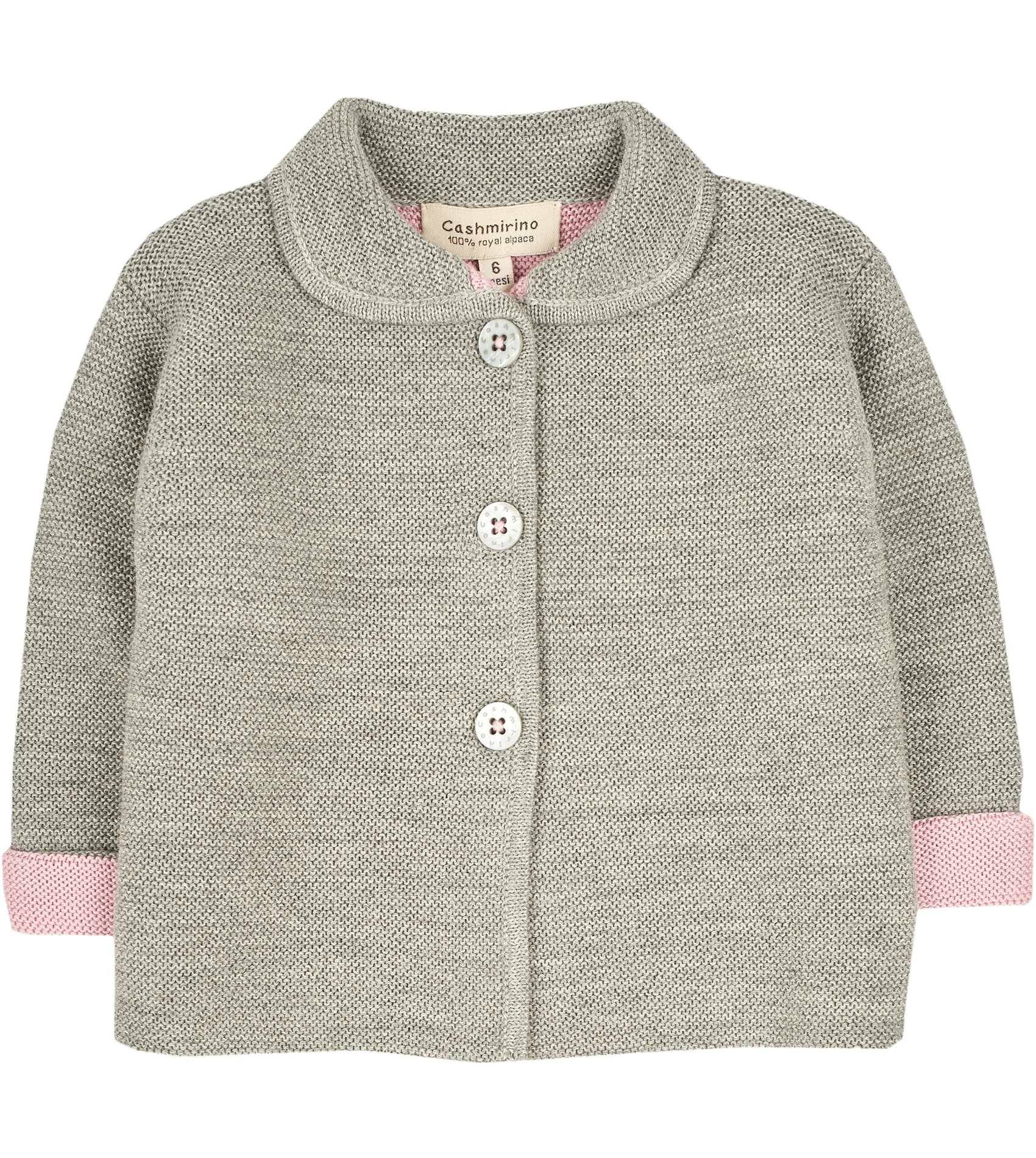 Classic style meets luxurious comfort in this 100% Royal Alpaca coat cardigan, thoughtfully designed for your baby girl. Featuring a charming Peter Pan collar and a beautifully tailored silhouette, this piece is perfect for special outings or polished everyday wear. The interior offers a soft contrast lining made from a blend of 70% cotton and 30% modal, ensuring gentle comfort against delicate skin.