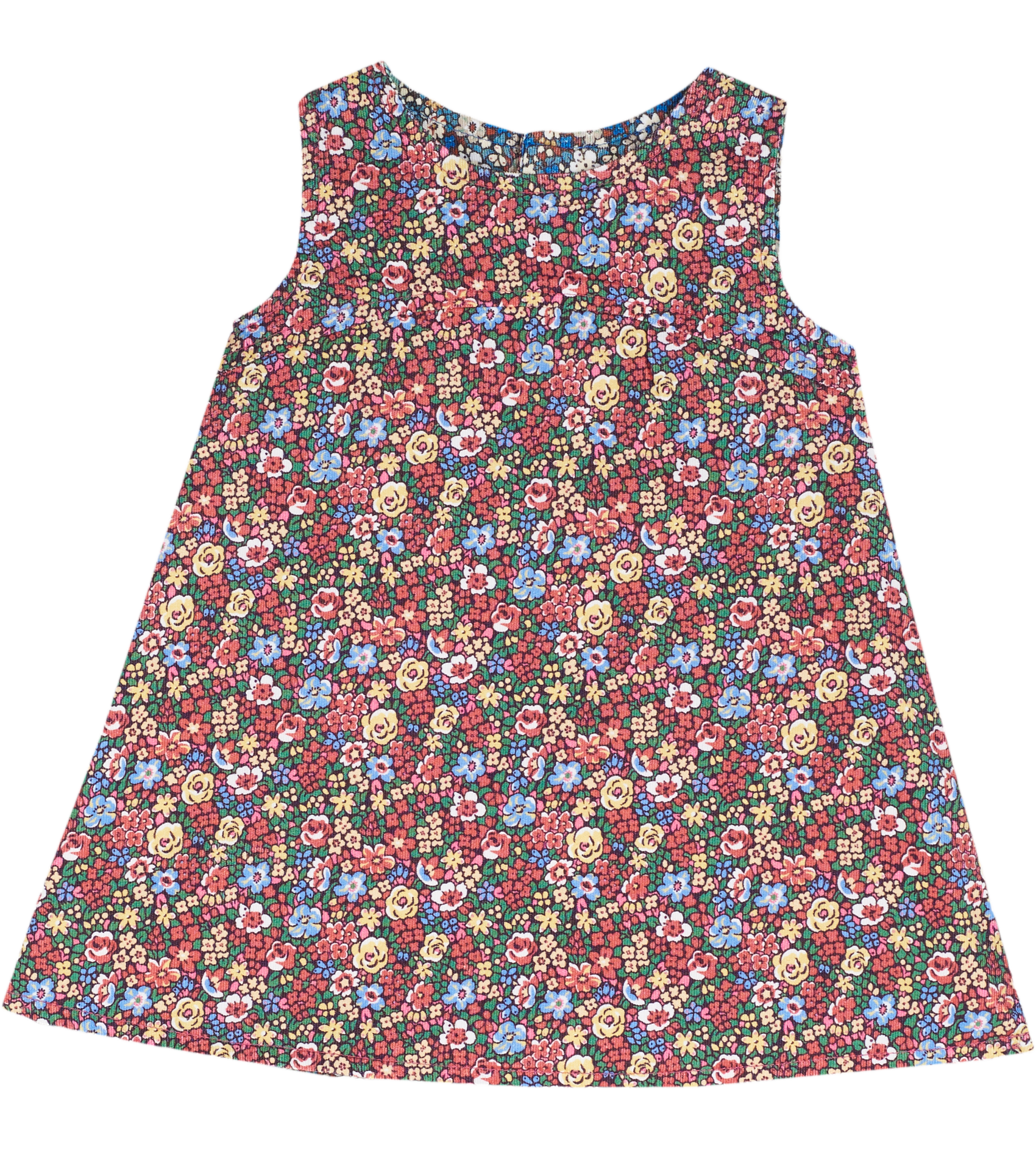 On one side, discover a delicate blooming Liberty floral print, while the reverse reveals the same exquisite pattern in a different hue. Whether your little one is in a playful or polished mood, this dress adapts effortlessly—simply turn it inside out to change the look.