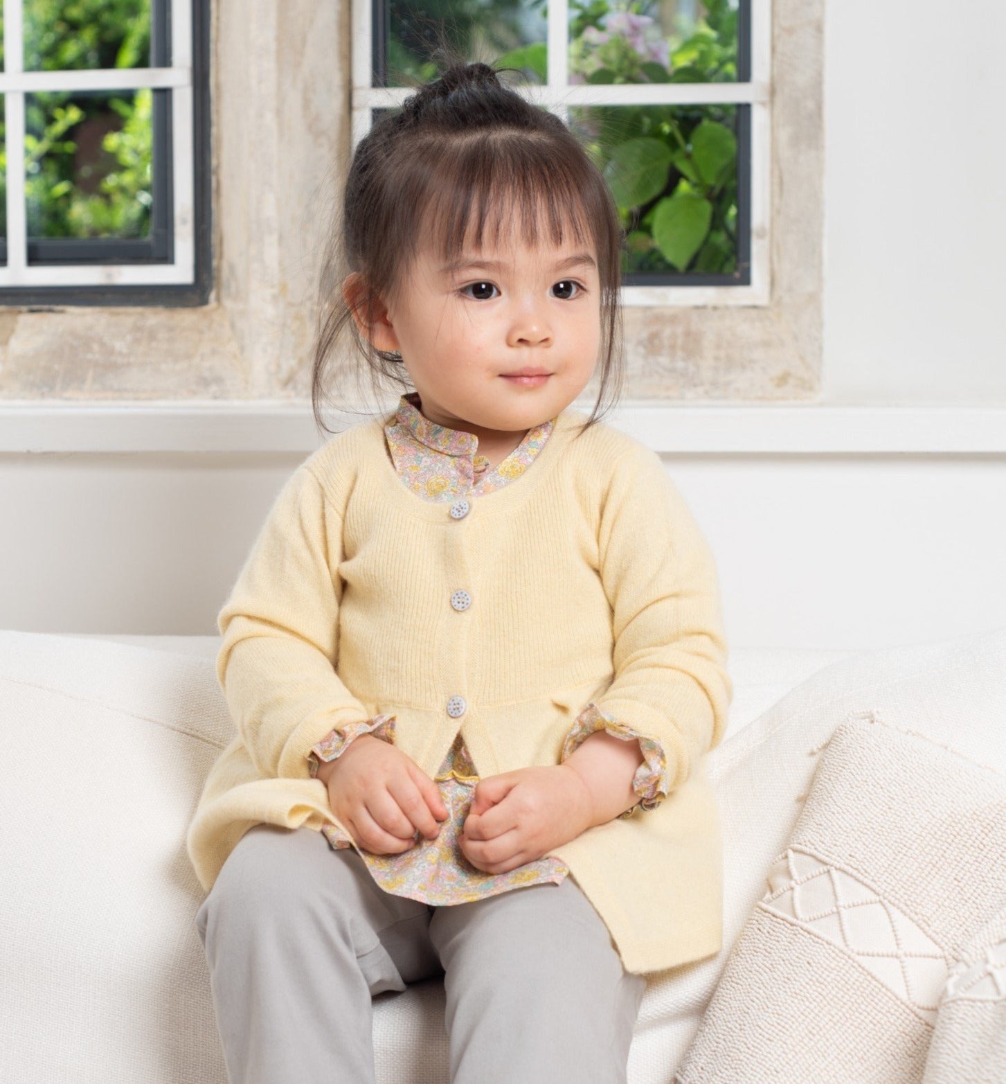 This colourful Baby Girl cardigan is made from 100% cashmere to ensure that your little girl feels happy and lively whilst also being wrapped in soft, luxurious comfort. This particular design includes a gathered waist, long sleeves and a round neck. Available in an extraordinary range of colours and sizes.