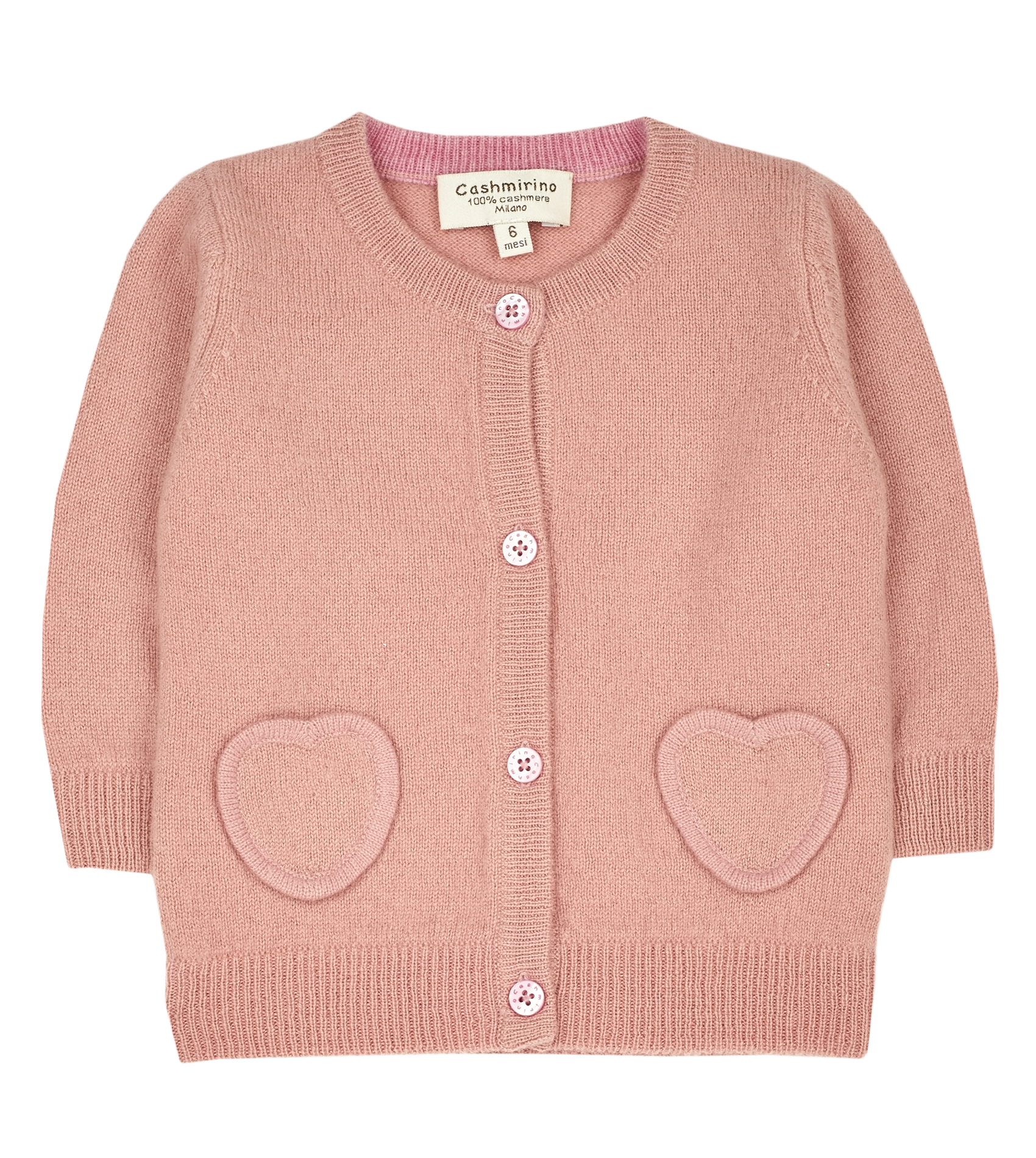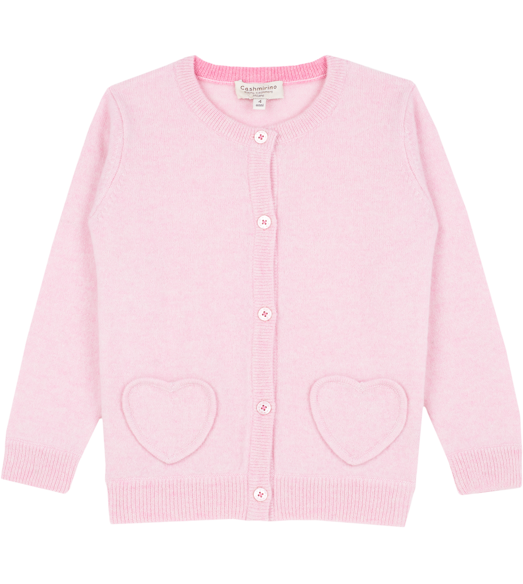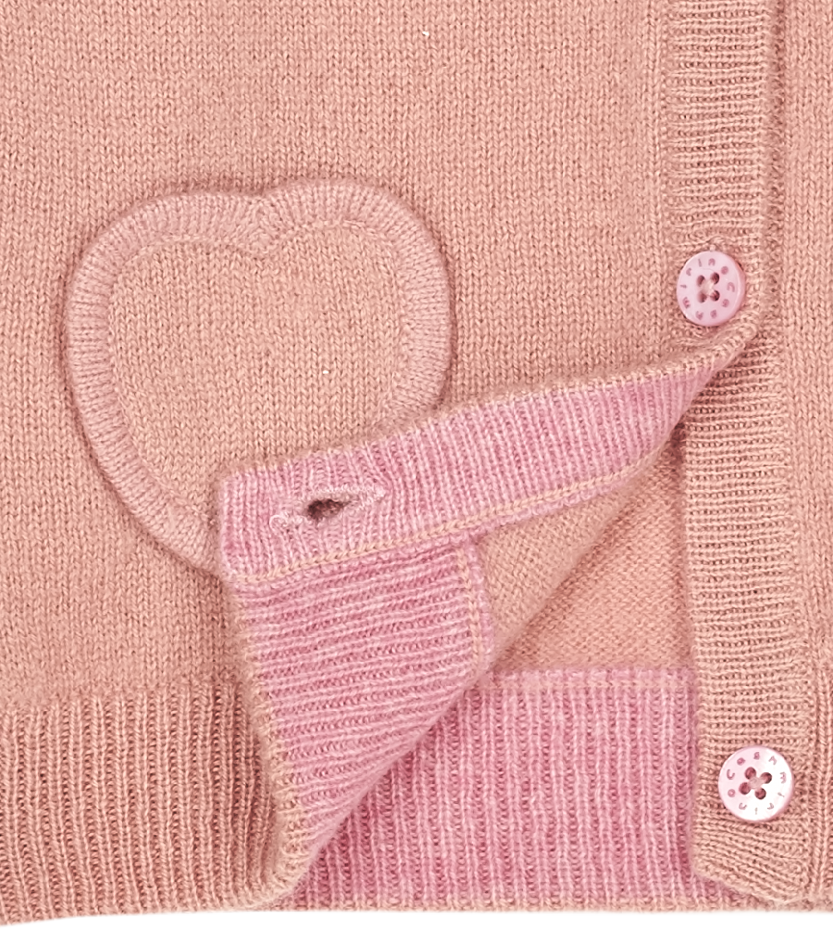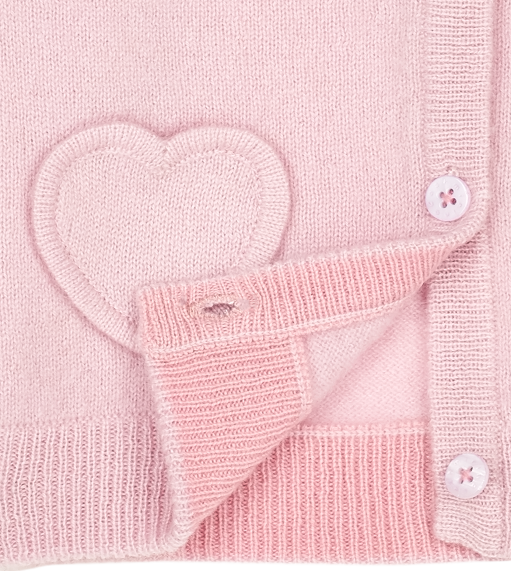 Baby Girl - Sweetheart Cashmere Cardigan with Heart Pockets in 100% Mongolian Cashmere