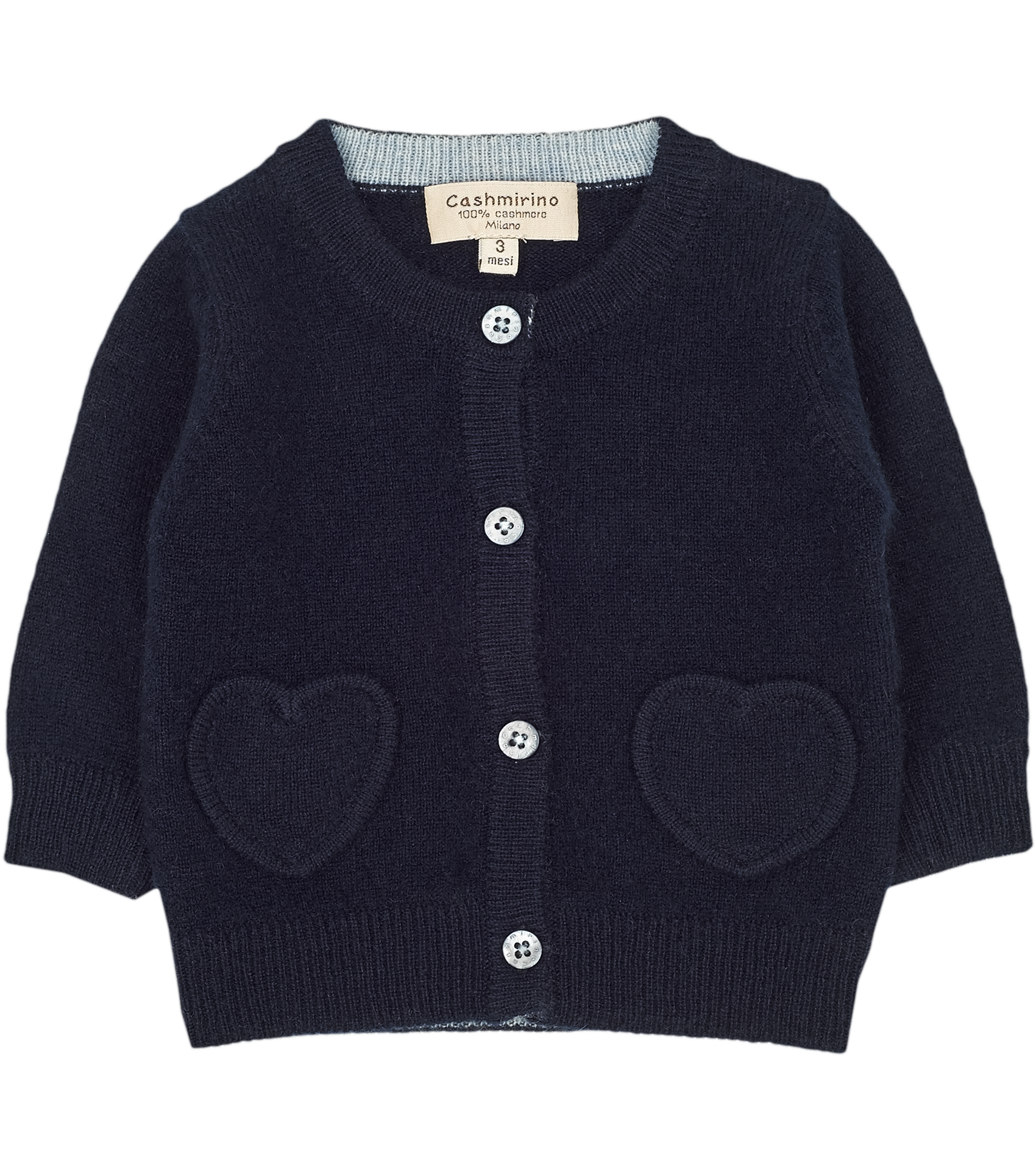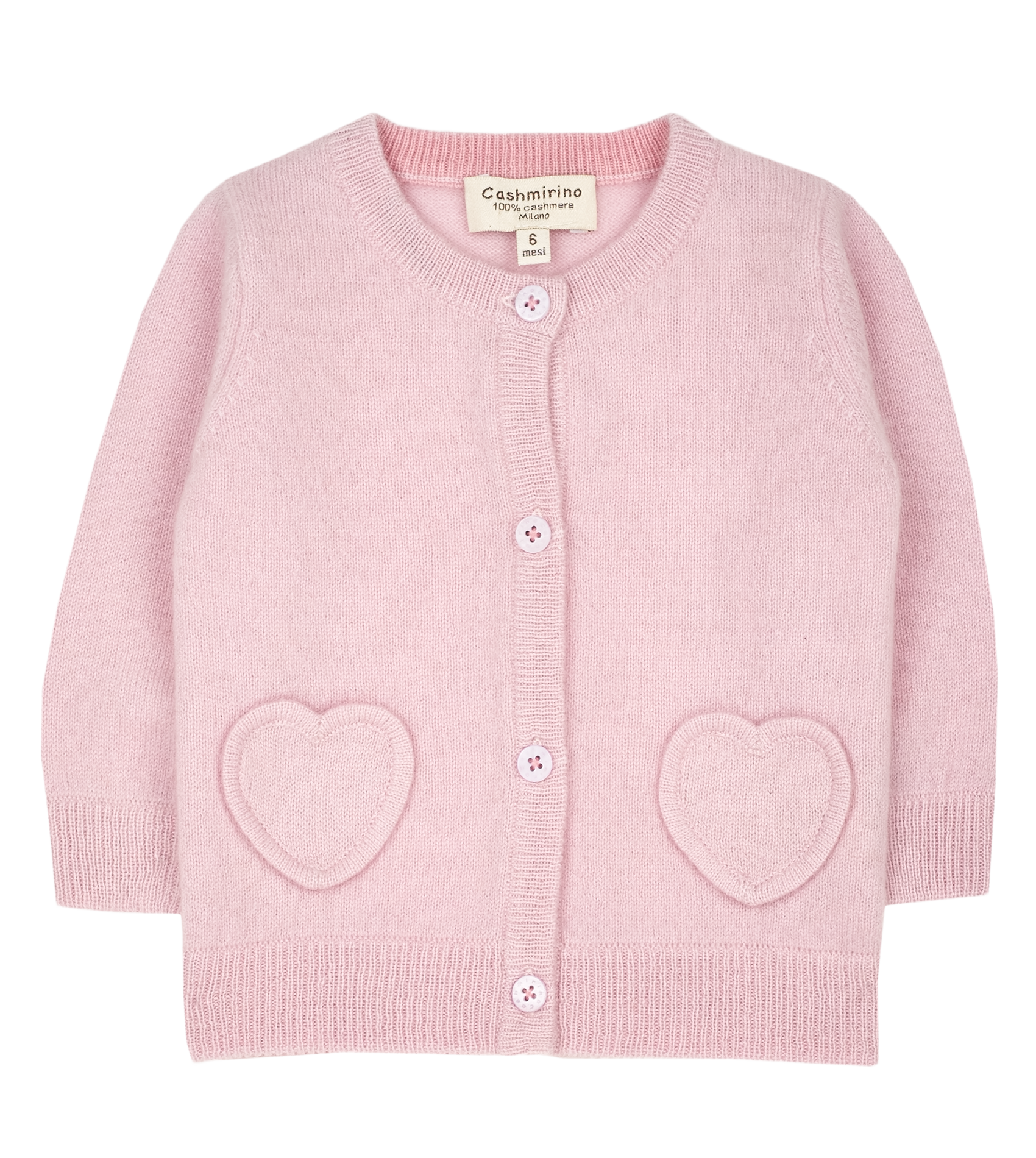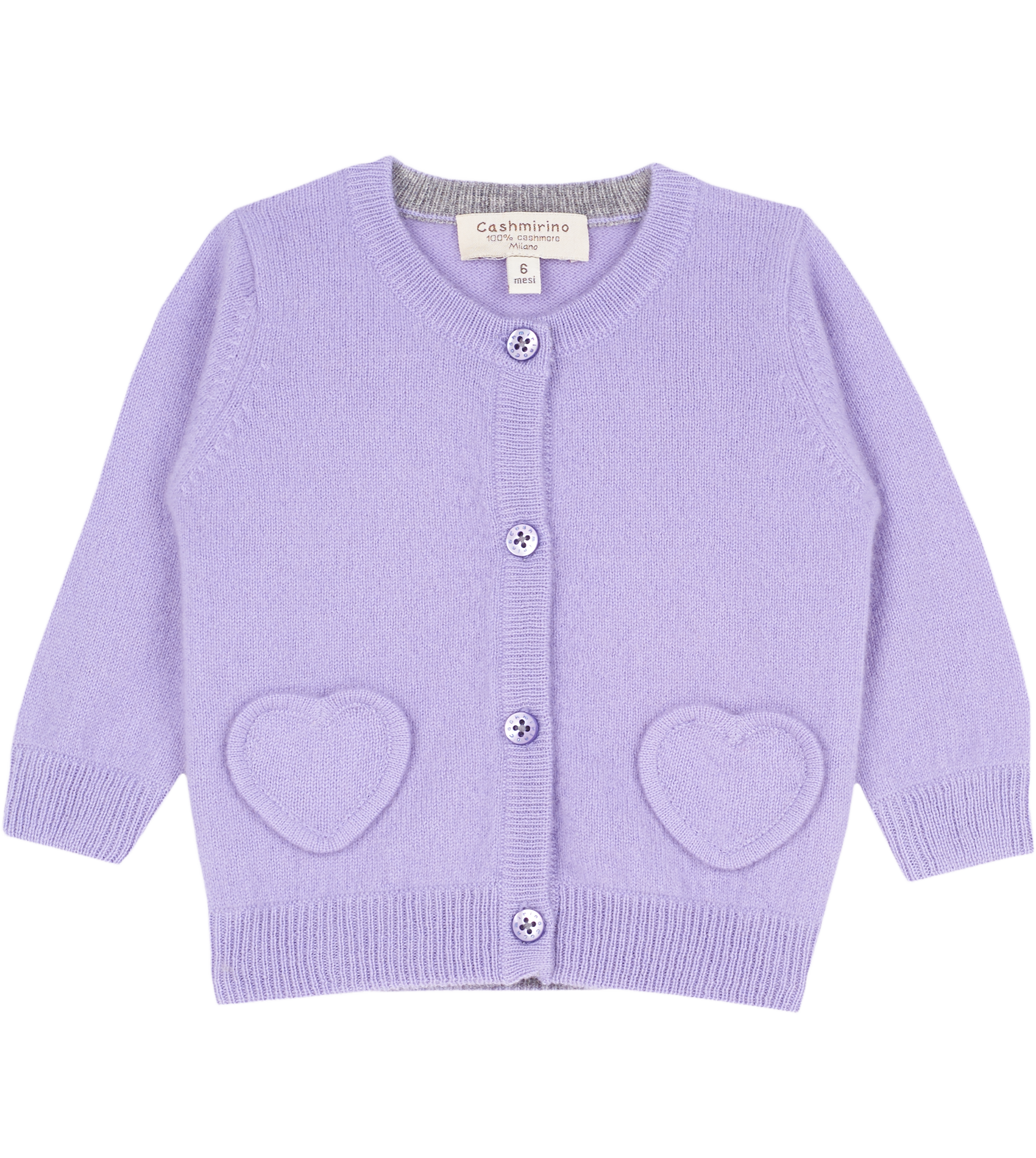 Baby Girl - Sweetheart Cashmere Cardigan with Heart Pockets in 100% Mongolian Cashmere