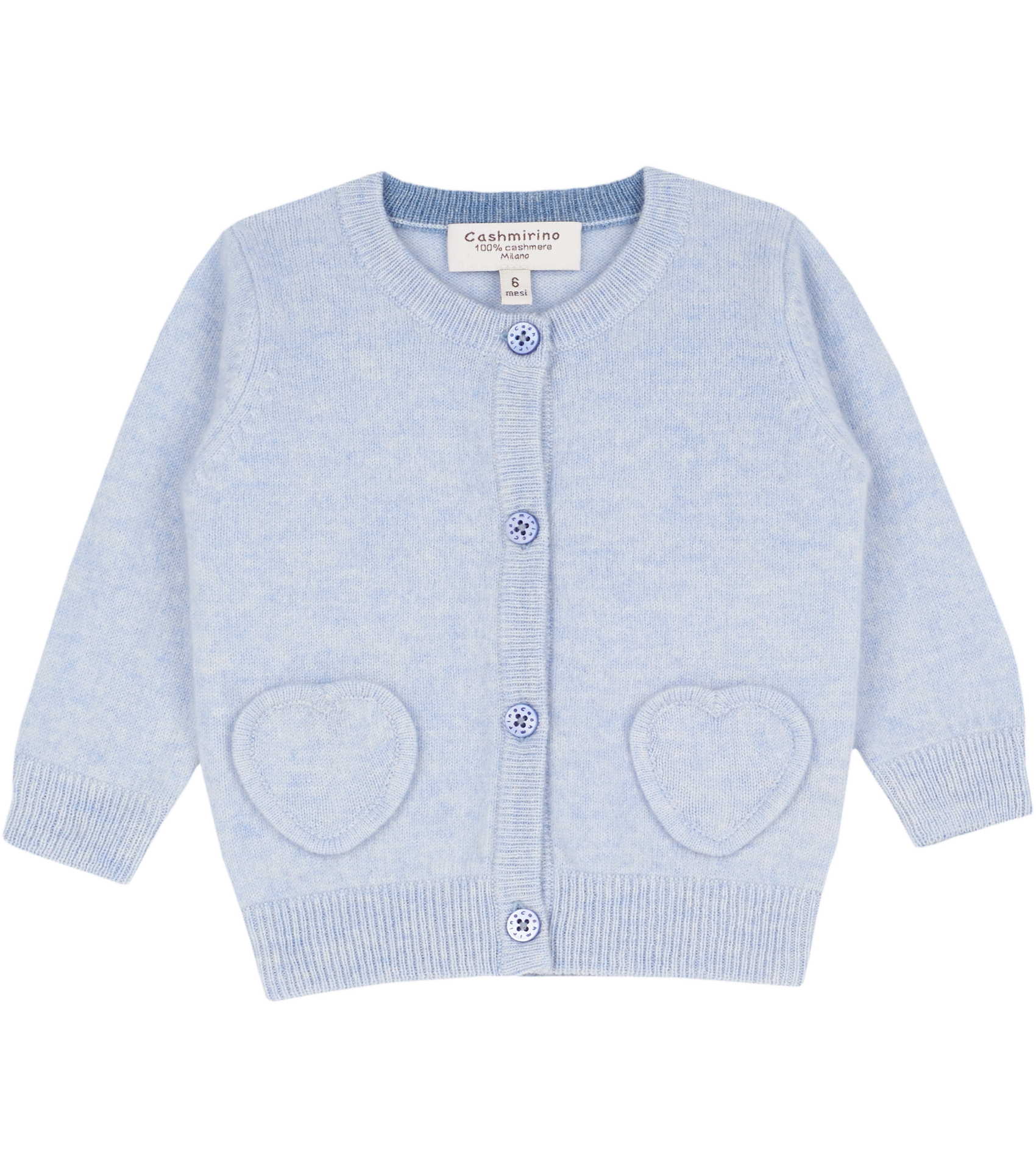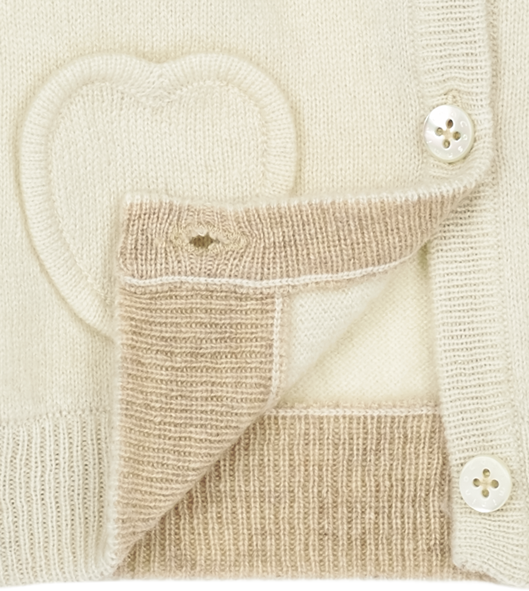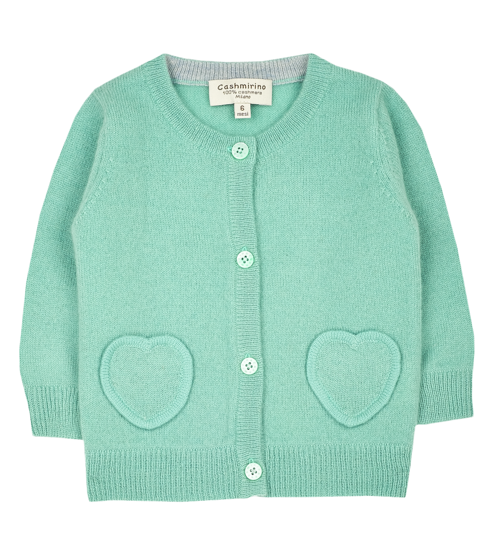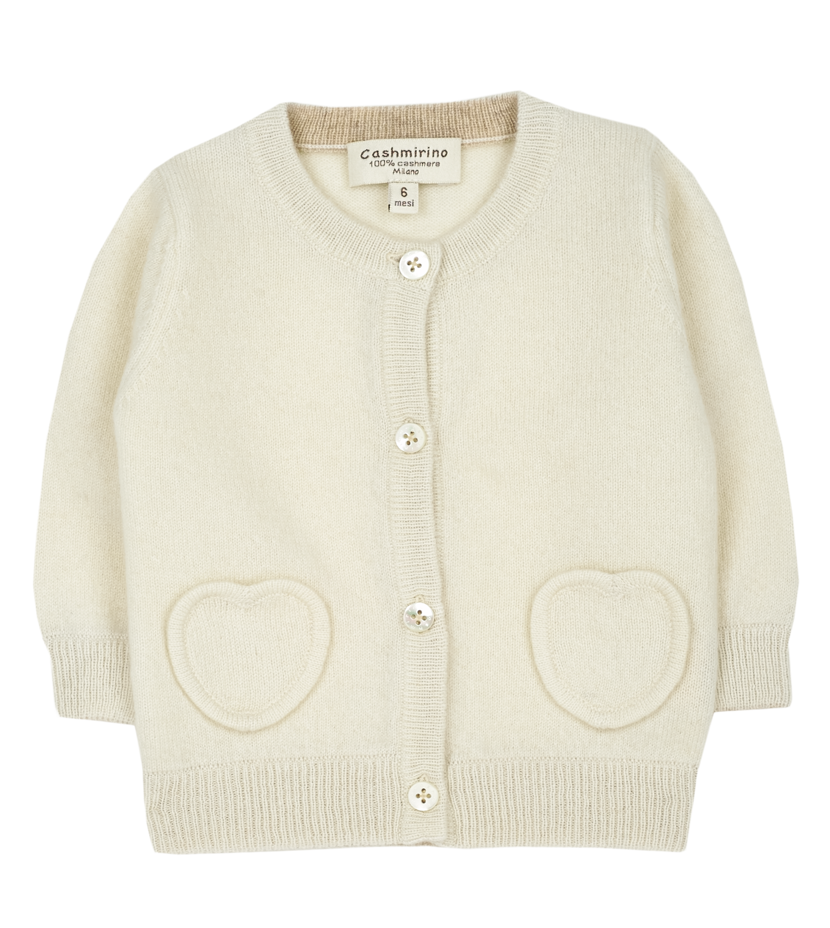 Baby Girl - Sweetheart Cashmere Cardigan with Heart Pockets in 100% Mongolian Cashmere
