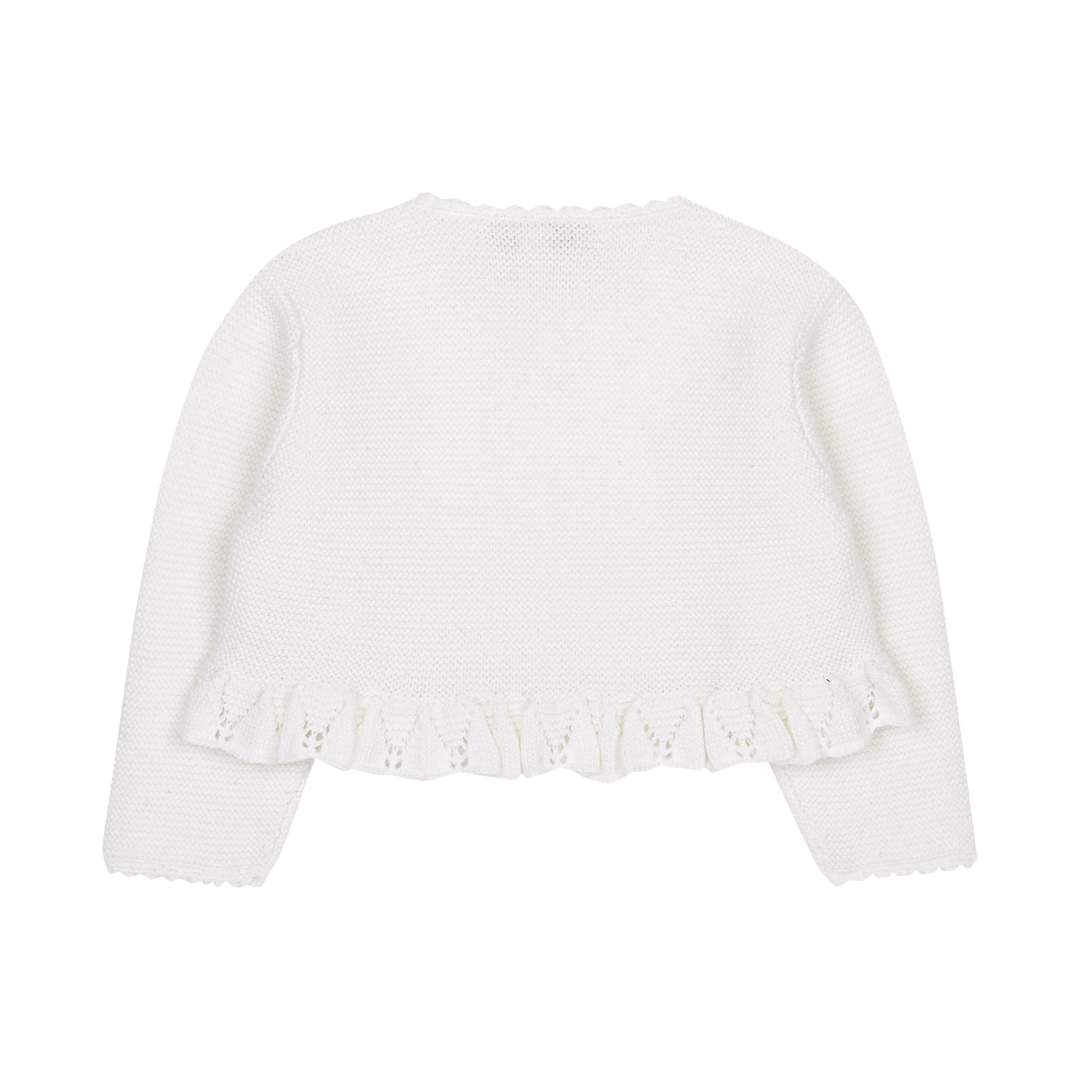 This beautifully knitted cropped cardigan is the perfect finishing touch to any baby girl outfit. Made from a soft and breathable blend of 80% Pima cotton and 20% modal, it offers gentle comfort for delicate skin, making it ideal for everyday wear or special occasions.