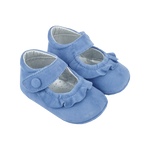 Light and breathable, these 100% suede crawling shoes are perfect for warm-weather days. Designed with delicate frill detail, a stylish cut-out insert, and a soft Velcro strap with button accent, they offer comfort and charm for little ones on the move. Ideal for sunny strolls and special summer moments.