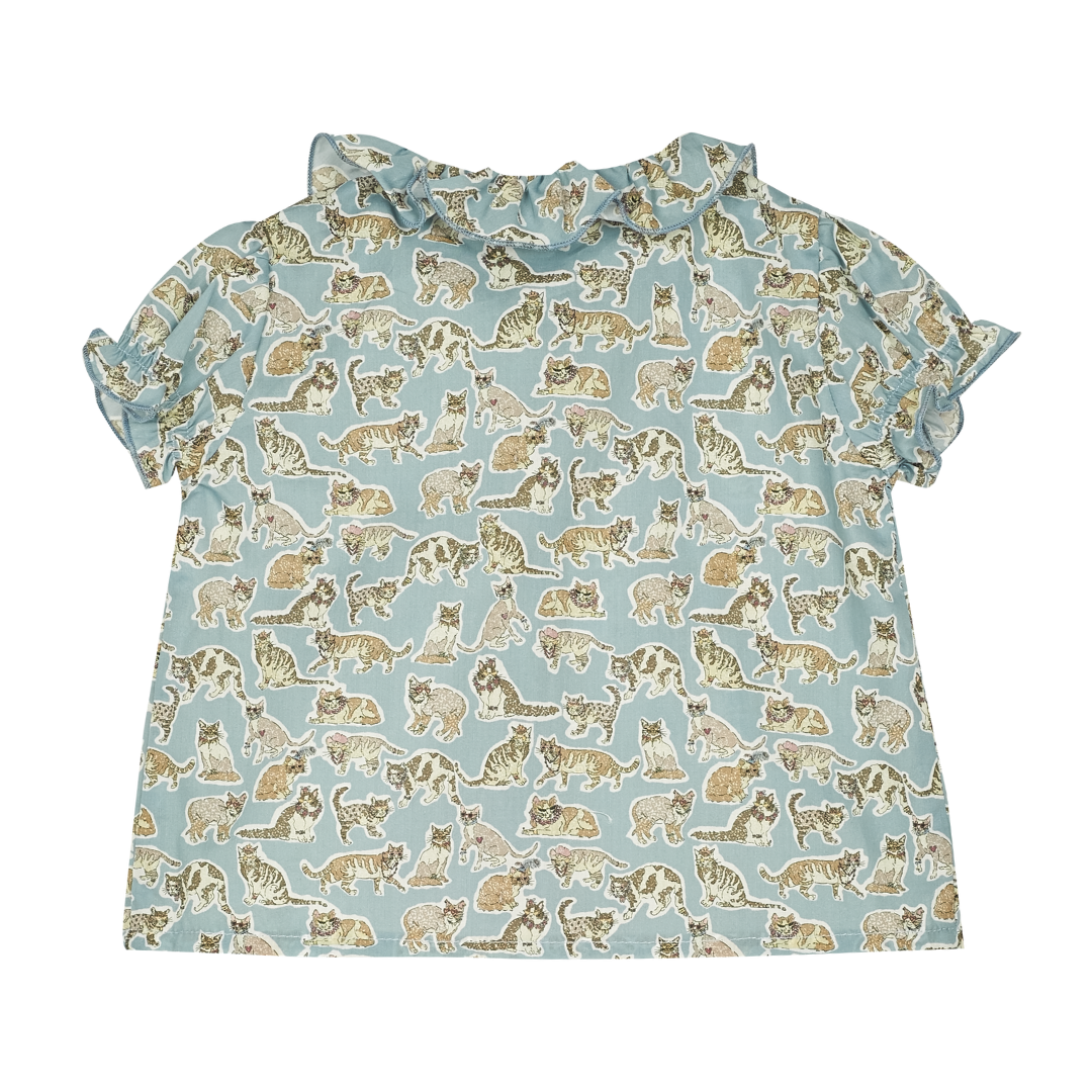 The Trudy Baby Girl blouse, made from 100% Liberty print cotton will fit in seamlessly with the summer scenery. The breathable cotton composition of this blouse is brought to life with a range of signature, colourful prints. Ruffled collar, Puff sleeves, Dart detailing, Signature Cashmirino buttons.