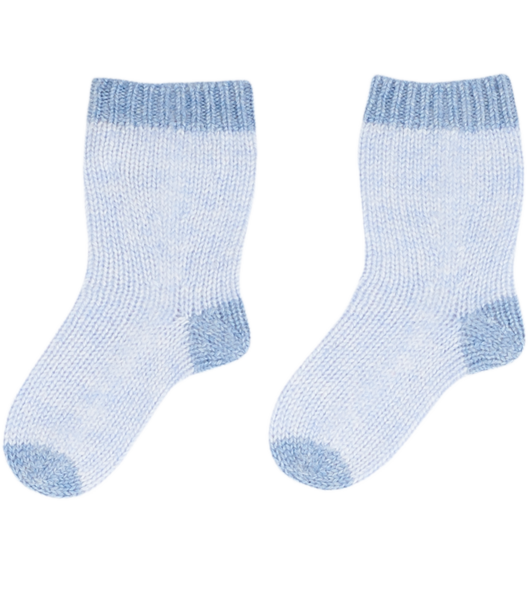 A pair of 100% cashmere socks featuring a contrasting heel, toe and hem. Ideal for keeping little feet warm.