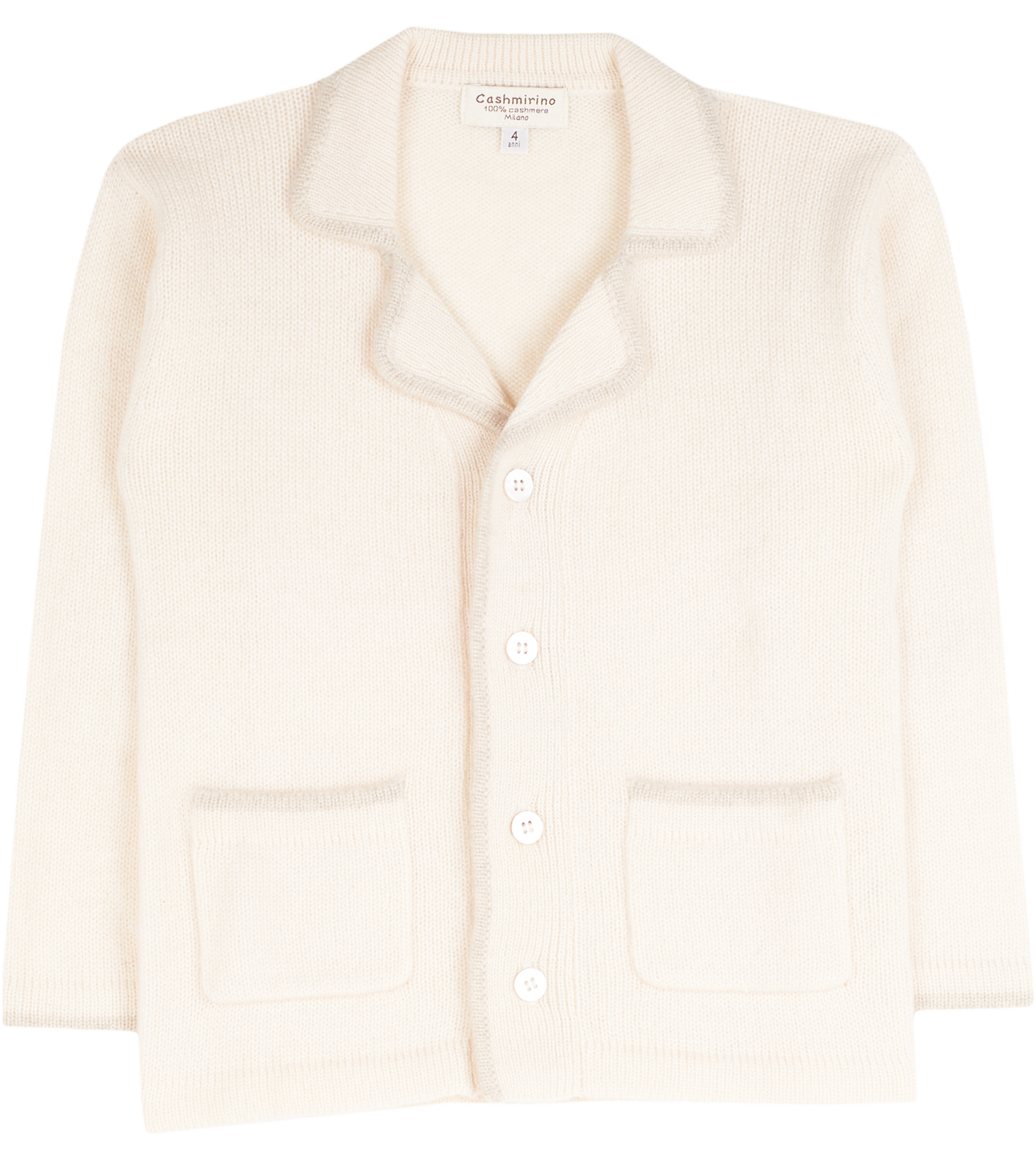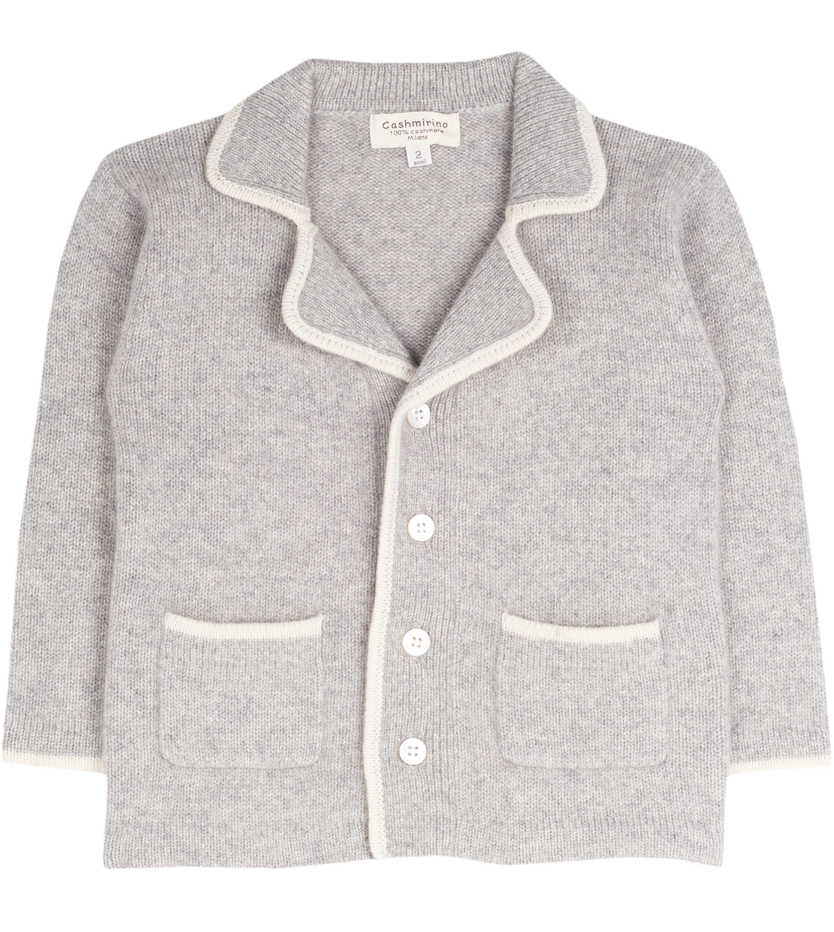 Smarten up with this 100% cashmere boy blazer - a classic piece that features contrasting coloured lapels and buttons and Cashmirino signature buttons. In spring and autumn, this blazer can be worn instead of a jacket directly on top of a shirt, making your little boy look very cute and elegant.