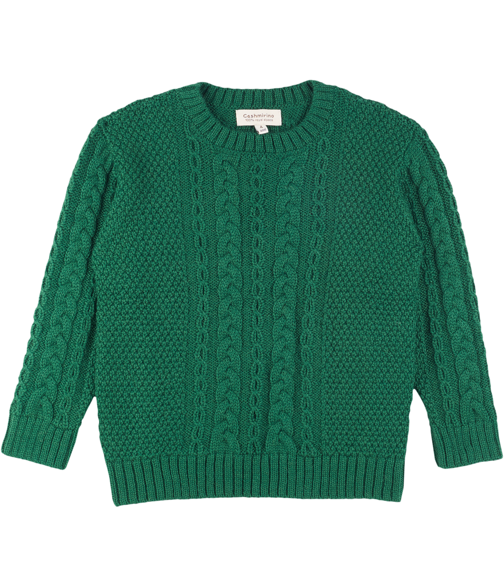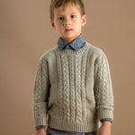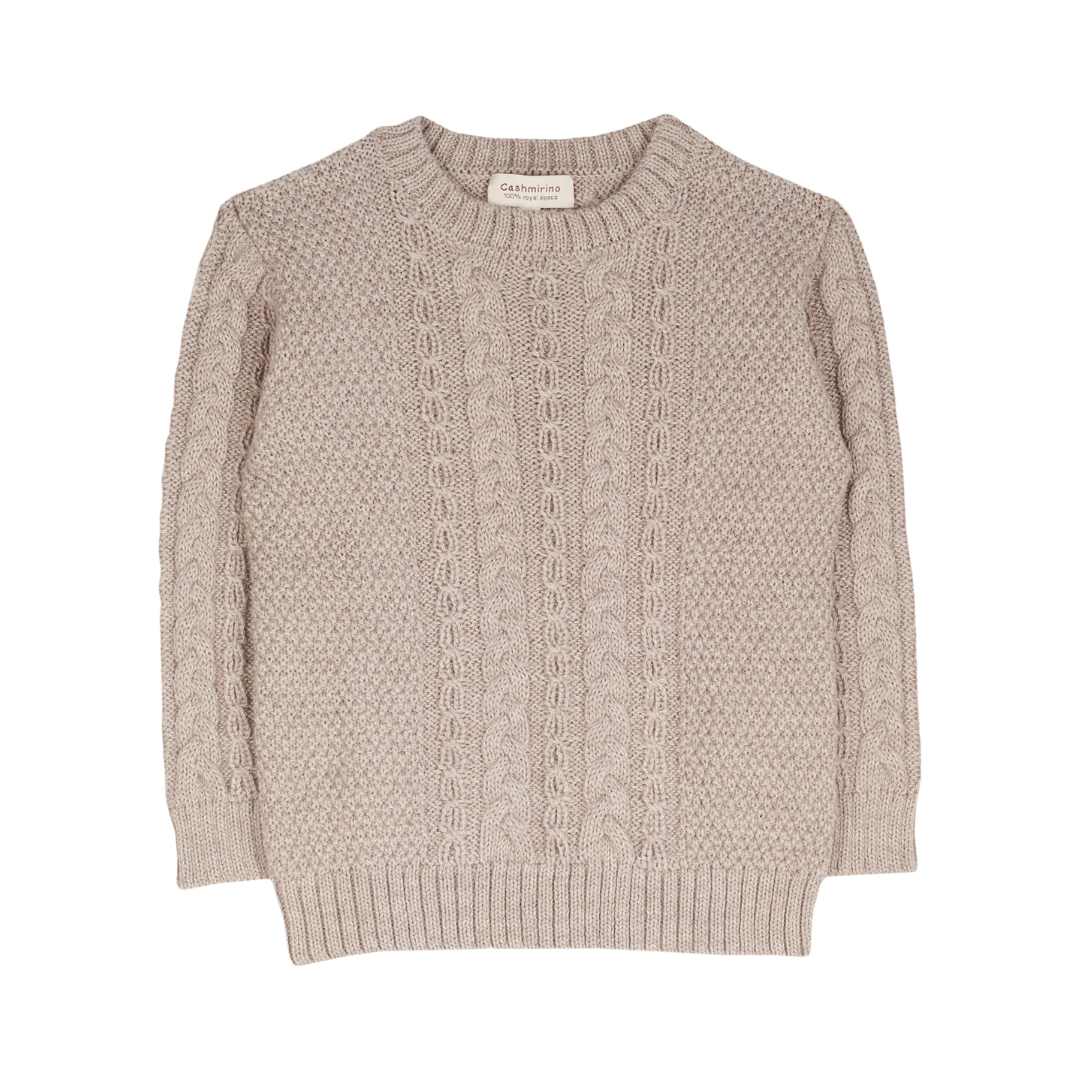 A wardrobe essential, our charming 100% Royal Alpaca jumper will keep your little one toasty during their outdoor adventures. With style in mind, we absolutely love the Aran knit alongside contrasting rope cable, braided cable, and moss stitch details. Designed with a button shoulder opening using our signature buttons for easy on-off for baby sizes. It can be paired with our Wool and Cotton trousers to create a classic Cashmirino outfit