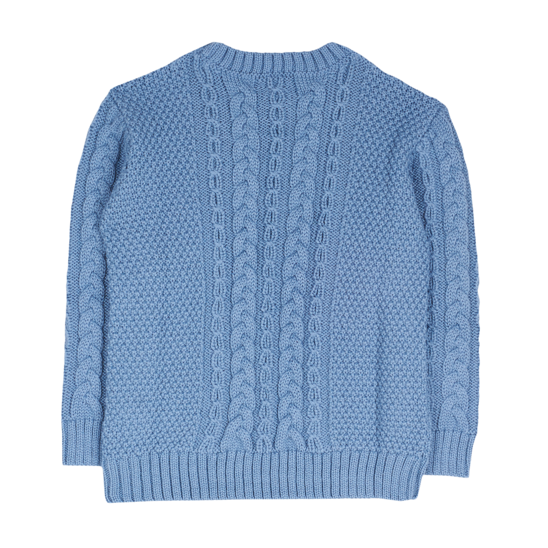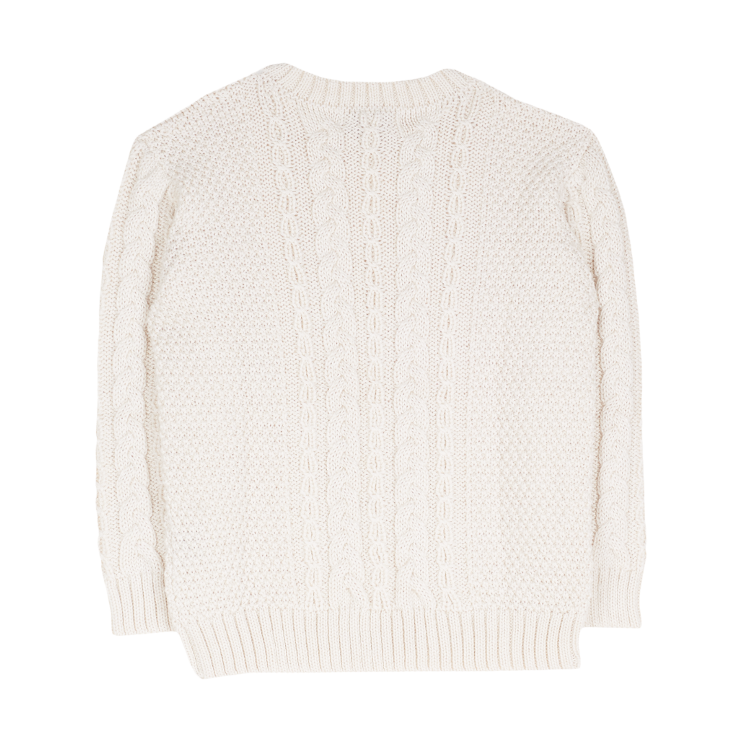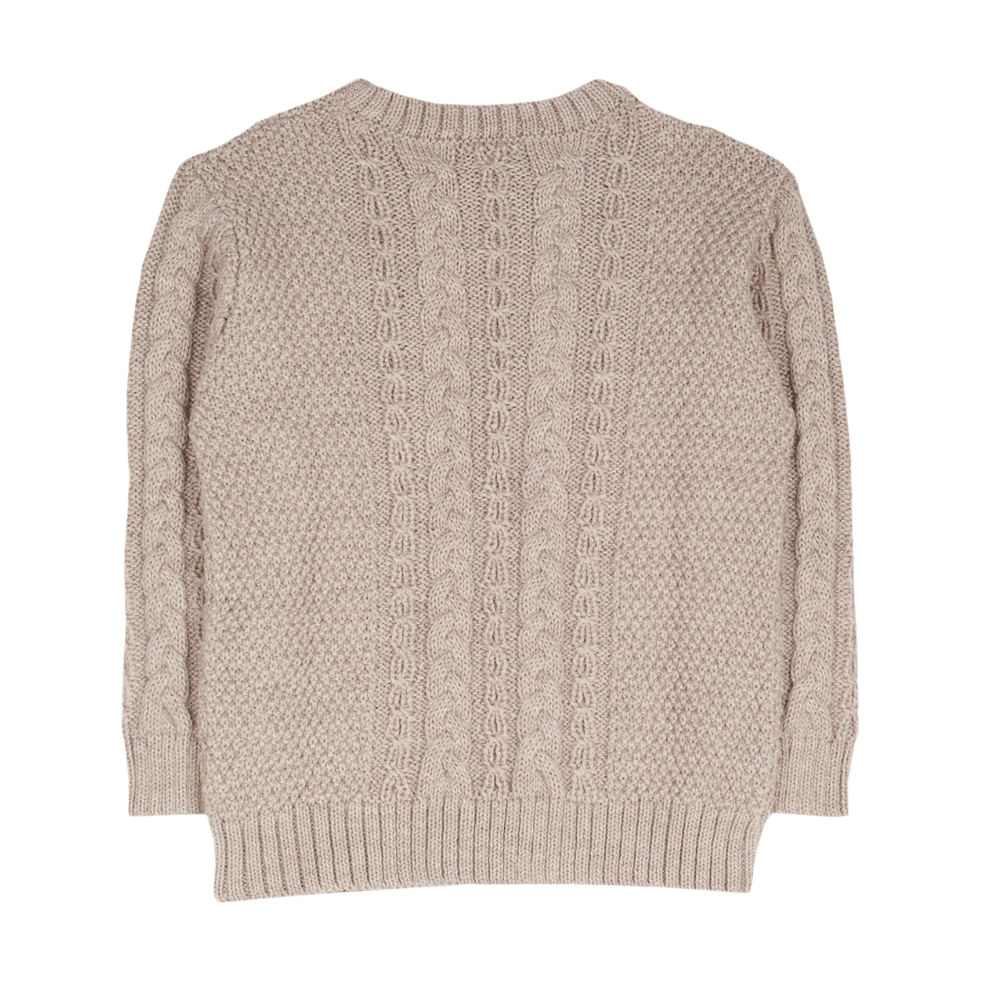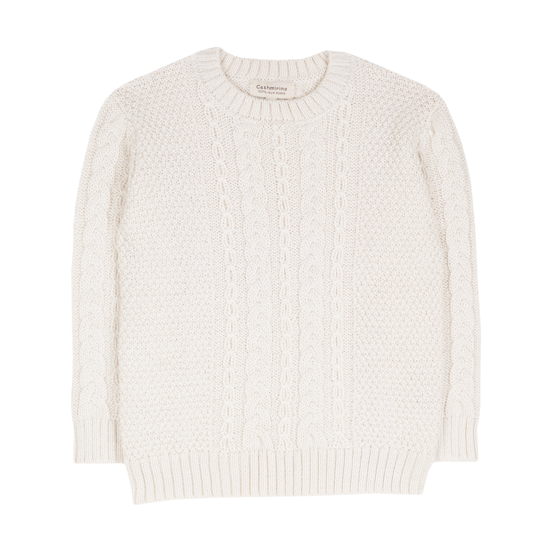 A wardrobe essential, our charming 100% Royal Alpaca jumper will keep your little one toasty during their outdoor adventures. With style in mind, we absolutely love the Aran knit alongside contrasting rope cable, braided cable, and moss stitch details. Designed with a button shoulder opening using our signature buttons for easy on-off for baby sizes. It can be paired with our Wool and Cotton trousers to create a classic Cashmirino outfit.