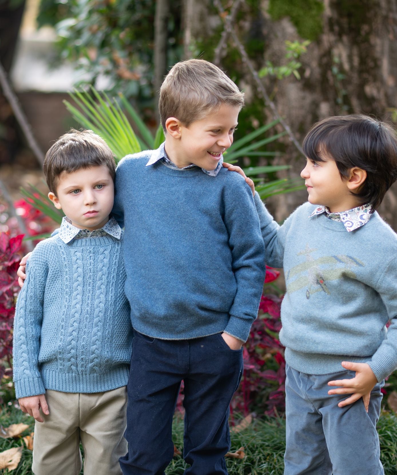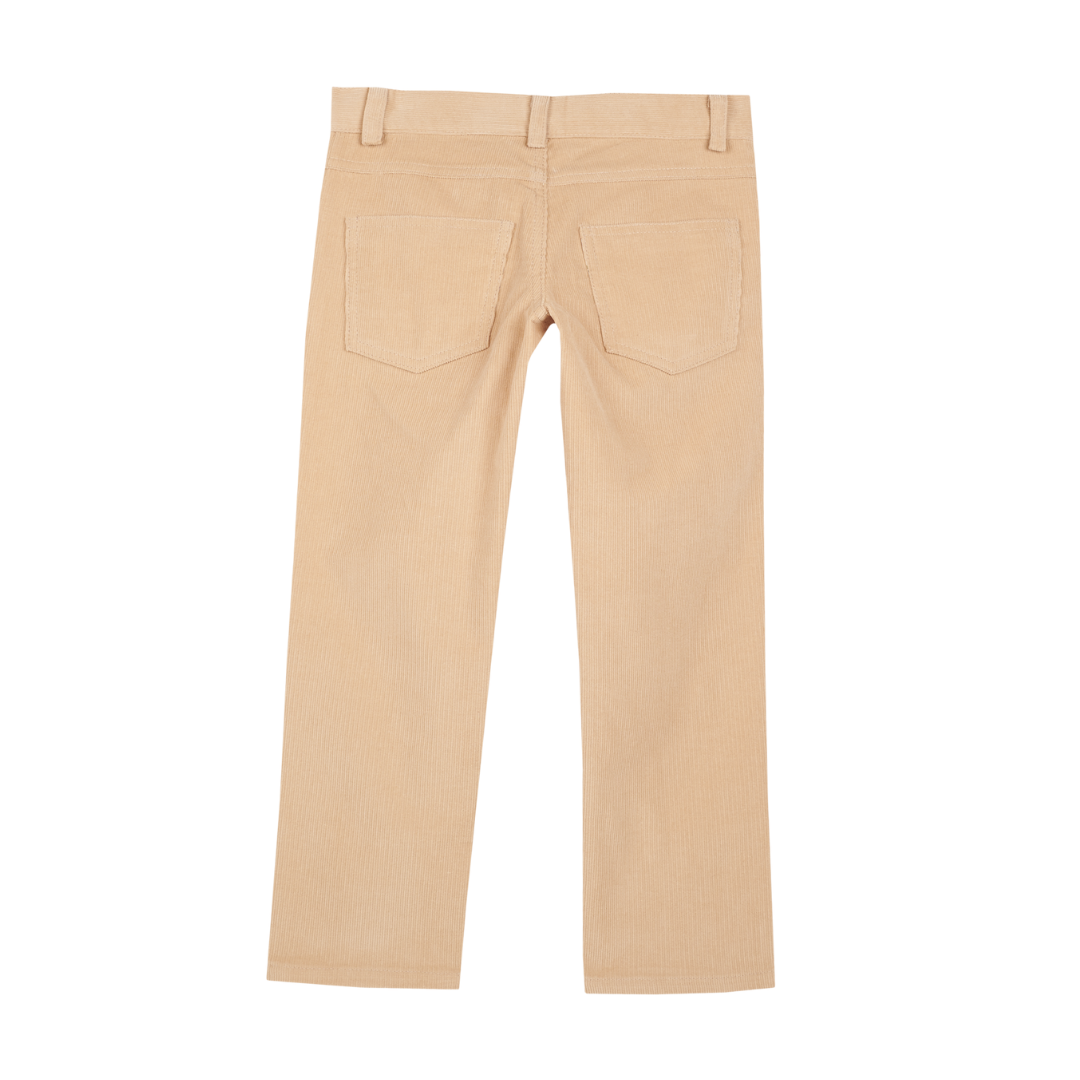 A pair of corduroy trousers with front pocket, back patch pockets and front zip and button opening, designed to offer little boys both comfort and timeless style.