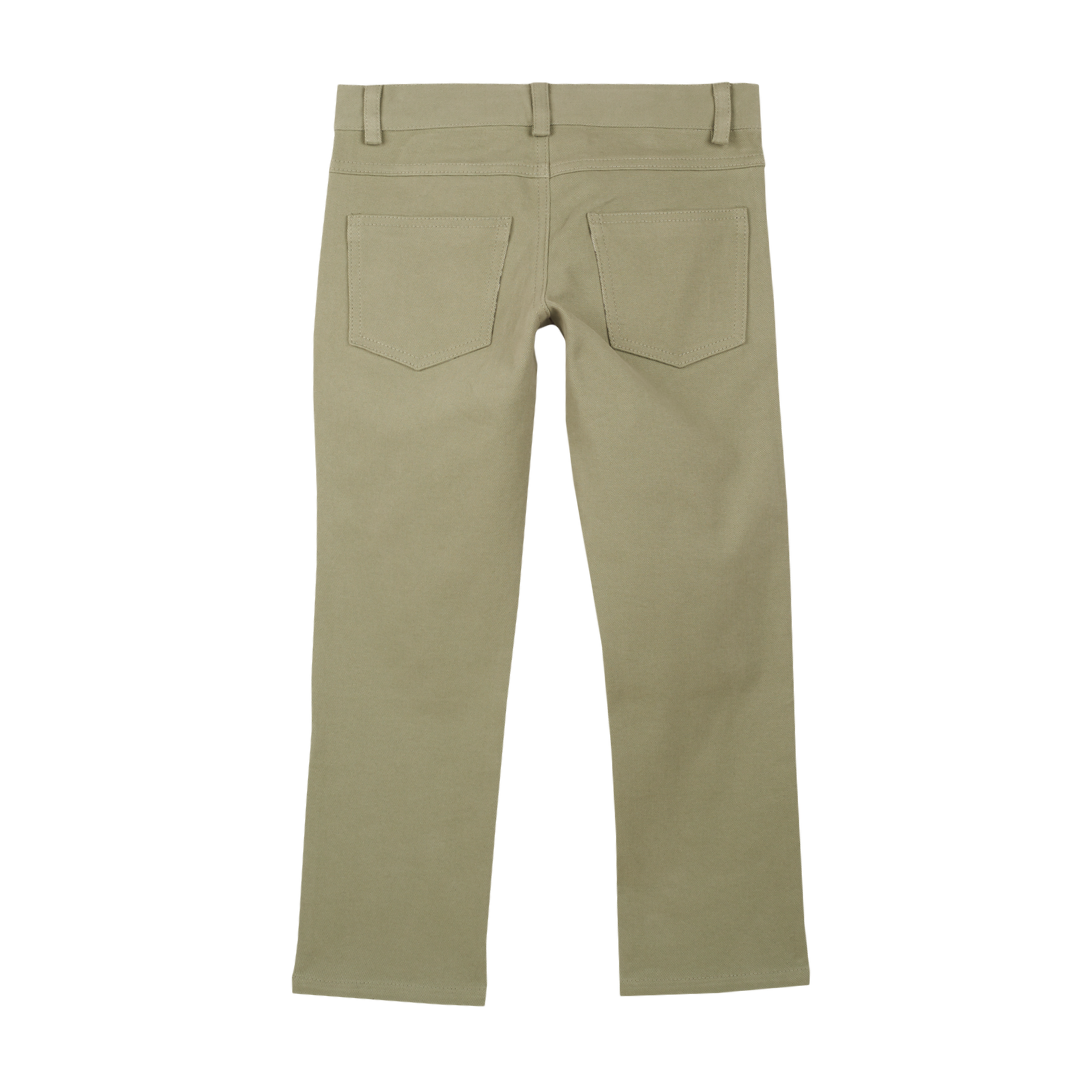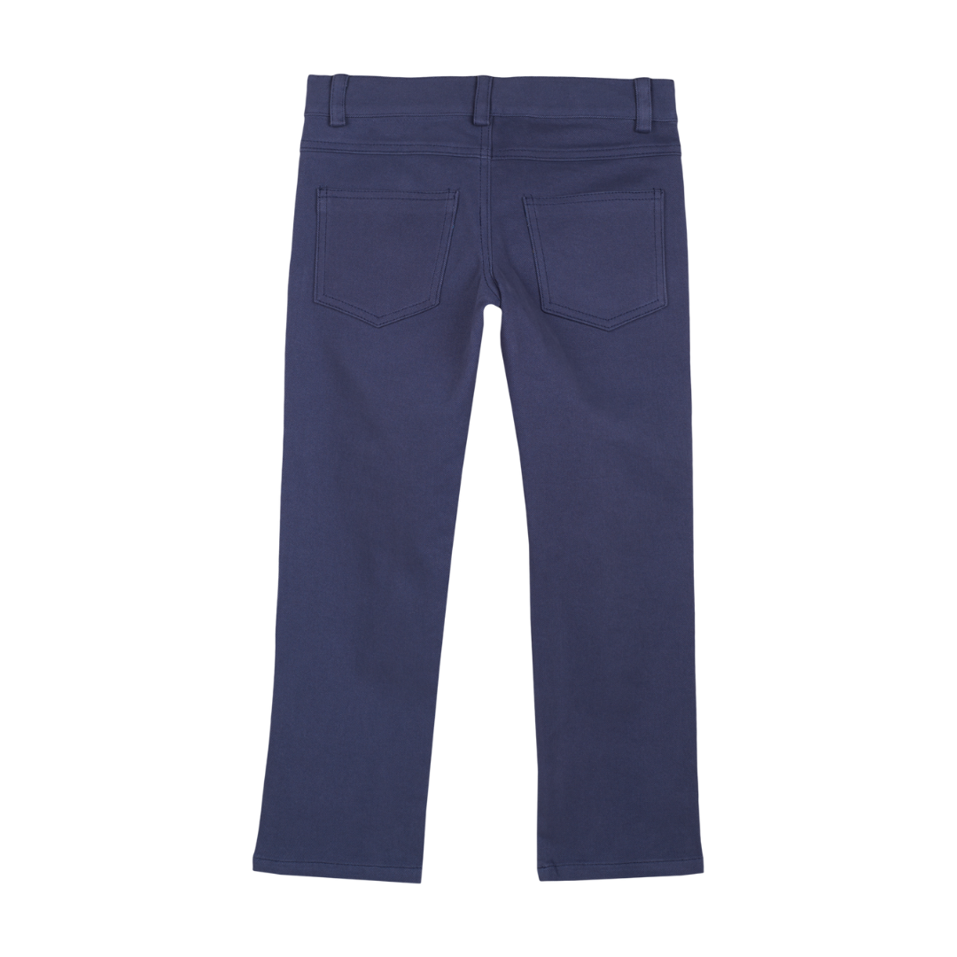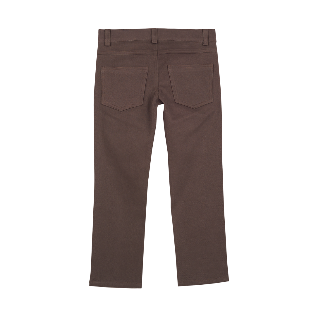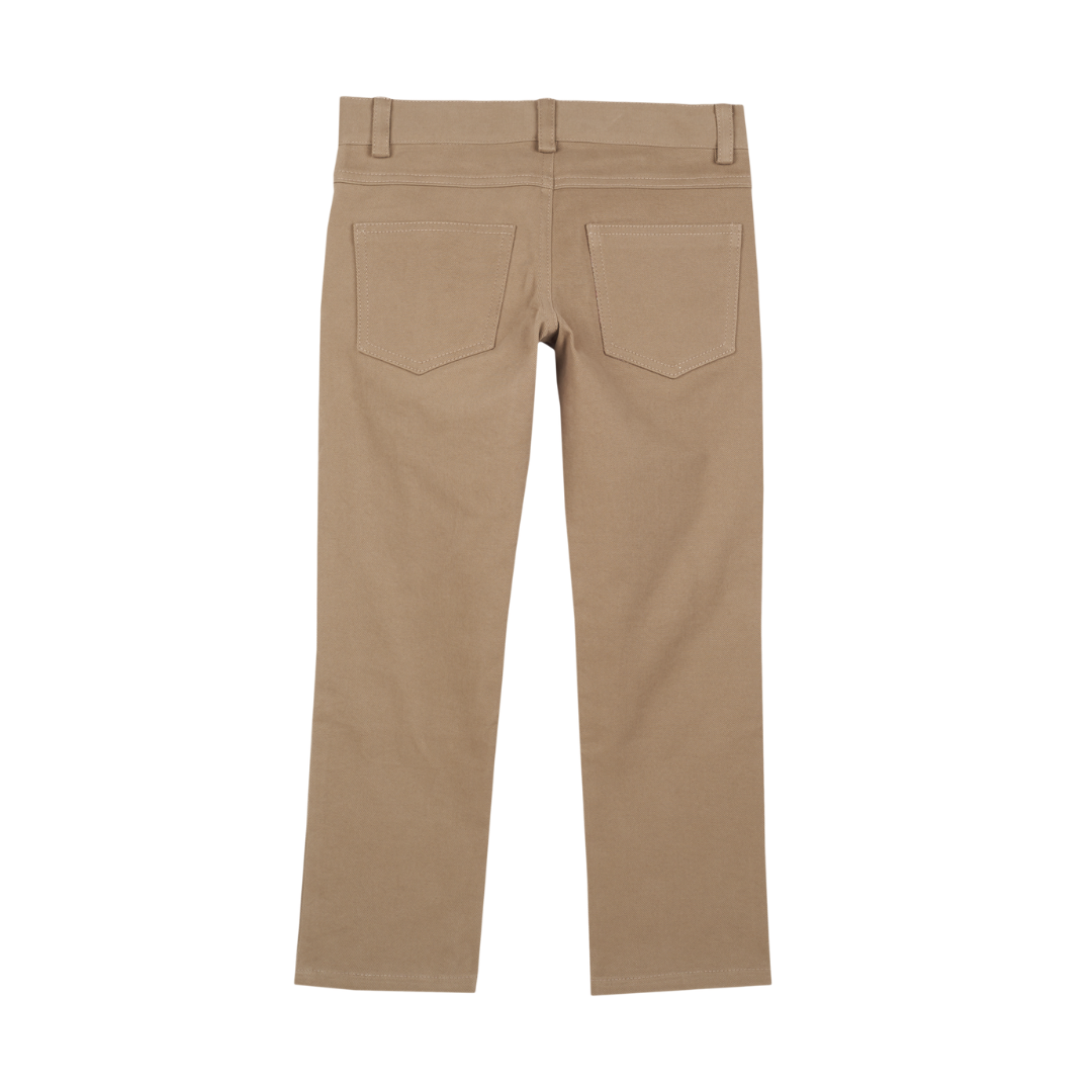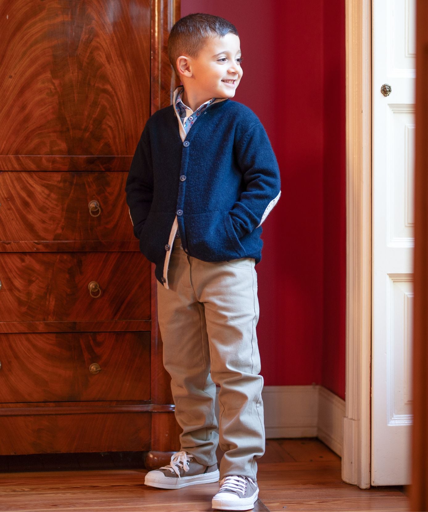A pair of heavy weight cotton trousers with front pocket, back patch pockets and front zip and button opening, designed to offer little boys both comfort and timeless style.
