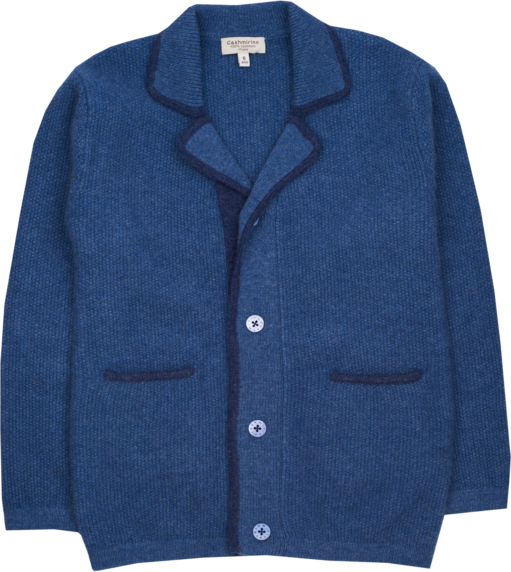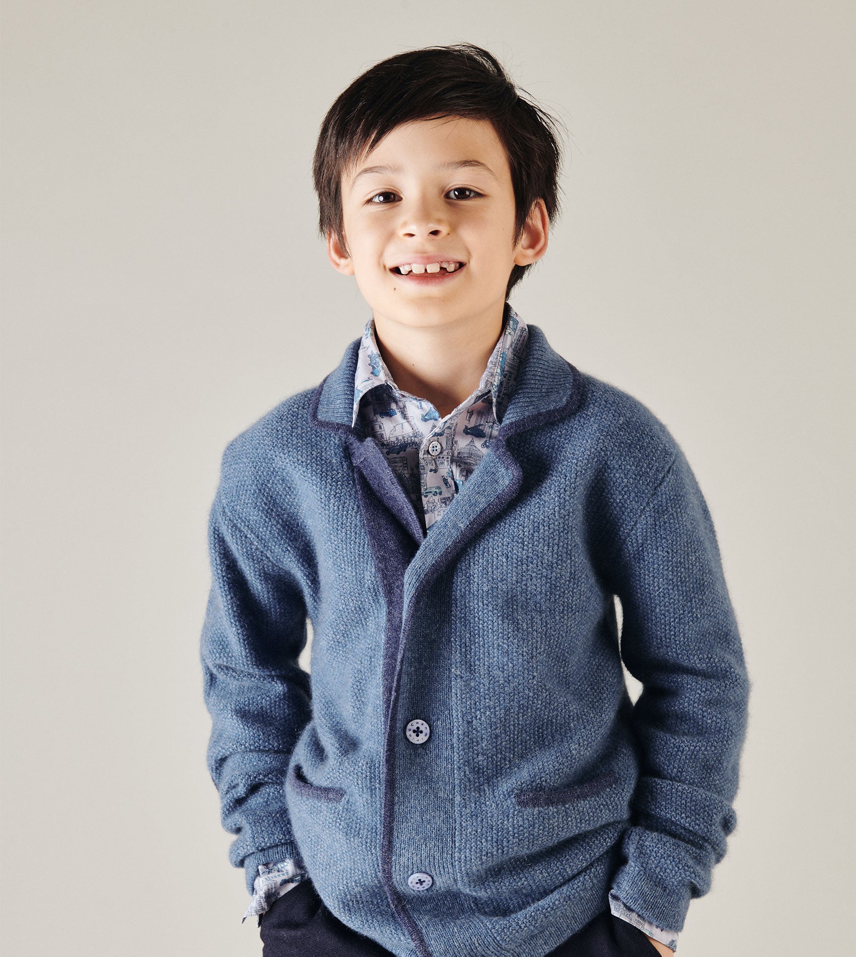 Smarten up with this 100% cashmere boy blazer - a classic piece that features contrasting coloured lapels and buttons, elbow patches and pockets and Cashmirino signature buttons. In spring and autumn, this blazer can be worn instead of a jacket directly on top of a shirt, making your little boy look very cute and elegant like a little Prince.