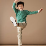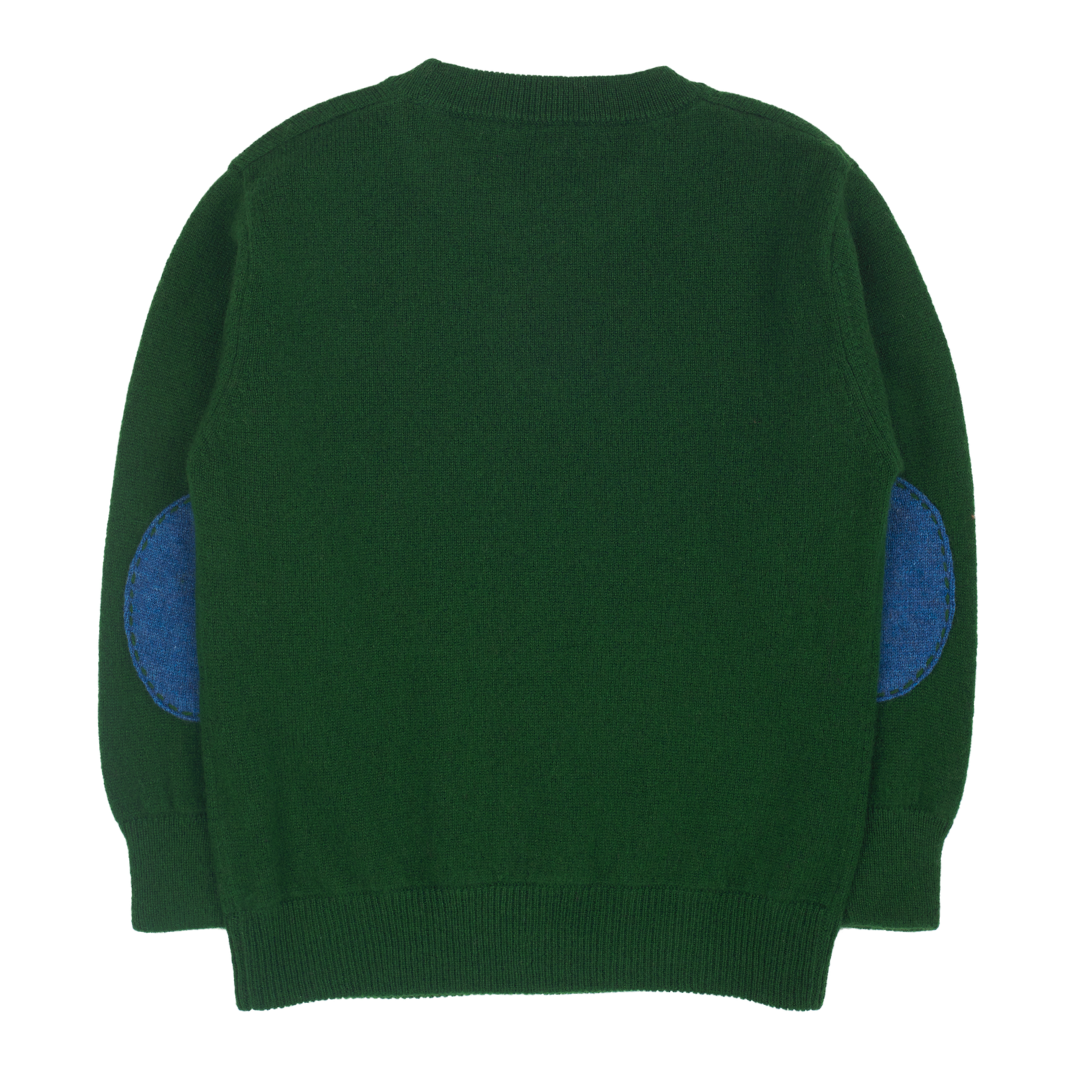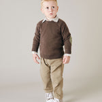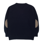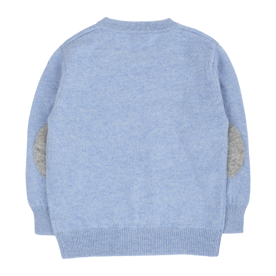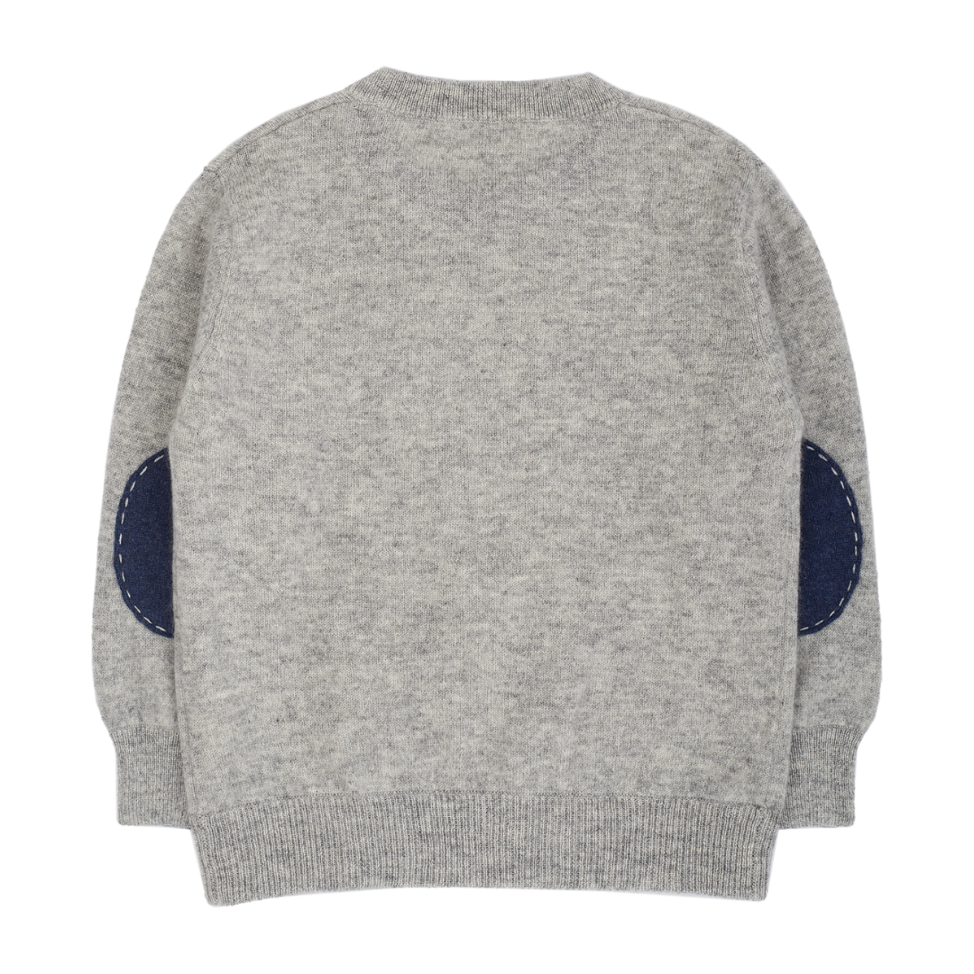 A timeless essential for every young gentleman's wardrobe, this boys' crew neck jumper is expertly crafted from 100% lightweight cashmere — soft, breathable, and gentle on delicate skin. Designed with comfort and style in mind, it features long sleeves, a classic ribbed hem, and subtle contrasting details on the inside and elbow patches for a refined touch.