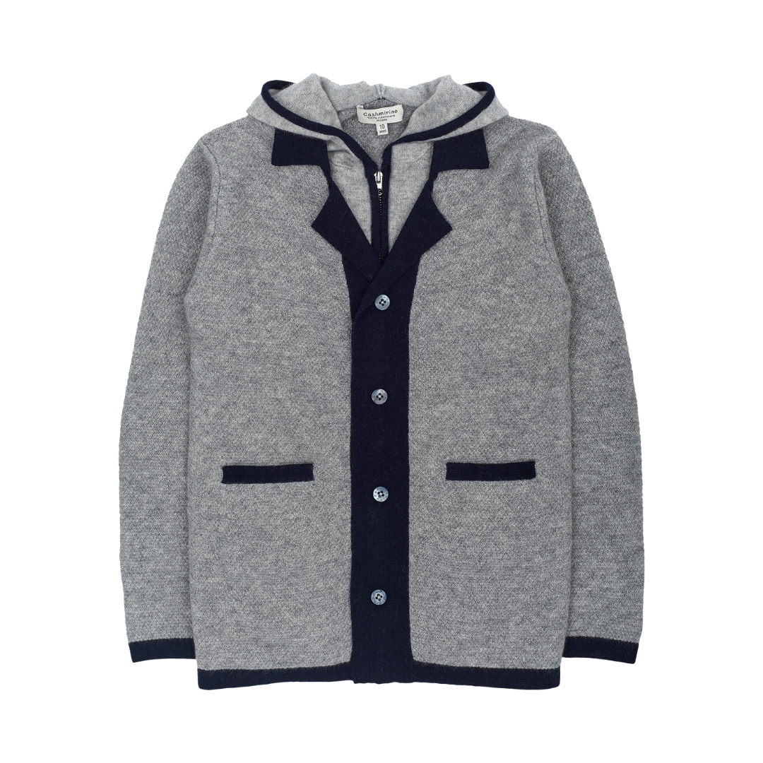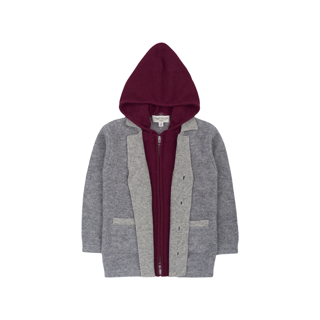 Boy - Cashmere Double Layered Coat Cardigan with Contrasting Hoodie and Lapels