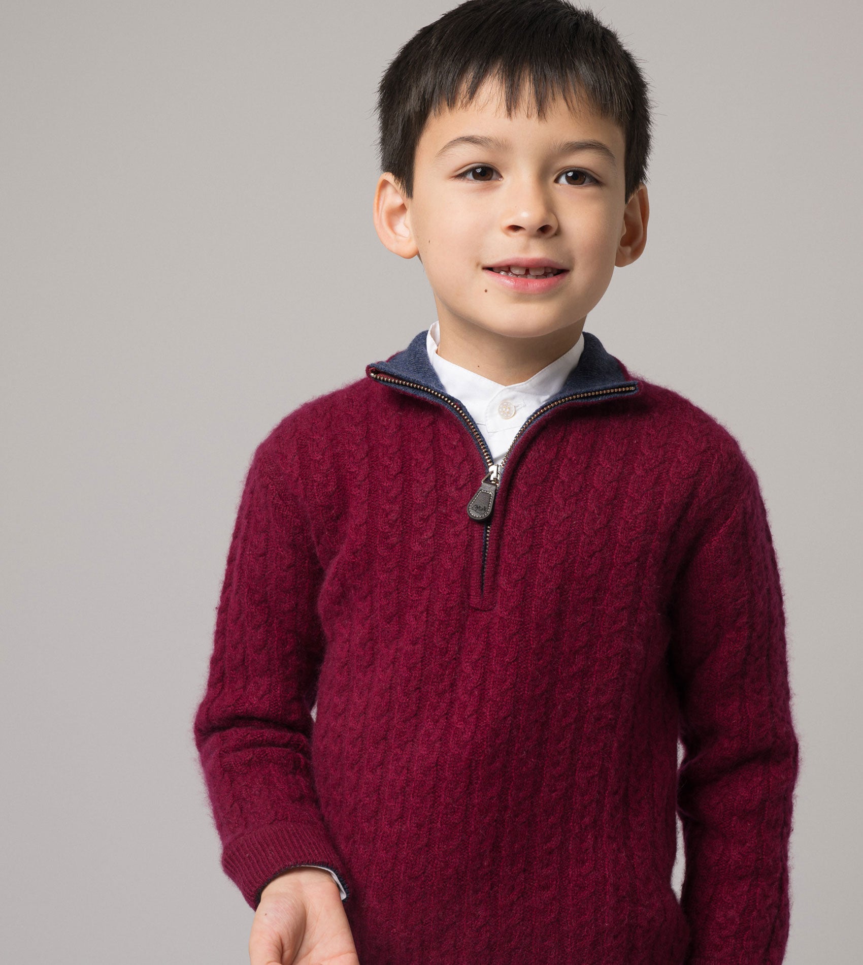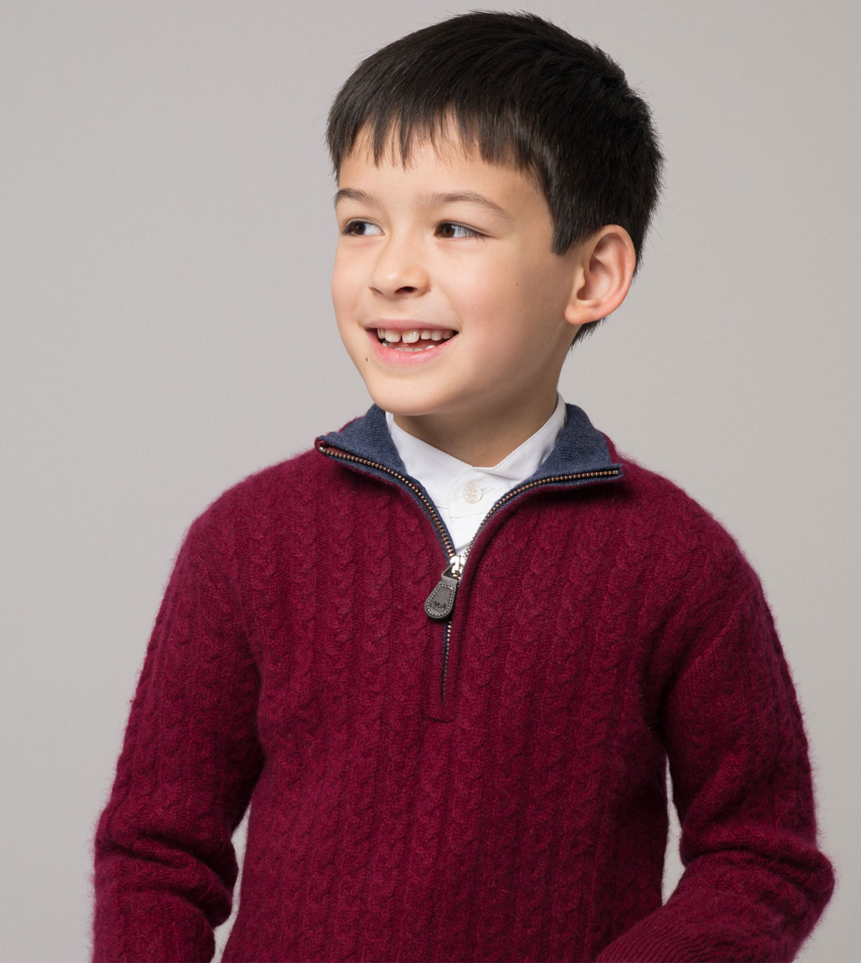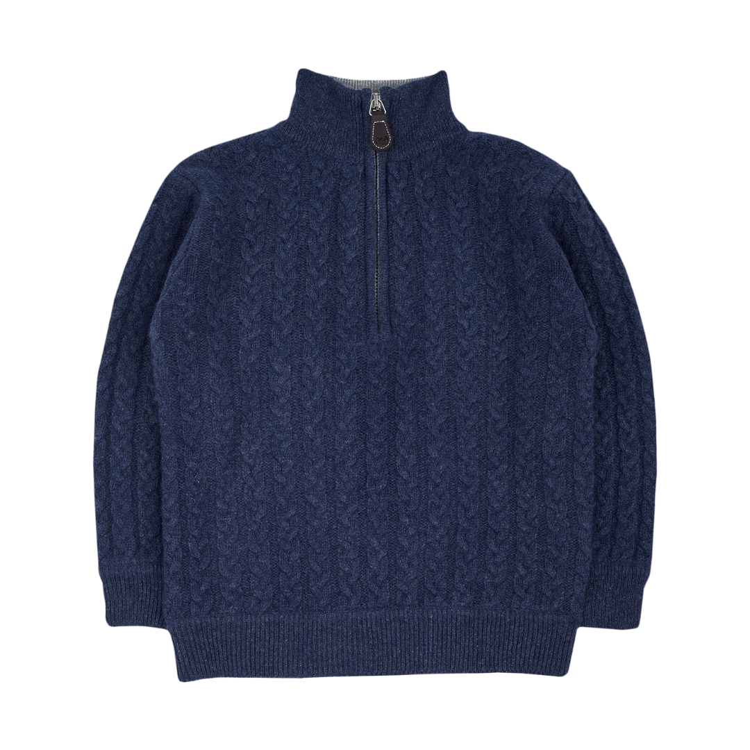 A classic high neck boy jumper featuring a stylish high neck collar with zip. Made from 100% cashmere in cable knit, this smart jumper is a winter wardrobe essential.