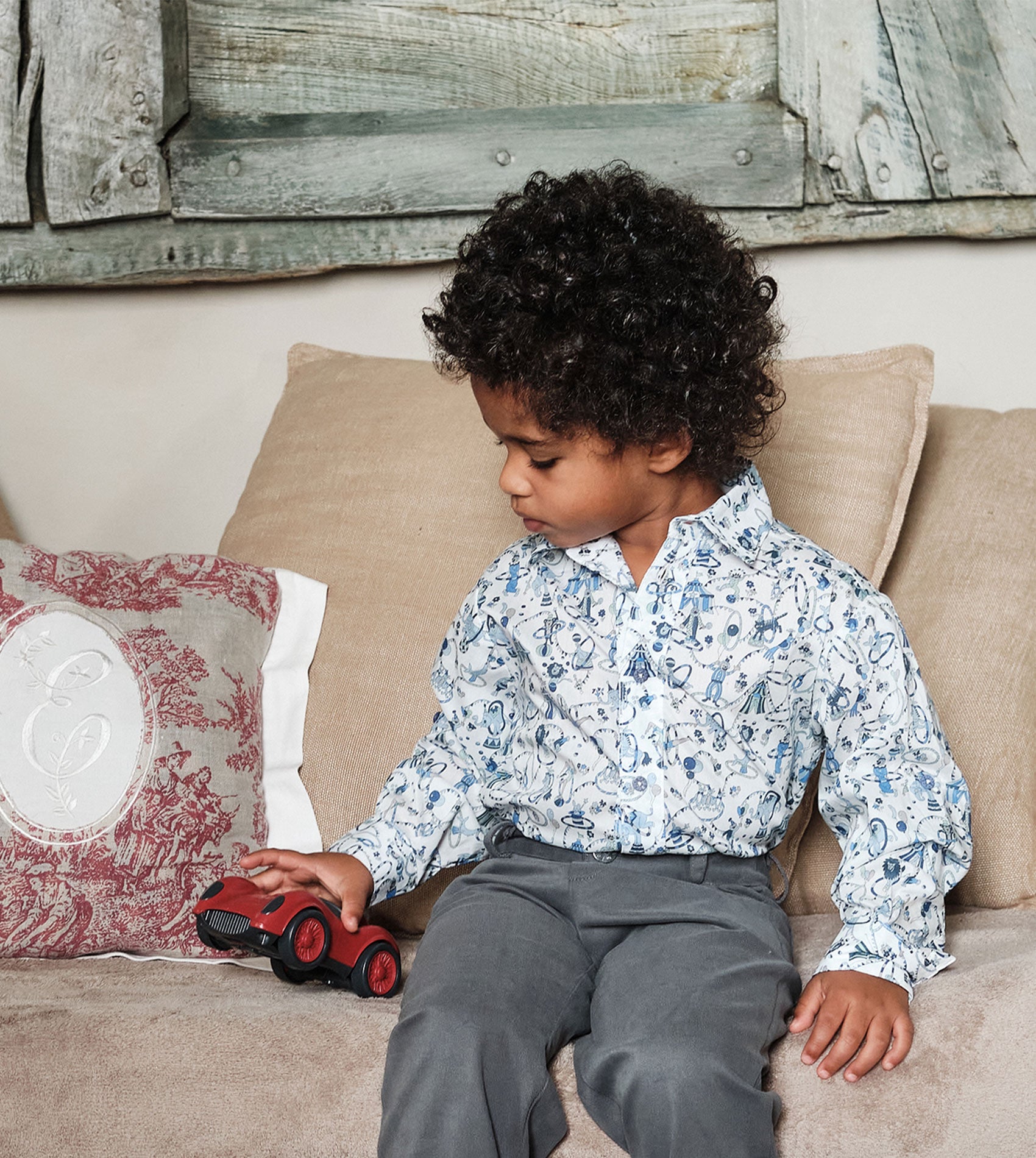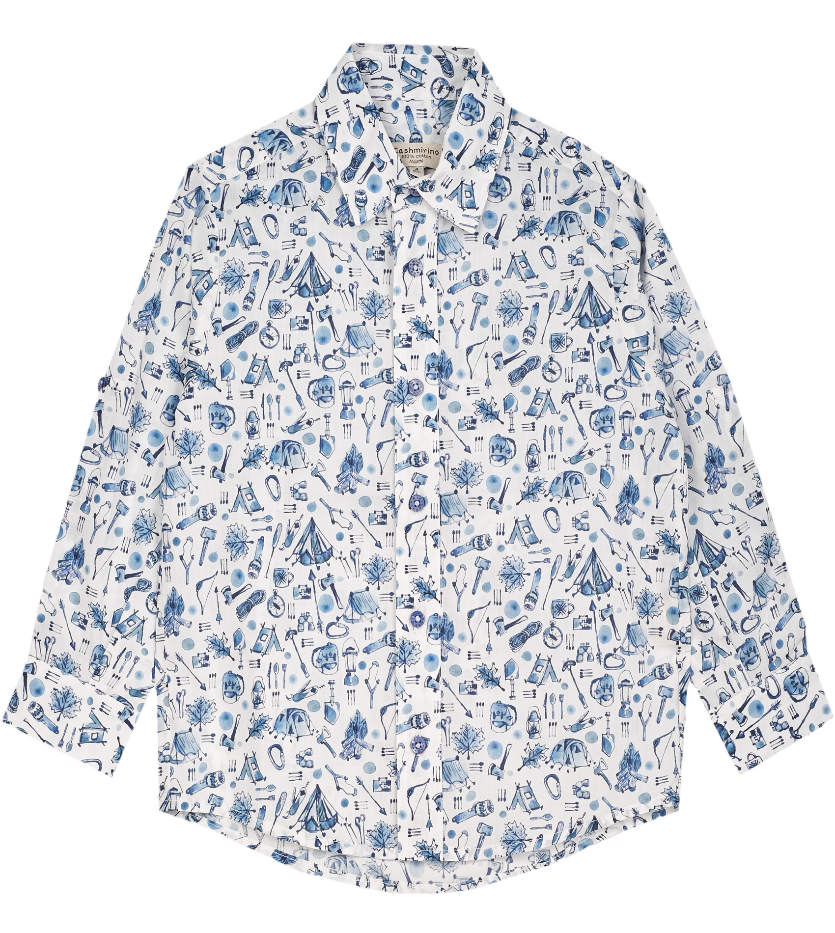 Let your little bears sparkle with this boy's shirt, specially tailored to befit both casual and formal occasions. This long-sleeved, fun-loving piece is made with Liberty fabrics and a neat classic collar. Cashmirino signature buttons.