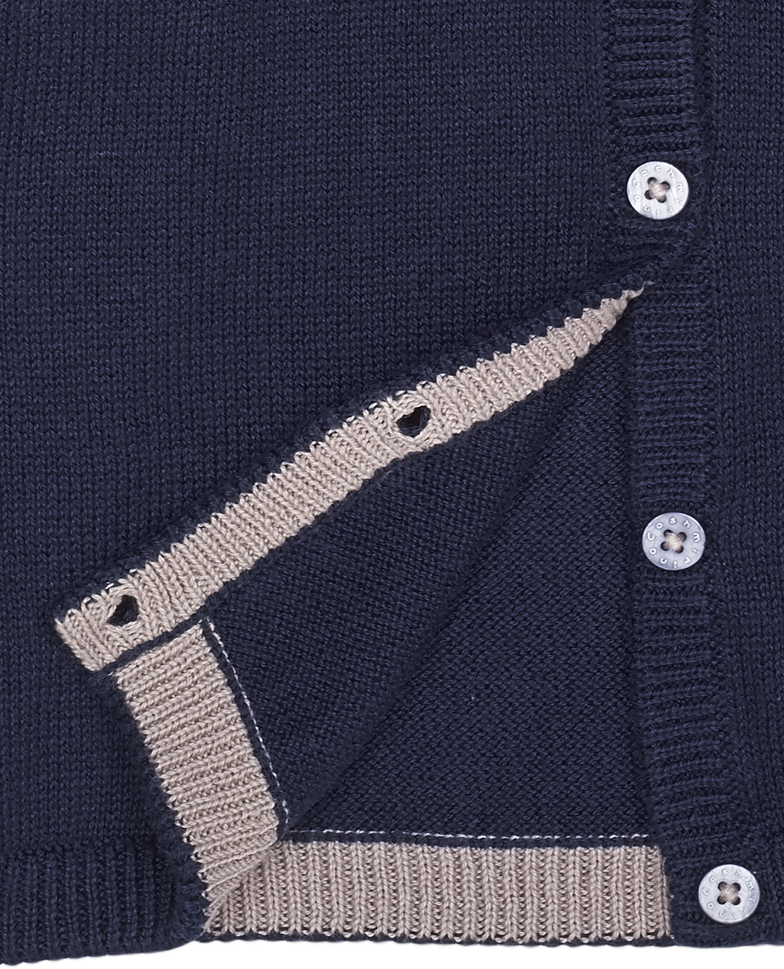 - A comfortable v-neck cardigan decorated with internal contrast