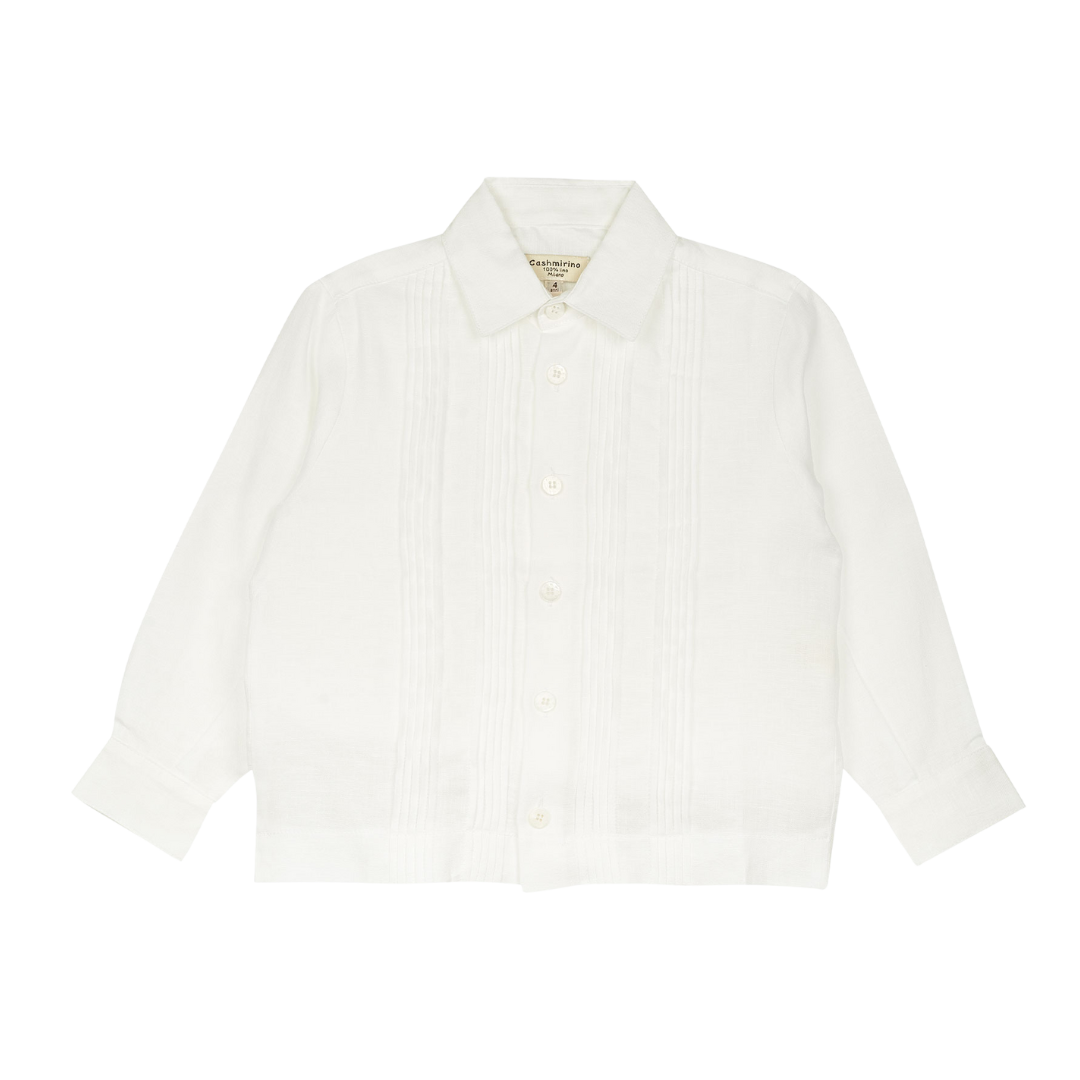 Crafted from 100% lightweight linen, this shirt is the perfect balance of comfort and style. It features a classic collar, long sleeves, and a smart pleated front detail that adds a touch of sophistication. A contemporary take on timeless tailoring, this versatile shirt ensures he stands out with effortless elegance.