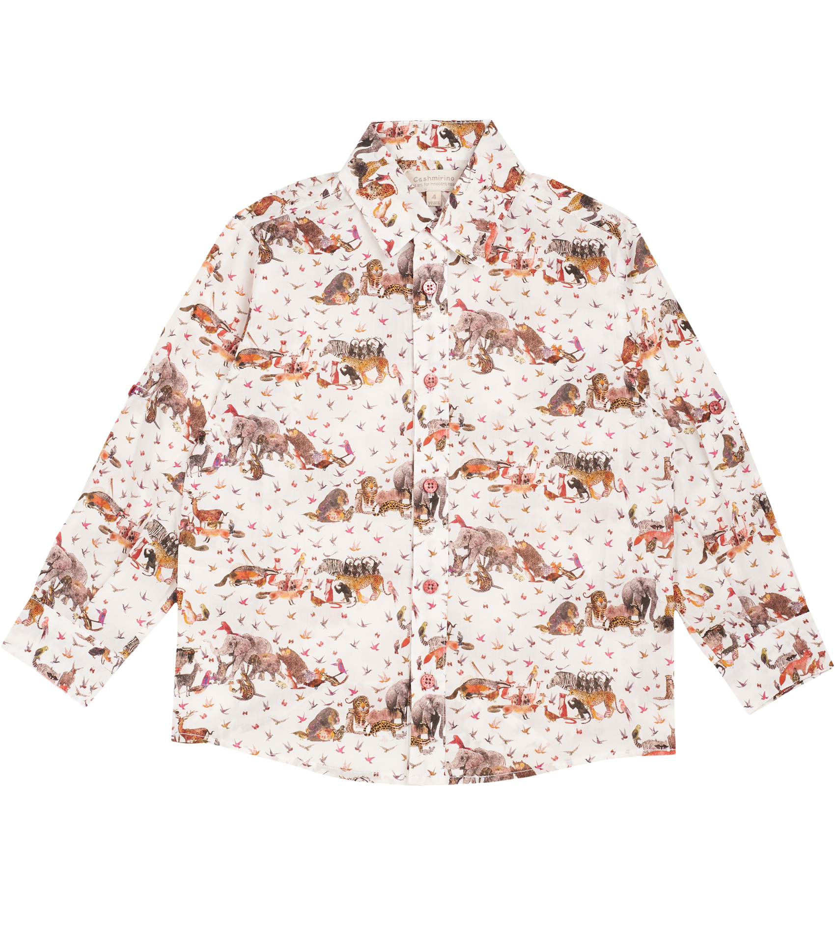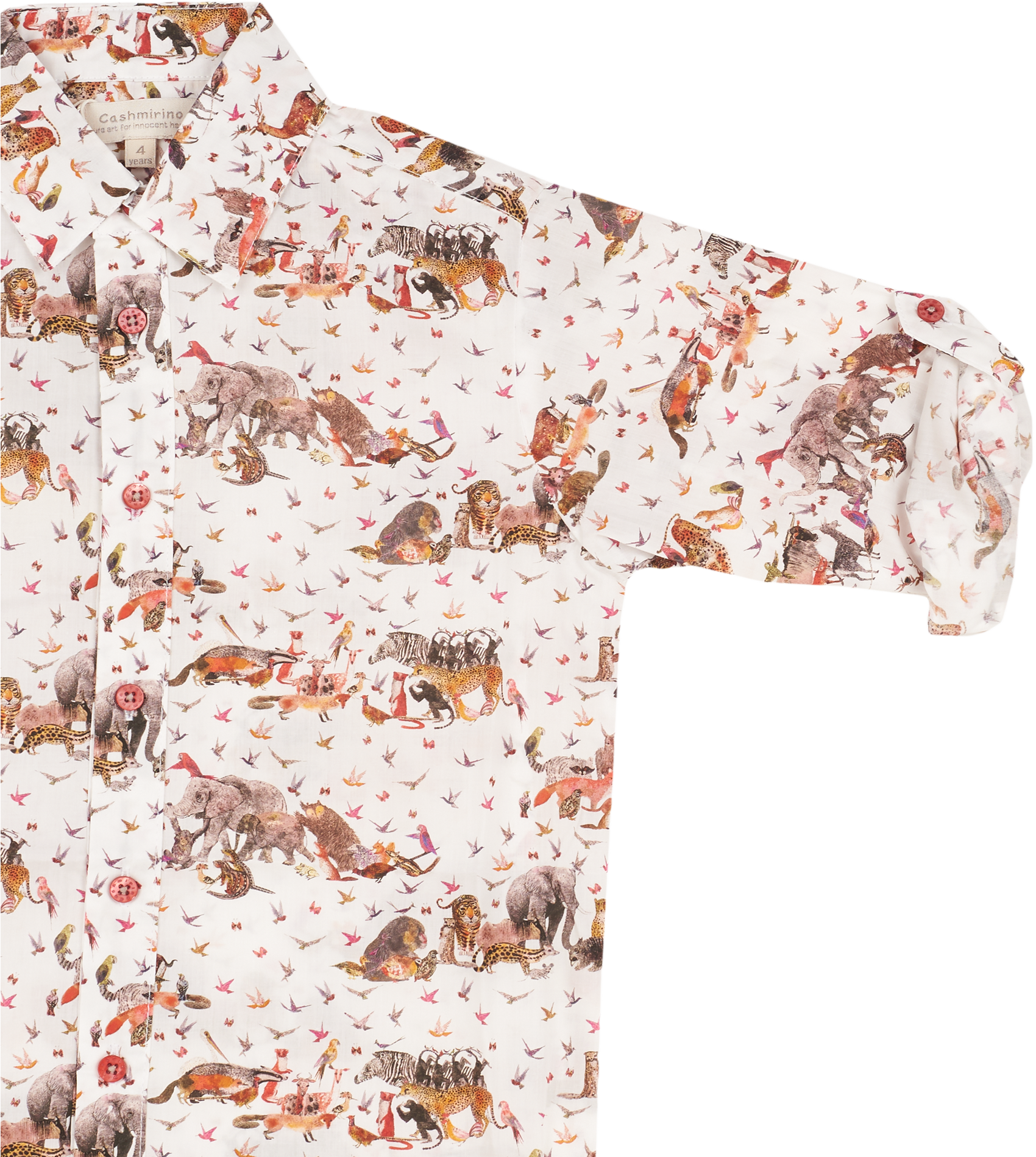 Let your little bears sparkle with this boy's shirt, specially tailored to befit both casual and formal occasions. This long-sleeved, fun-loving piece is made with Liberty fabrics and a neat classic collar. Cashmirino signature buttons.