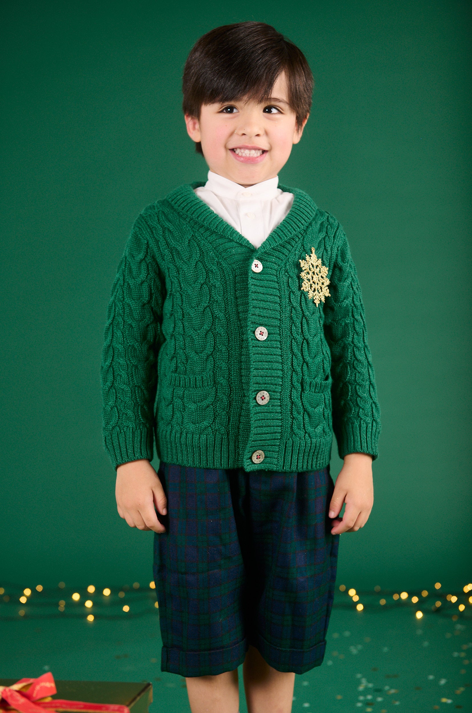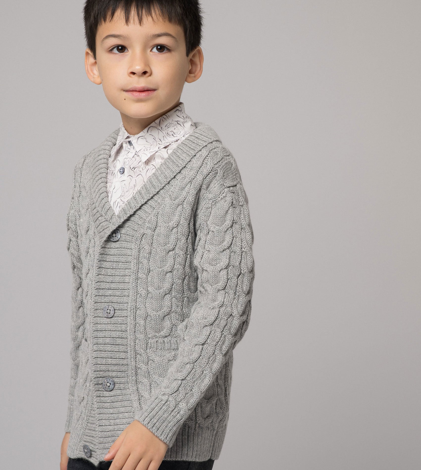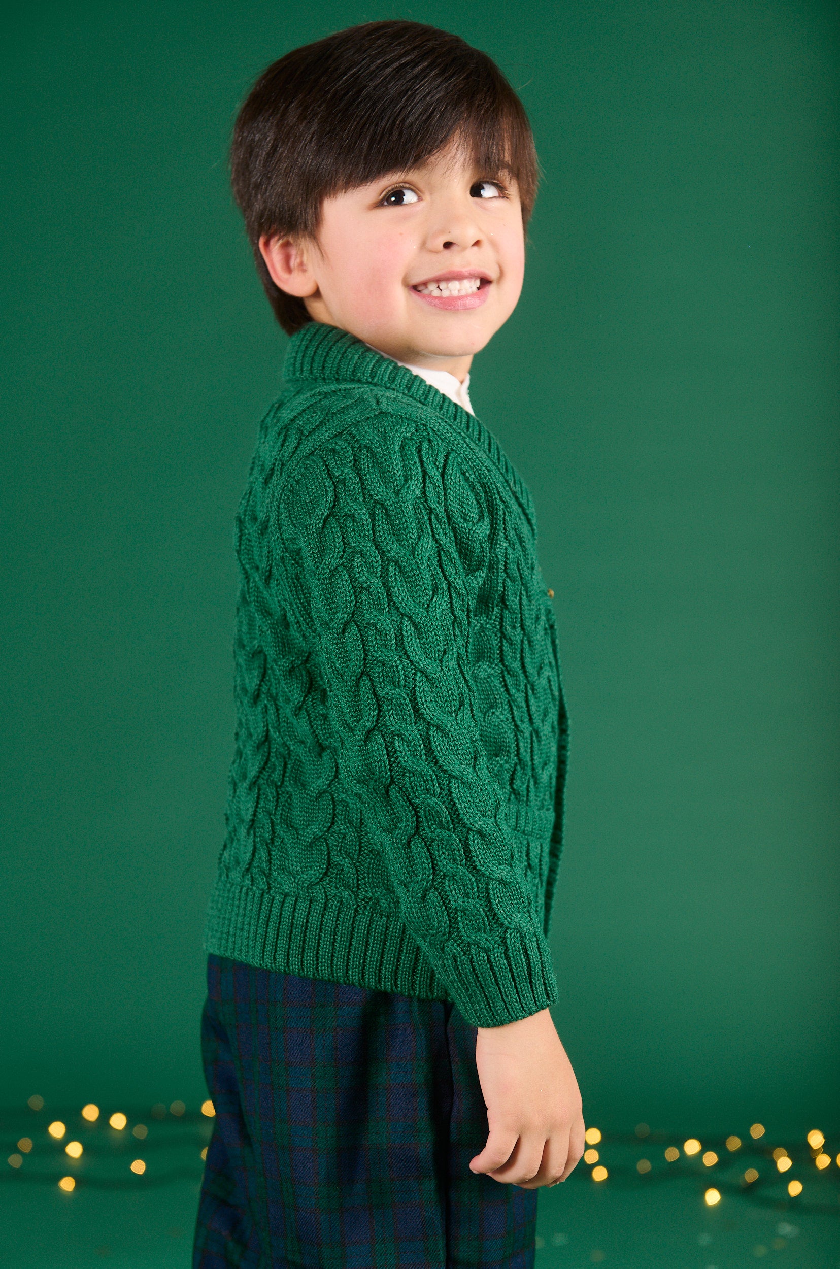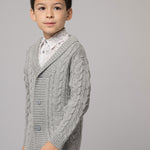 A wardrobe essential, our charming 100% Royal Alpaca blazer will keep your little one toasty during their outdoor adventures. With style in mind, we absolutely love the Aran knit alongside contrasting rope cable and braided cable details. Designed with a button opening using our signature Cashmirino buttons for easy on-off and two front pockets to create a stylish look for your little one. It can be paired with our Wool and Cotton trousers to create a classic Cashmirino outfit.