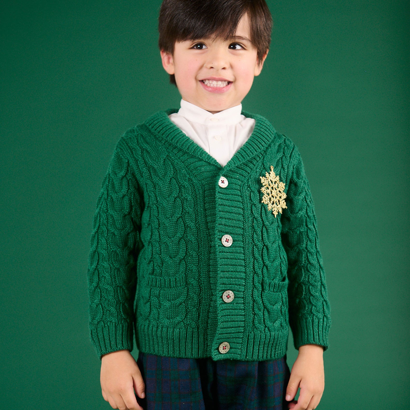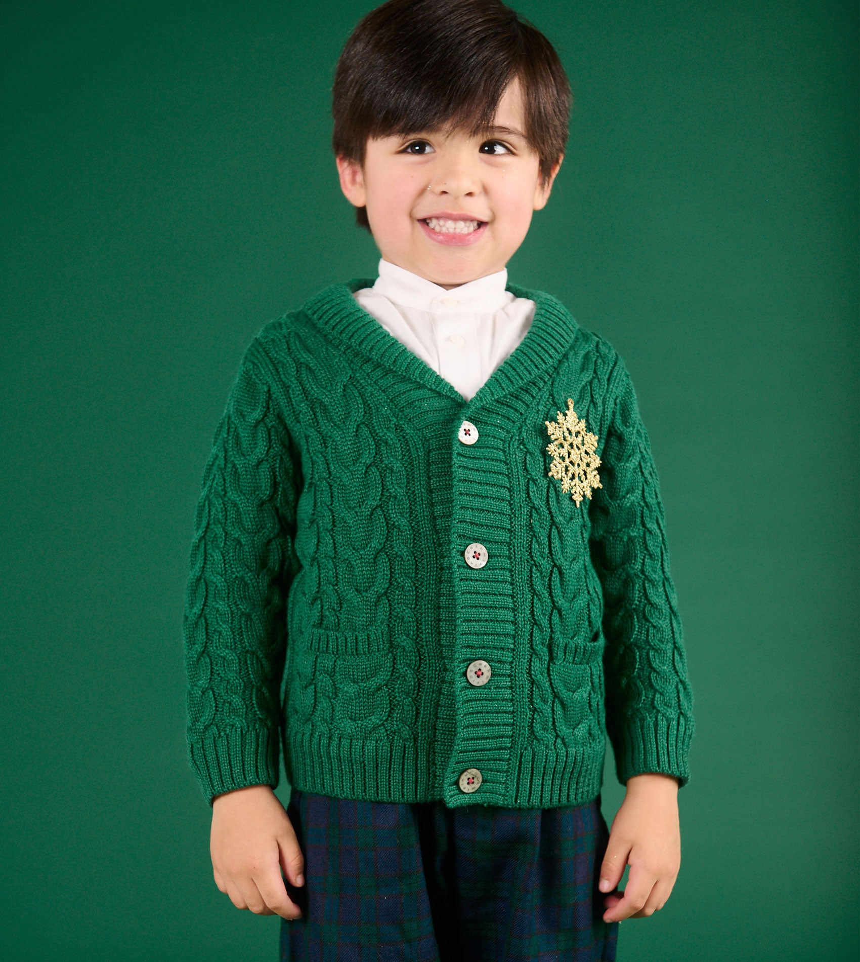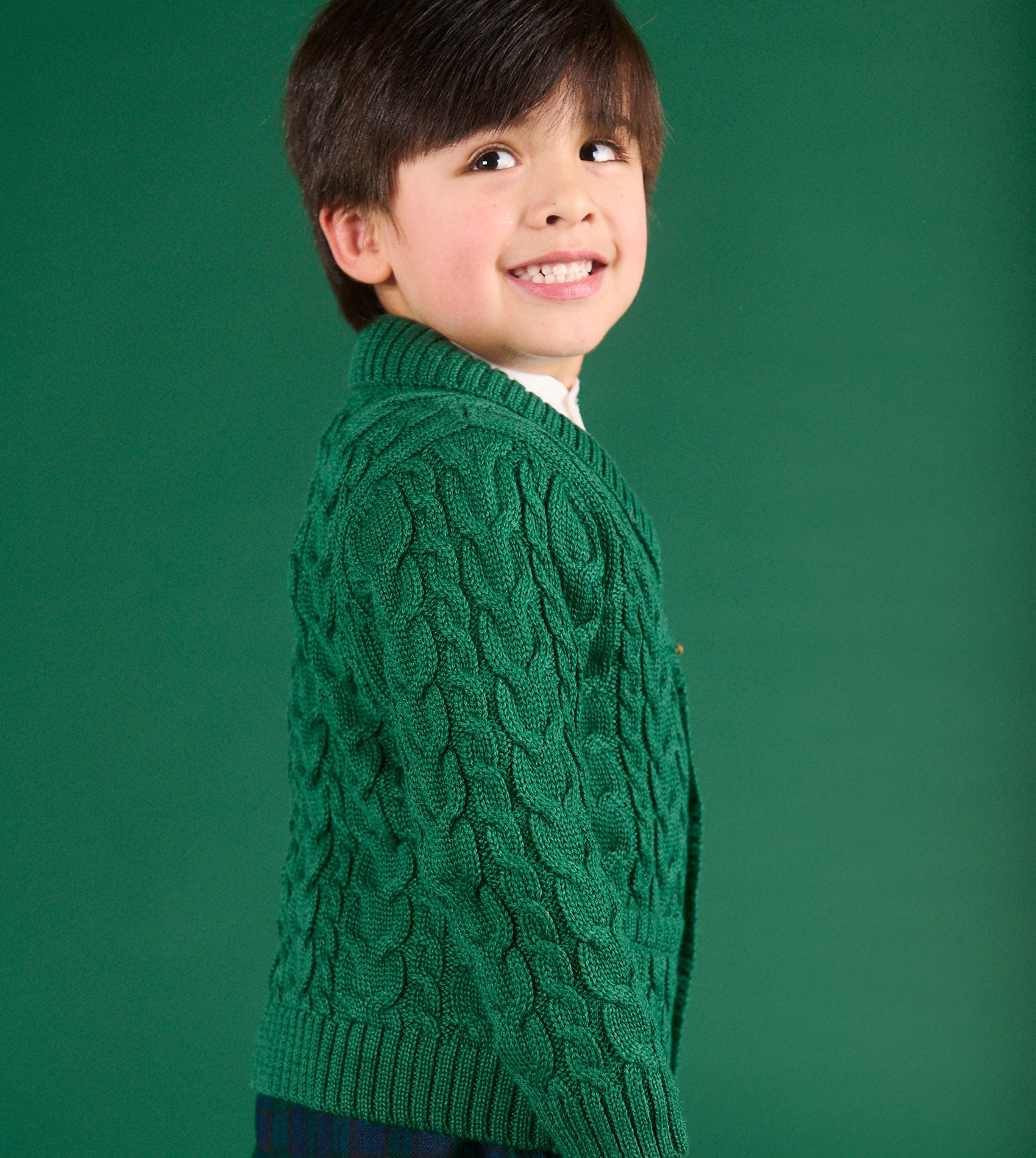 A wardrobe essential, our charming 100% Royal Alpaca blazer will keep your little one toasty during their outdoor adventures. With style in mind, we absolutely love the Aran knit alongside contrasting rope cable and braided cable details. Designed with a button opening using our signature Cashmirino buttons for easy on-off and two front pockets to create a stylish look for your little one. It can be paired with our Wool and Cotton trousers to create a classic Cashmirino outfit.