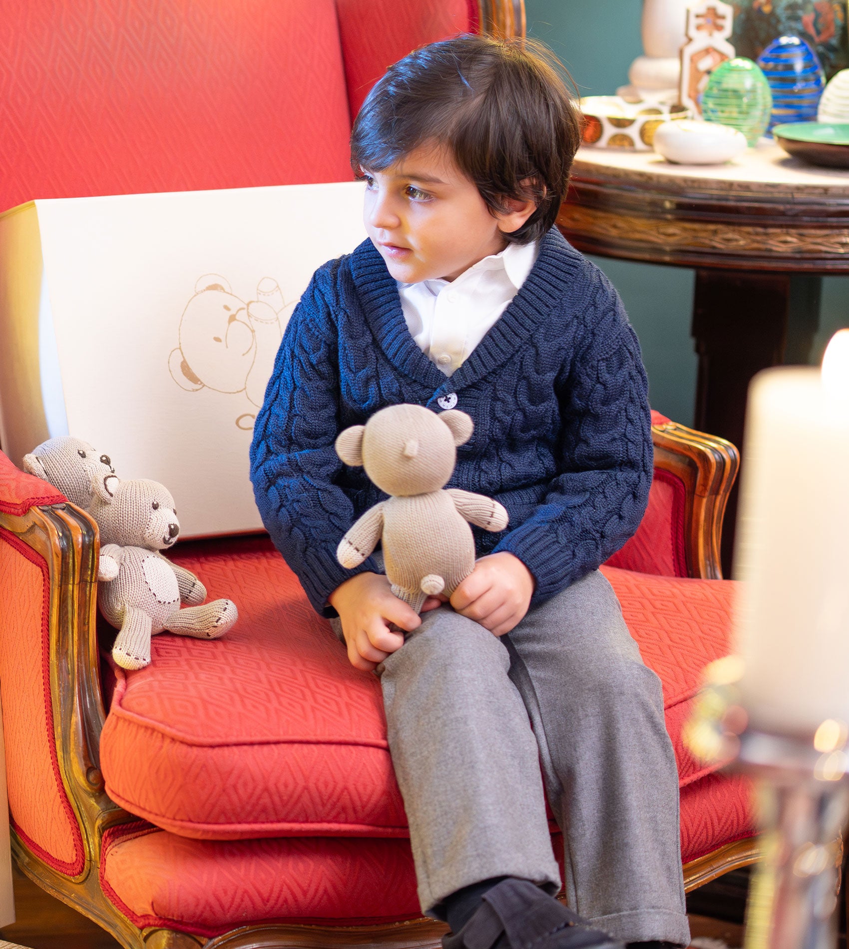 Softer than cashmere yet lighter and more durable, Royal Alpaca is the fibre we choose for our children’s pieces because it’s naturally gentle, breathable, and long-lasting.