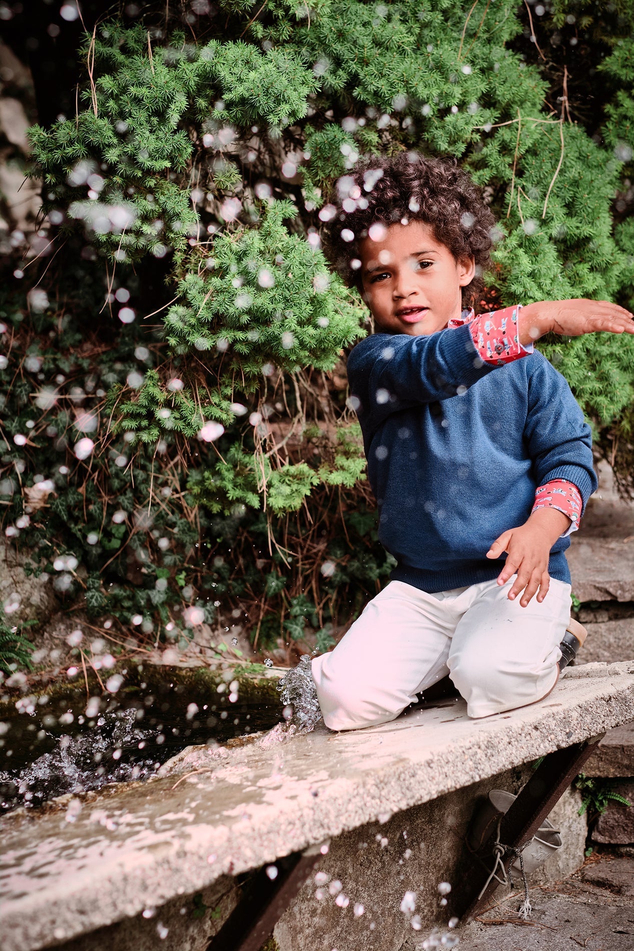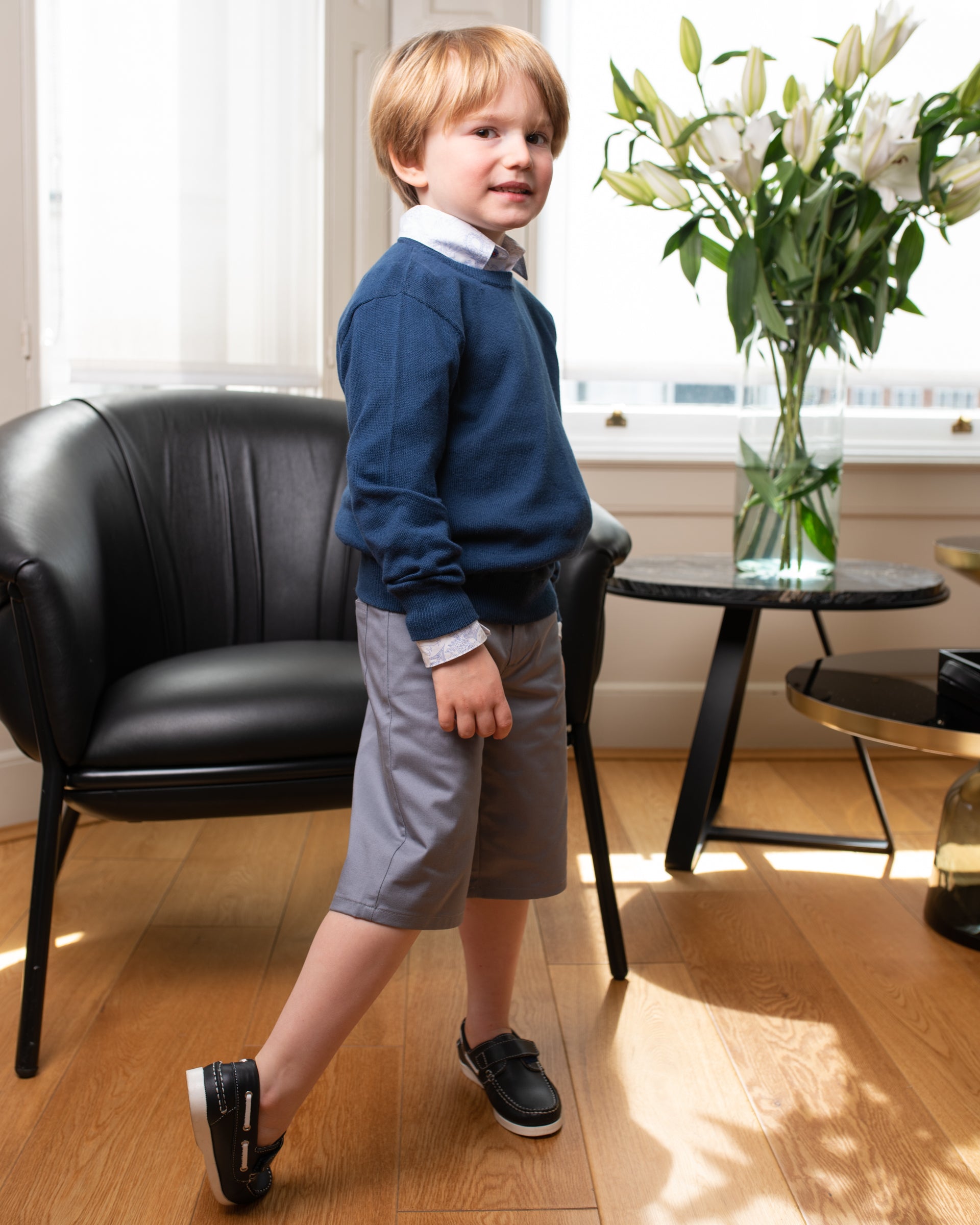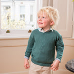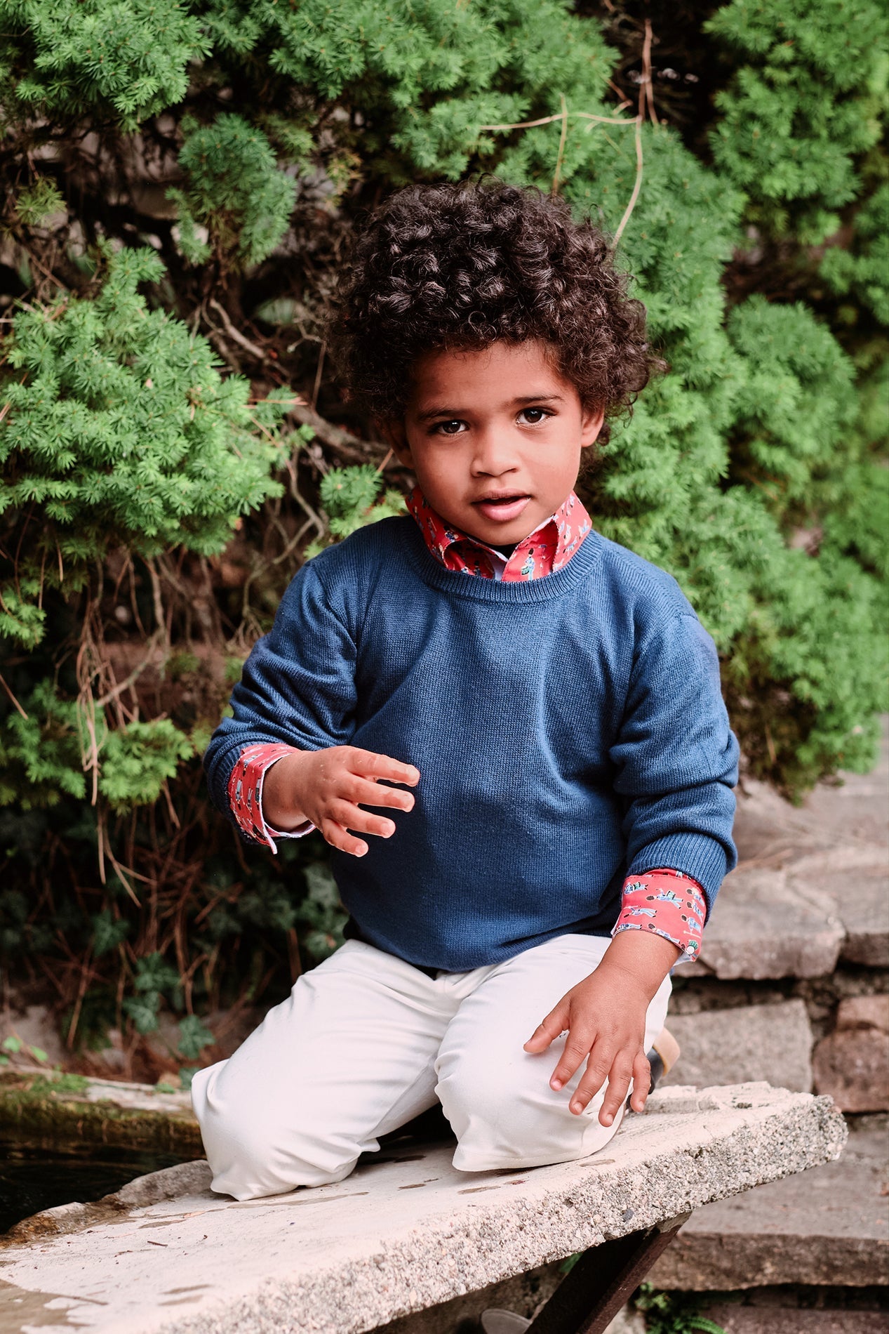 Crafted from super-soft cotton, by our trusted artisans, with love and passion. This lightweight boy jumper can be used in Fall or Spring or as a layer in Winter. 70% Pima Cotton and 30% Modal. Contrast internal colour trim on collar, cuffs, and waist.